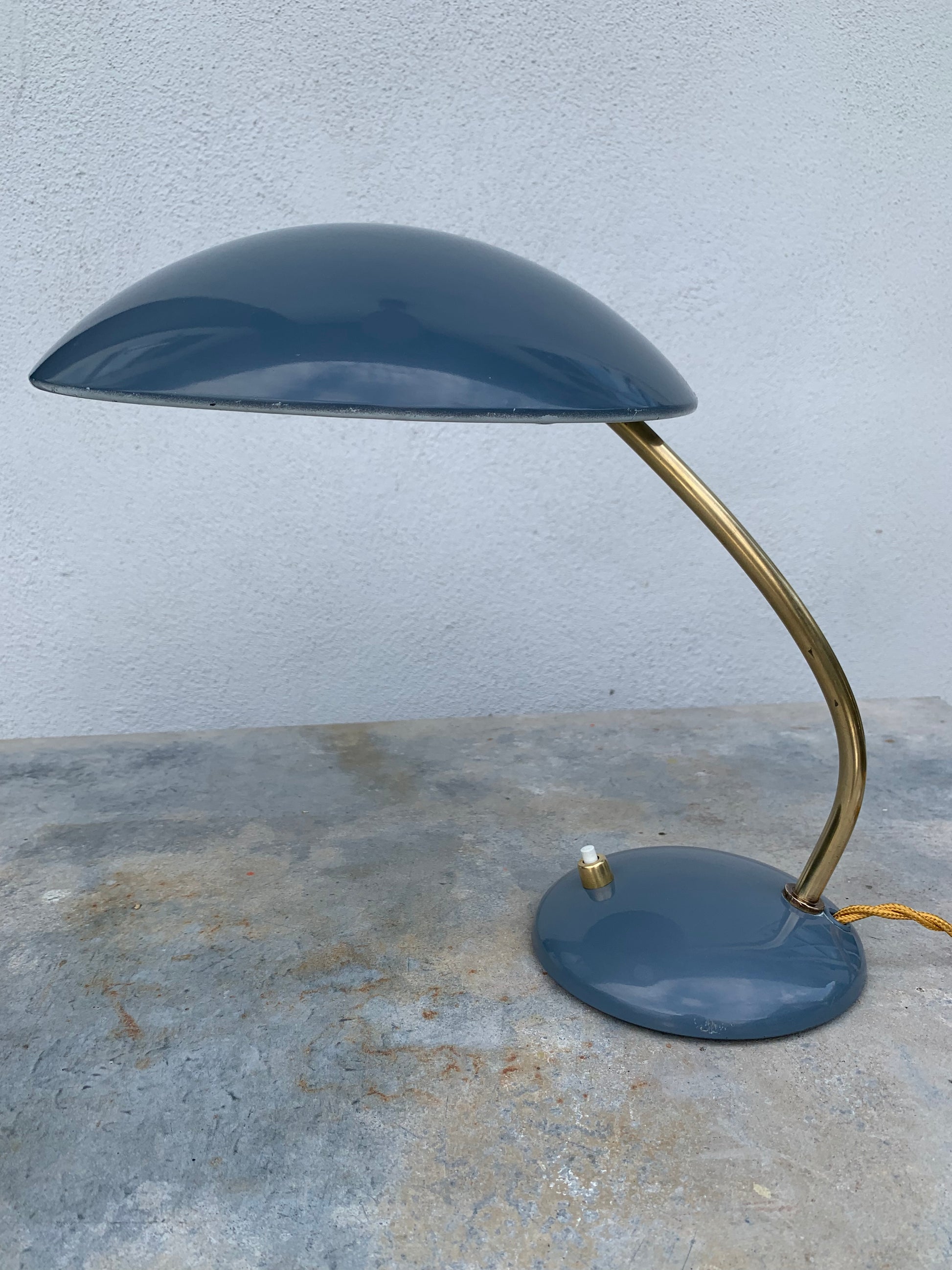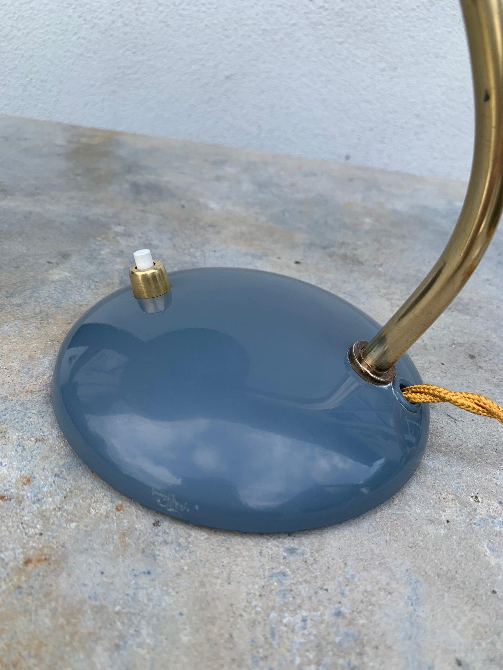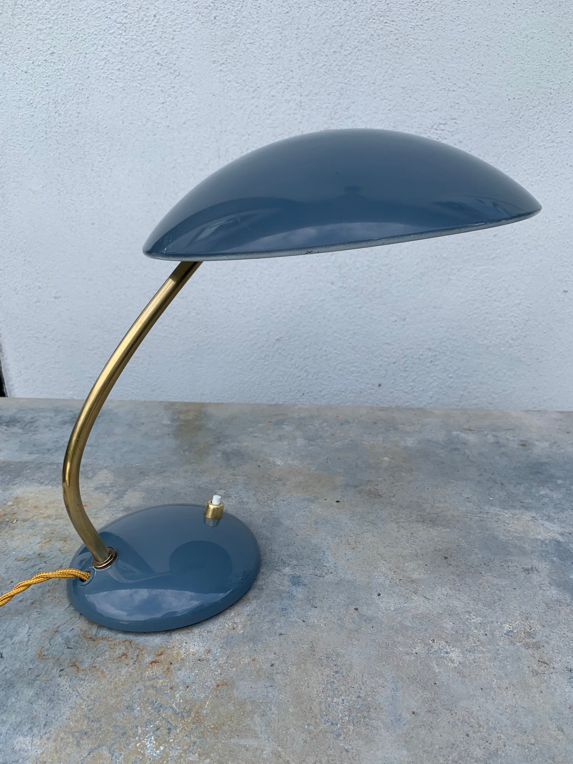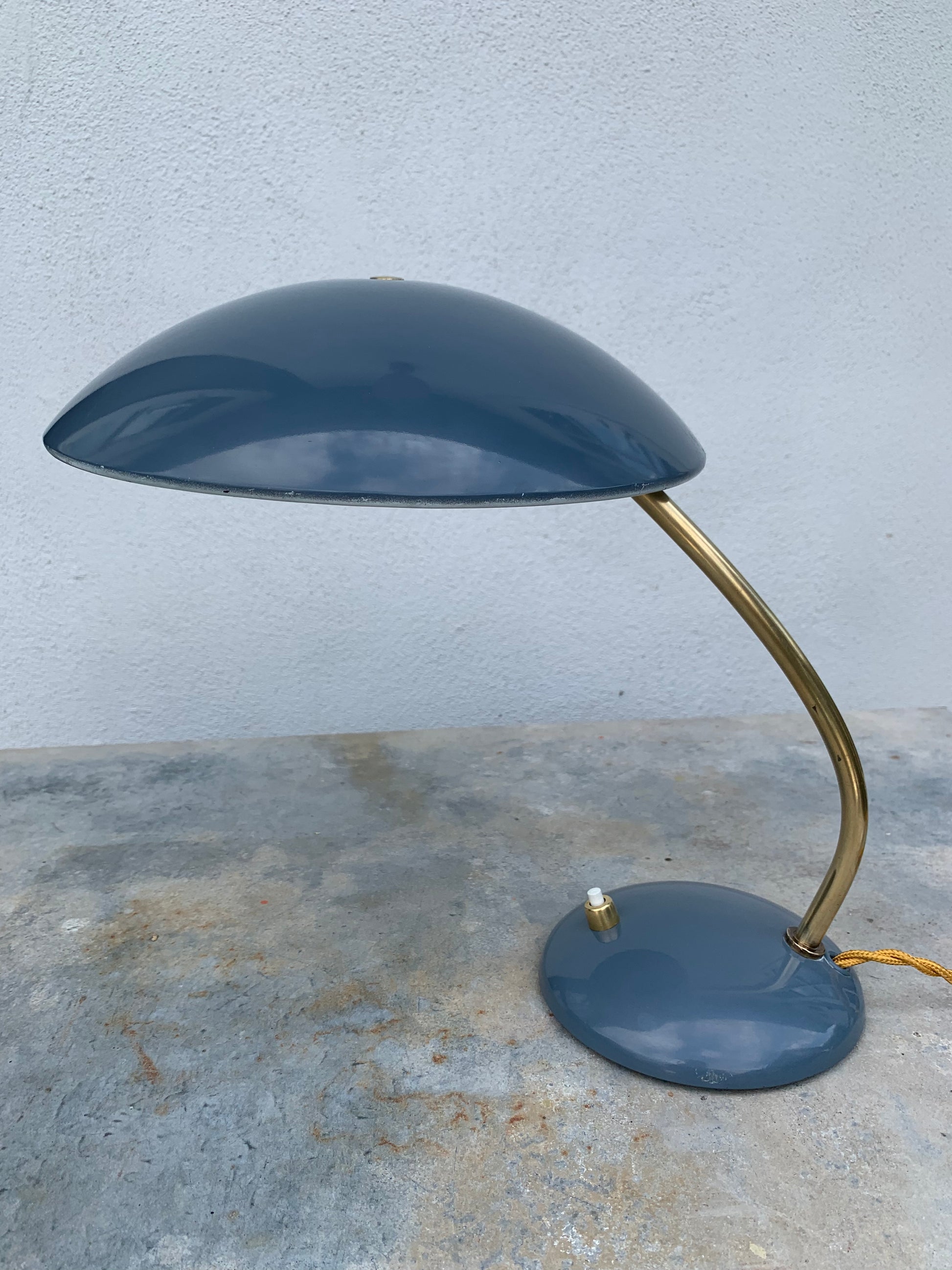 Trevligt litet nyligen trådbundet fodral, designat av Christian Dell. Lampan, som visas i originalfärgen, har en arm i mässing. Tidens tand har bitit lite på den, på ett (i vår smak) väldigt charmigt sätt. Lampan är i bra skick med tanke på dess ålder.