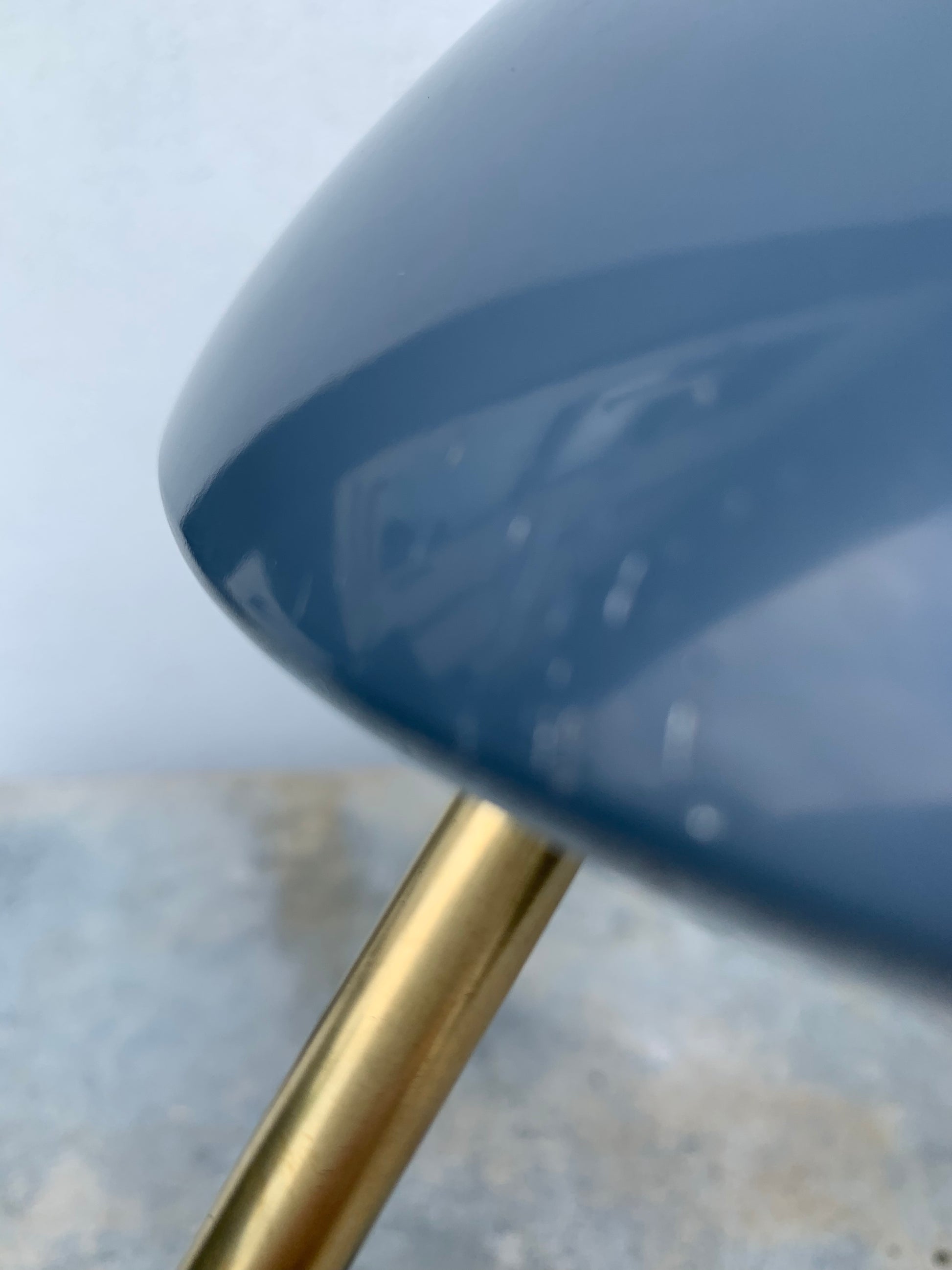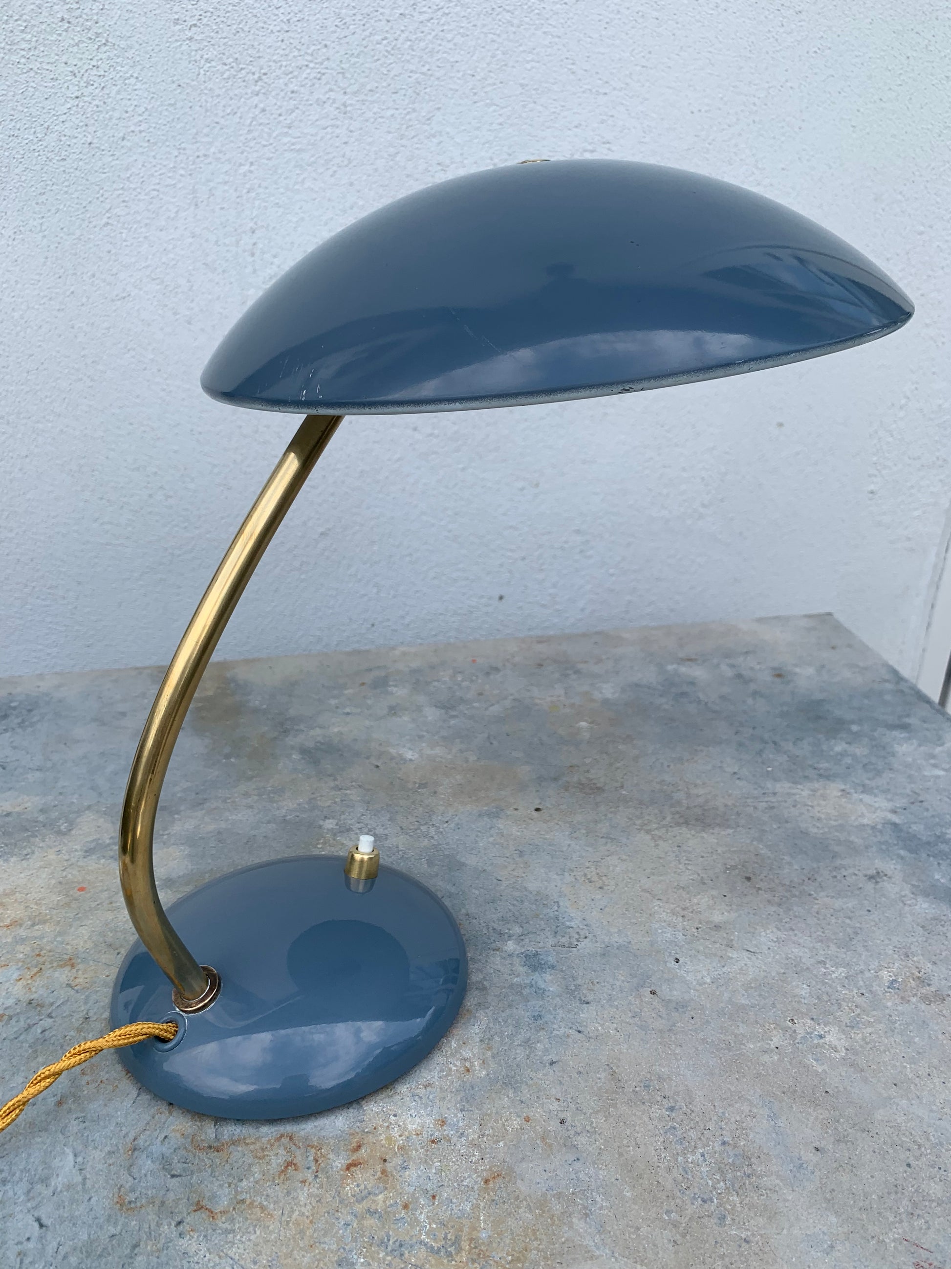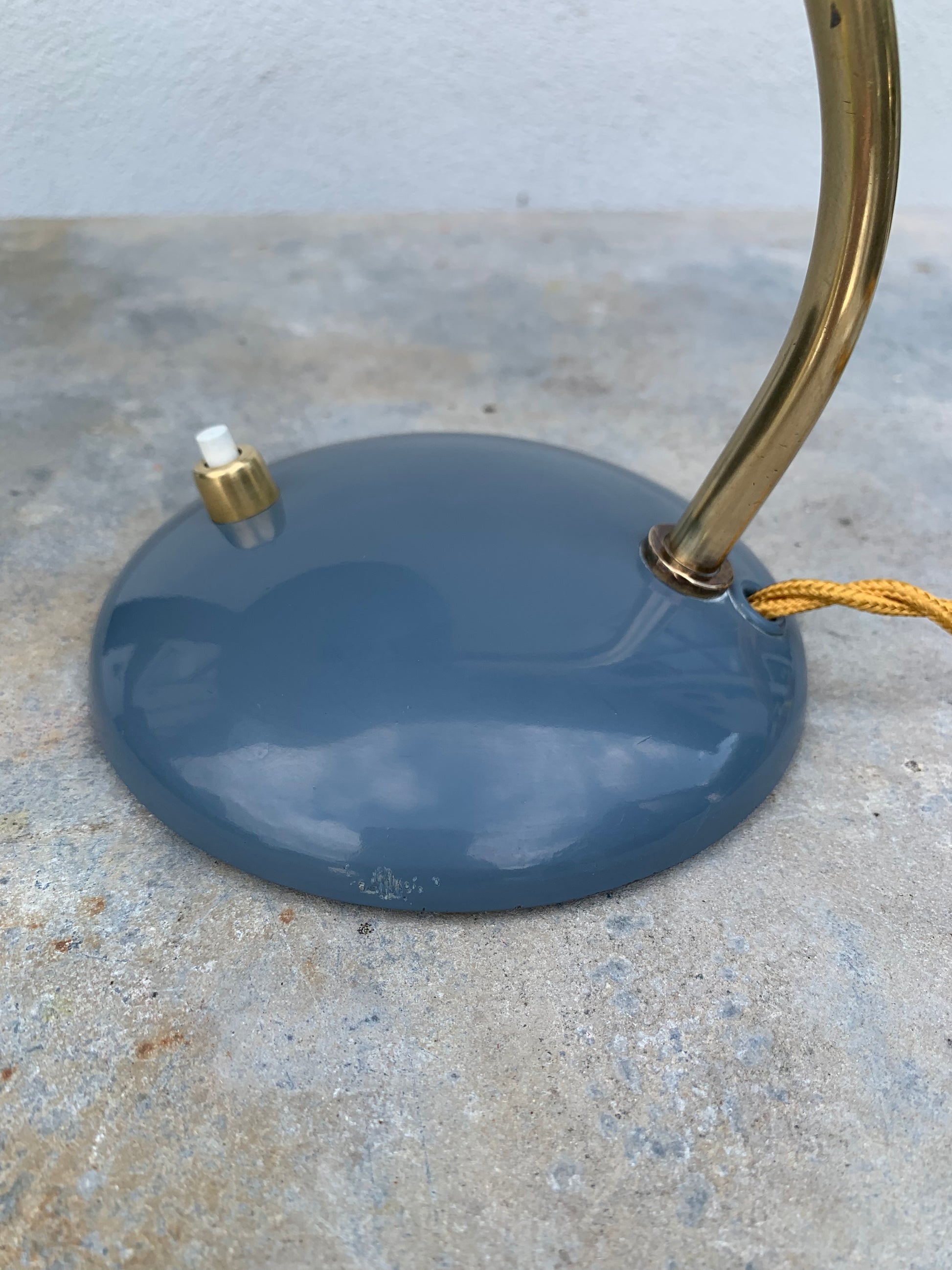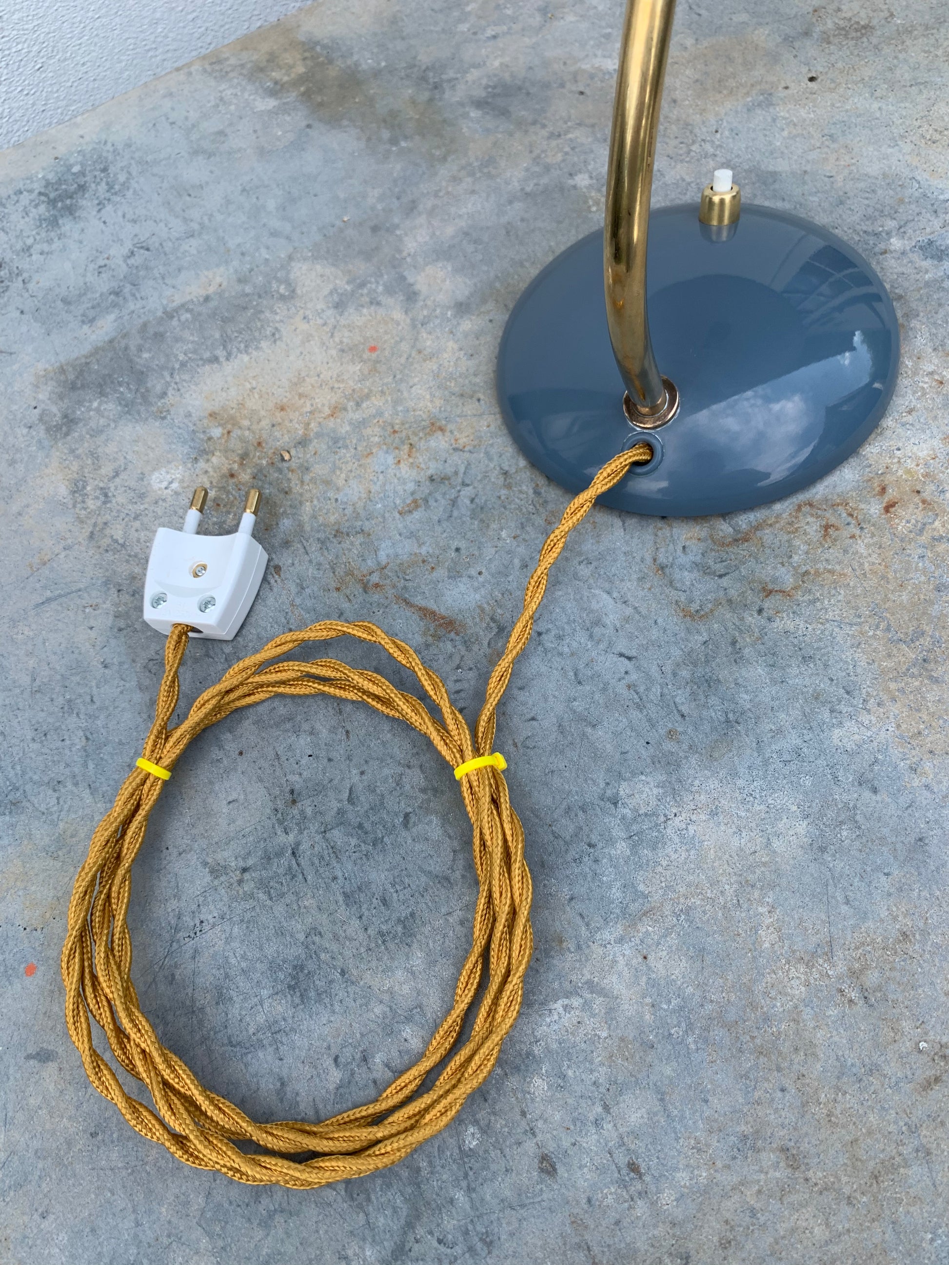 Trevligt litet nyligen trådbundet fodral, designat av Christian Dell. Lampan, som visas i originalfärgen, har en arm i mässing. Tidens tand har bitit lite på den, på ett (i vår smak) väldigt charmigt sätt. Lampan är i bra skick med tanke på dess ålder.