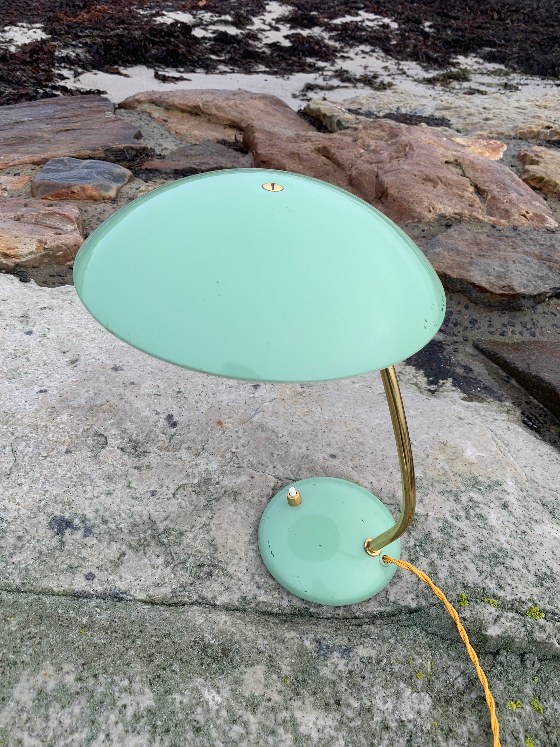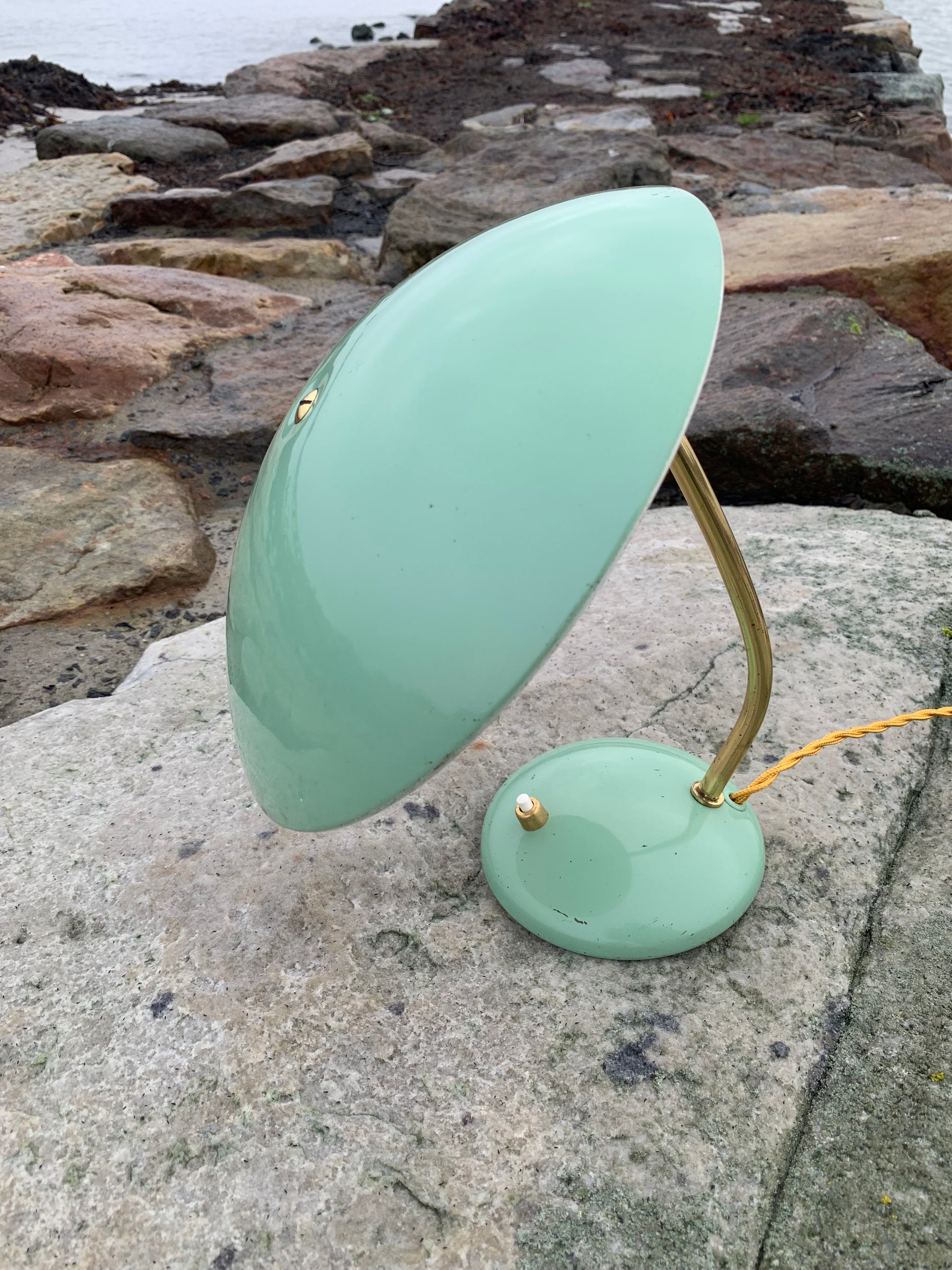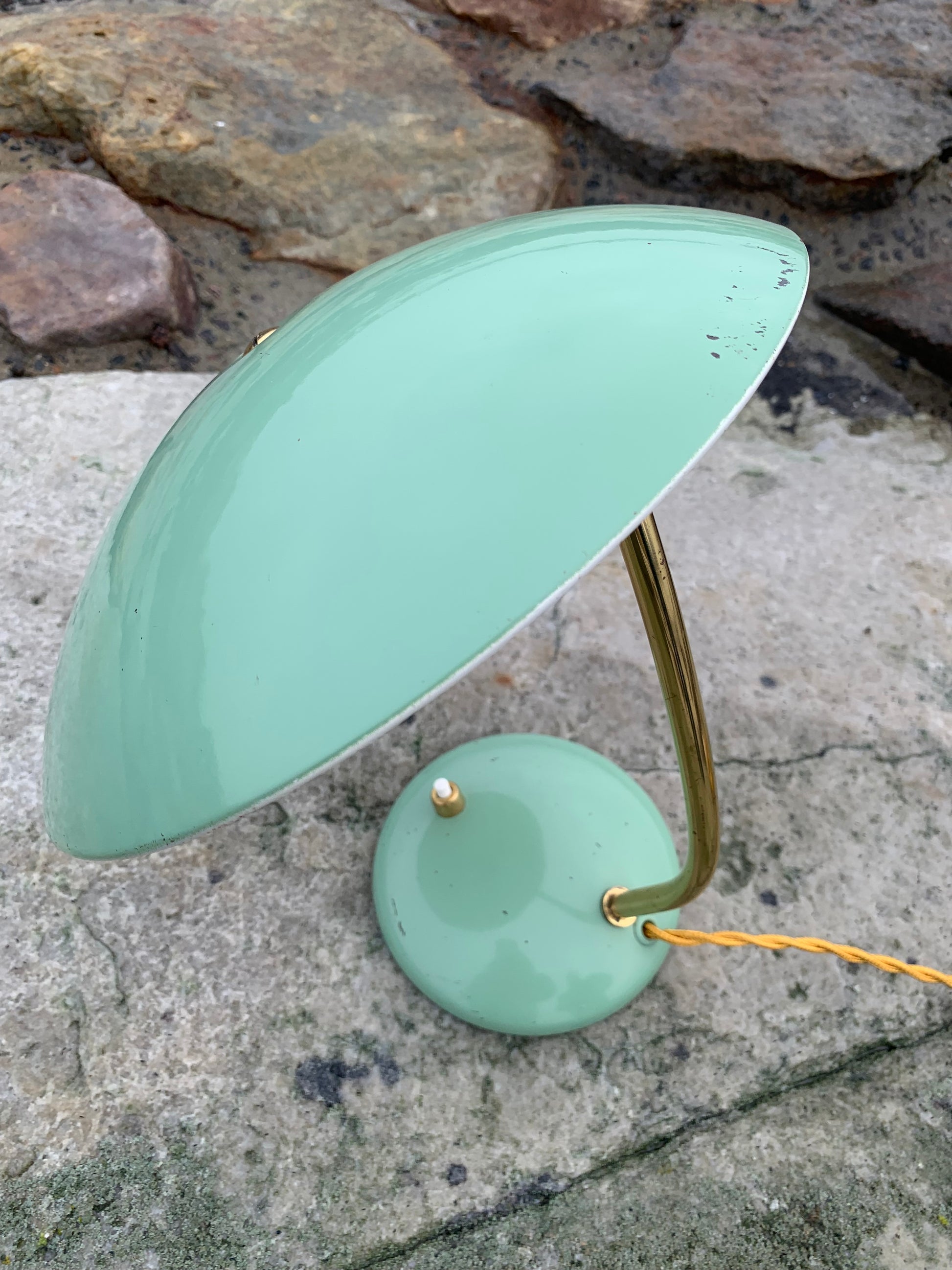 Detta exemplar visas med originallack och nya kablar. Lampan har vissa åldersrelaterade tecken på slitage, vilket en sådan lampa (enligt oss) borde ha. Tecken på slitage framgår av bilderna och lampan riktar sig till den som ser det perfekta i det ofullkomliga.