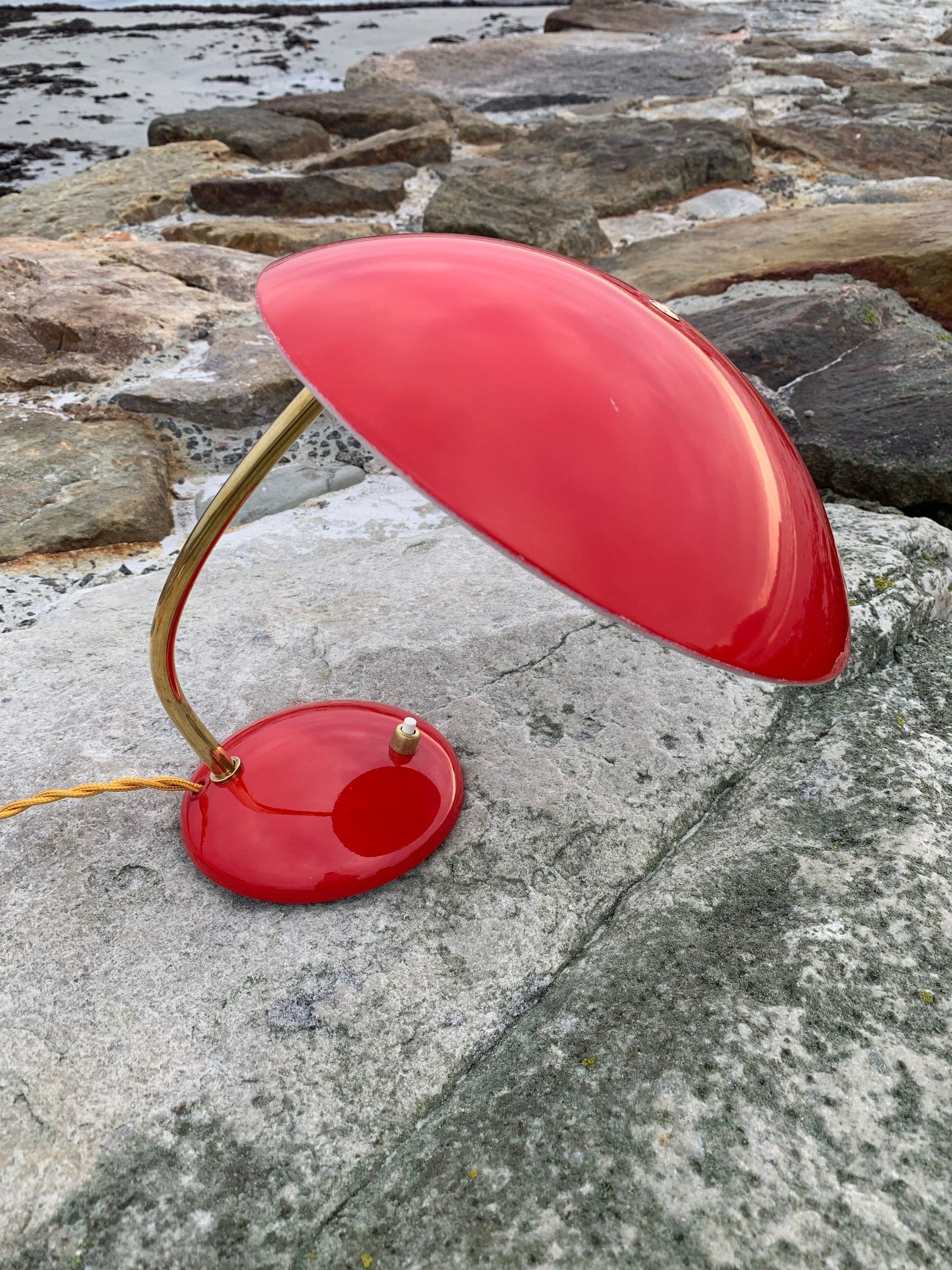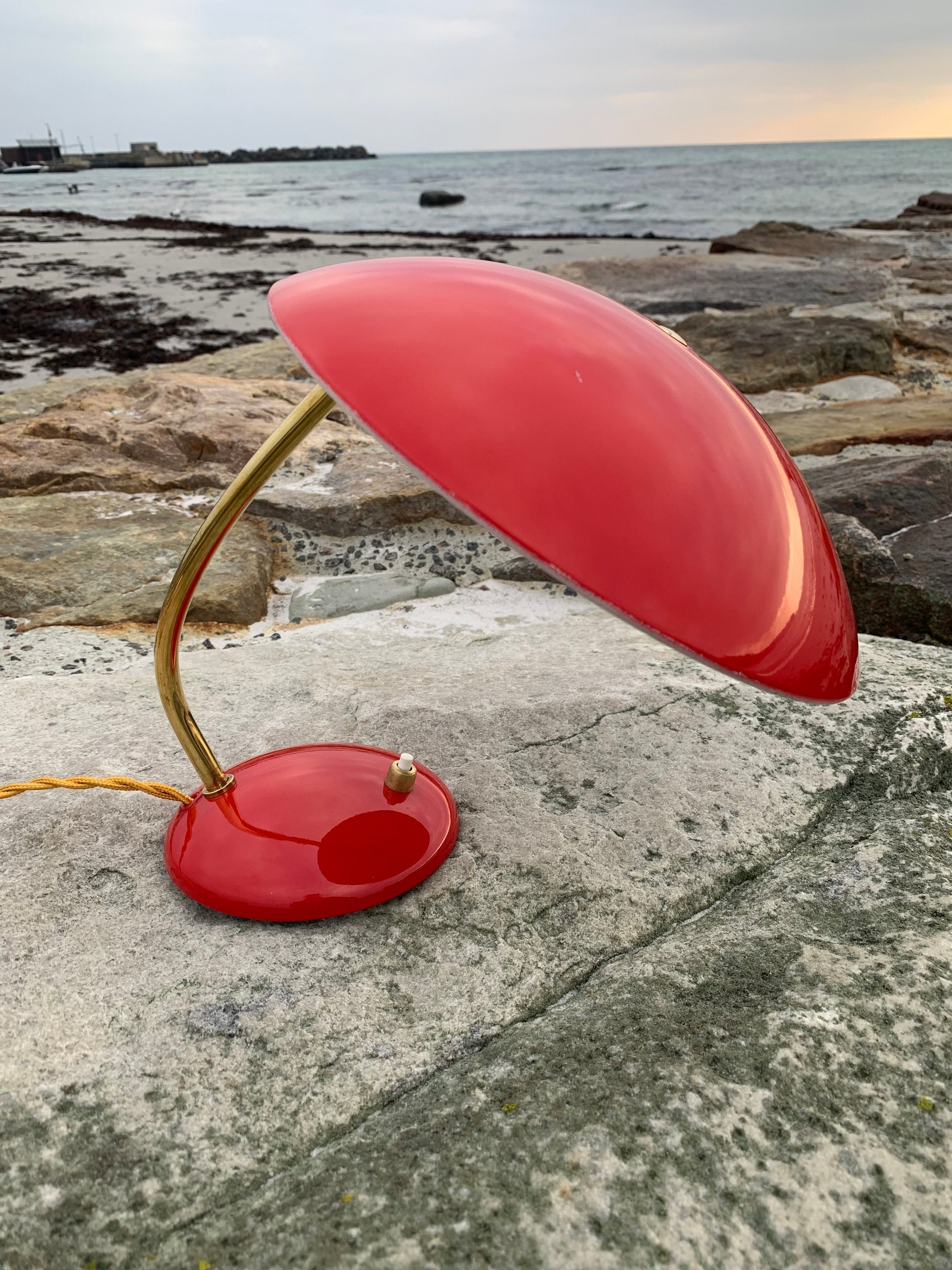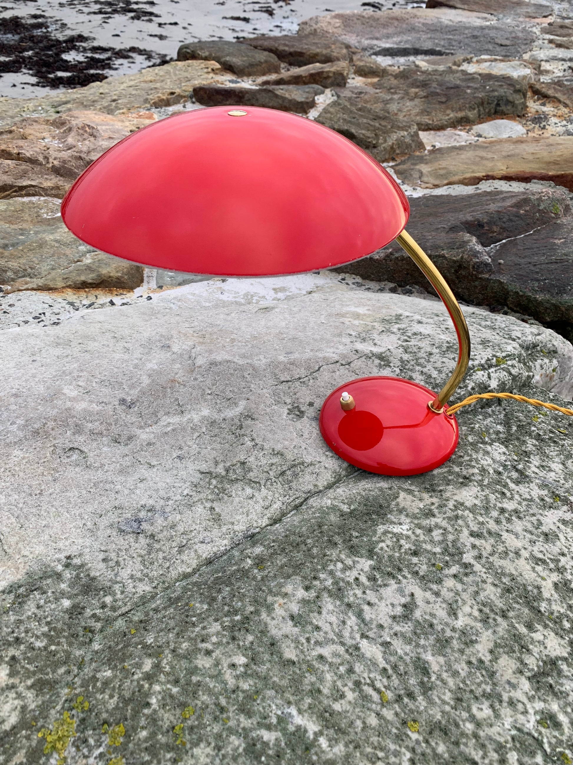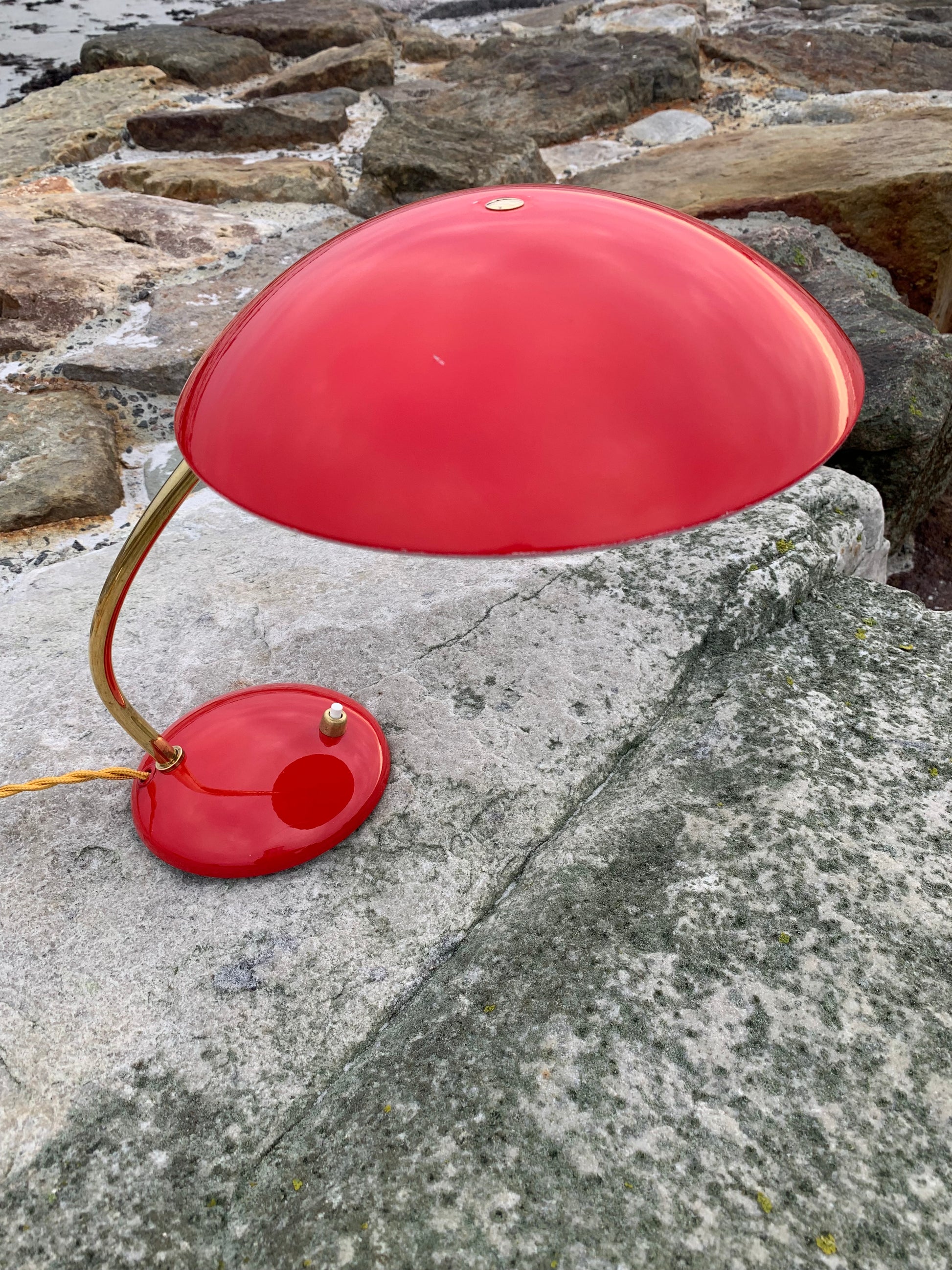 Vacker Kaiser Idell-lampa designad av Christian Dell. Denna vackra klassiker riktar sig till dig som ser skönheten i god och tidlös design. De fina gamla Kaiser Idell-lamporna är ett bevis på god kvalitet och gott hantverk. Dessa vackra gamla vintagelampor har ofta vissa åldersrelaterade tecken på slitage, vilket både förstärker äktheten och originaliteten. Dessa tecken både vittnar om och berättar historien om lampans resa genom flera decennier.
