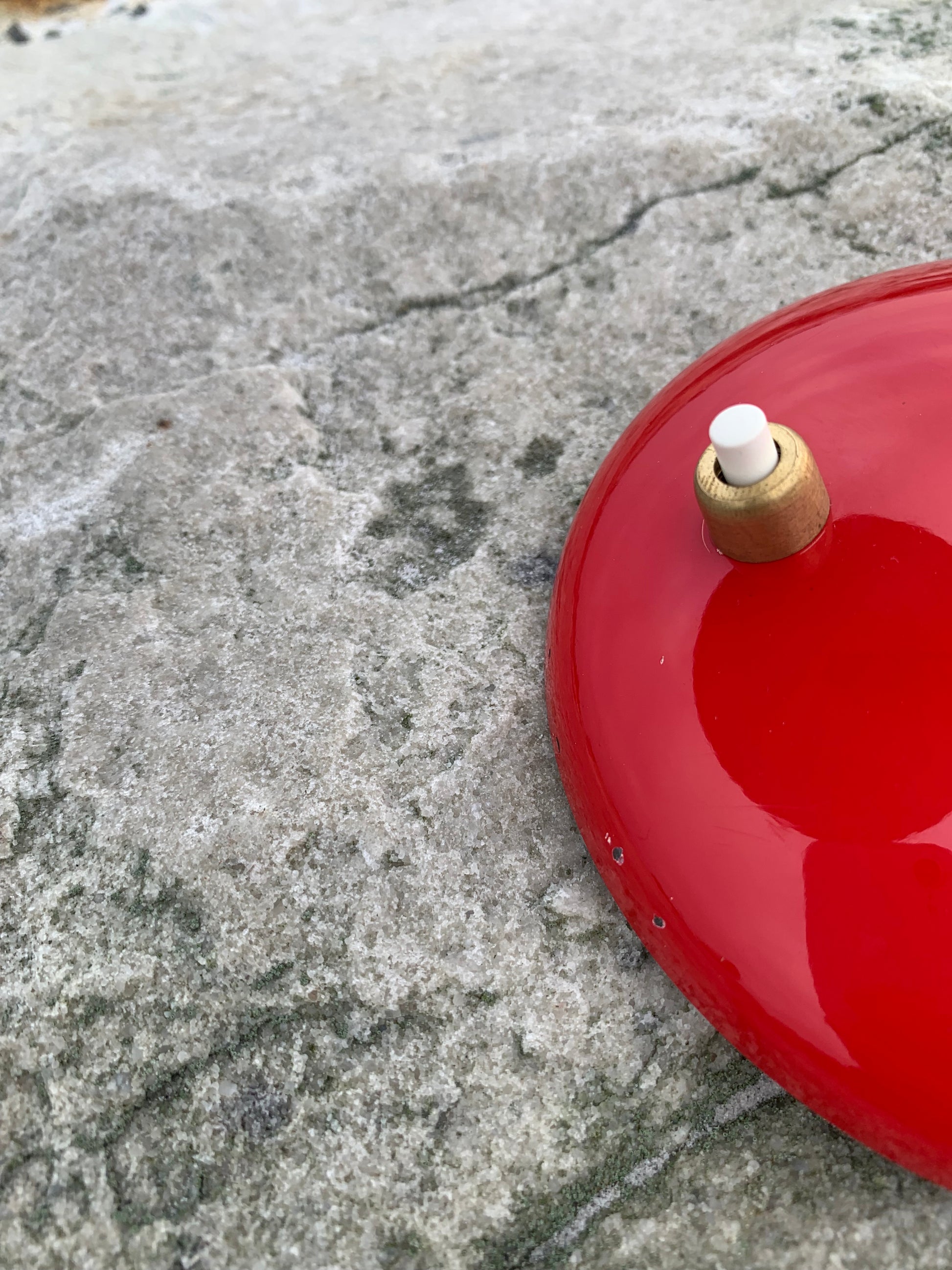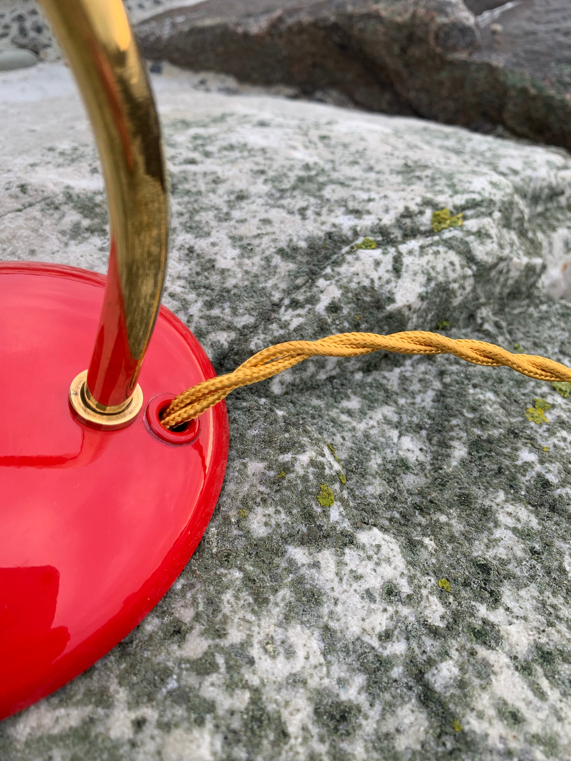 Detta exemplar har originallack och nya kablar. Lampan har vissa åldersrelaterade tecken på slitage, vilket en sådan lampa (enligt oss) borde ha. Sammantaget är den dock i riktigt fint vintageskick.