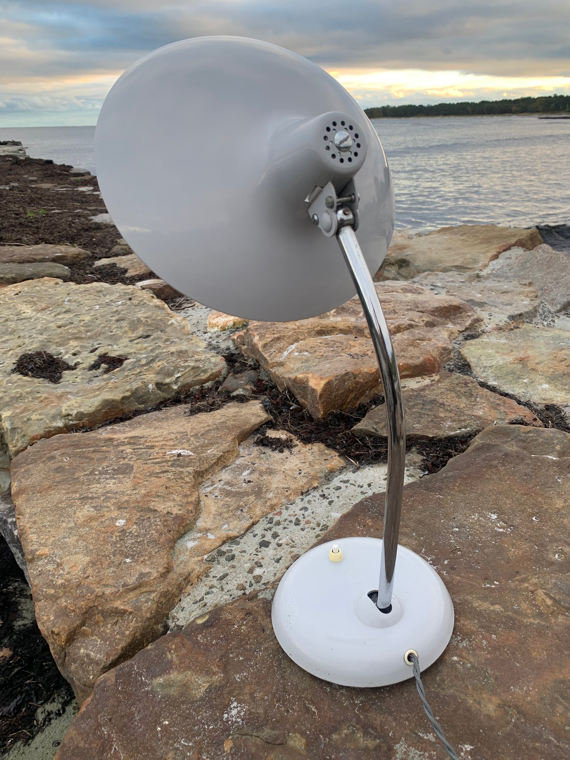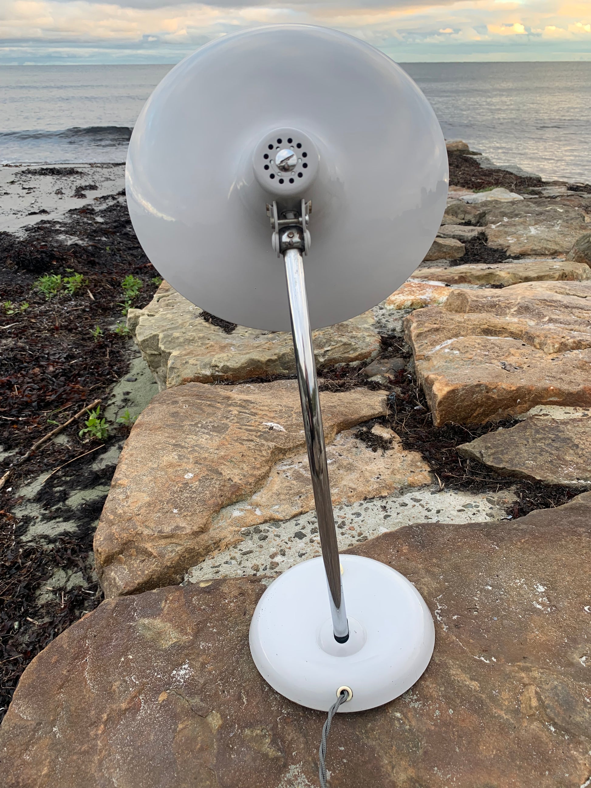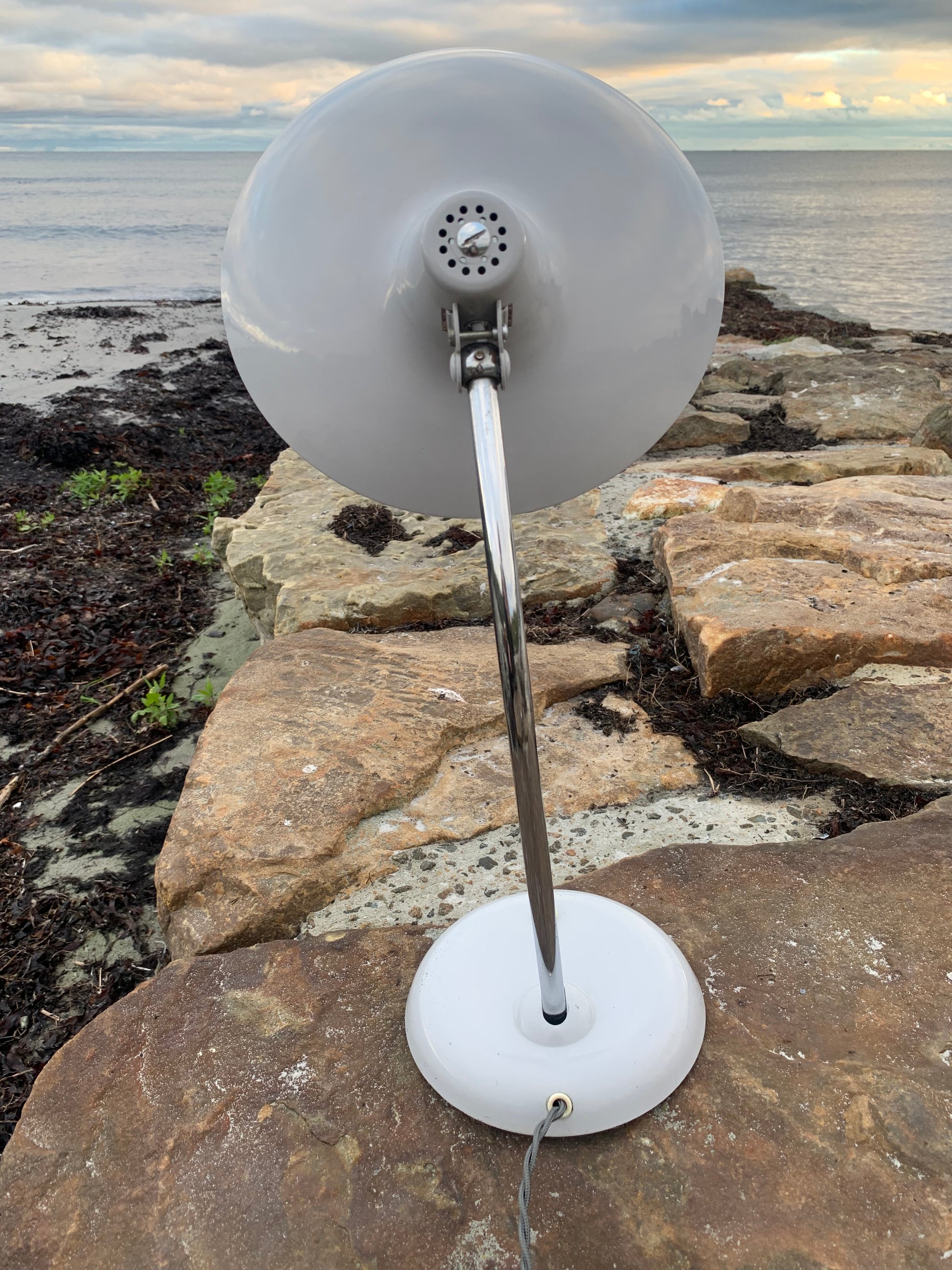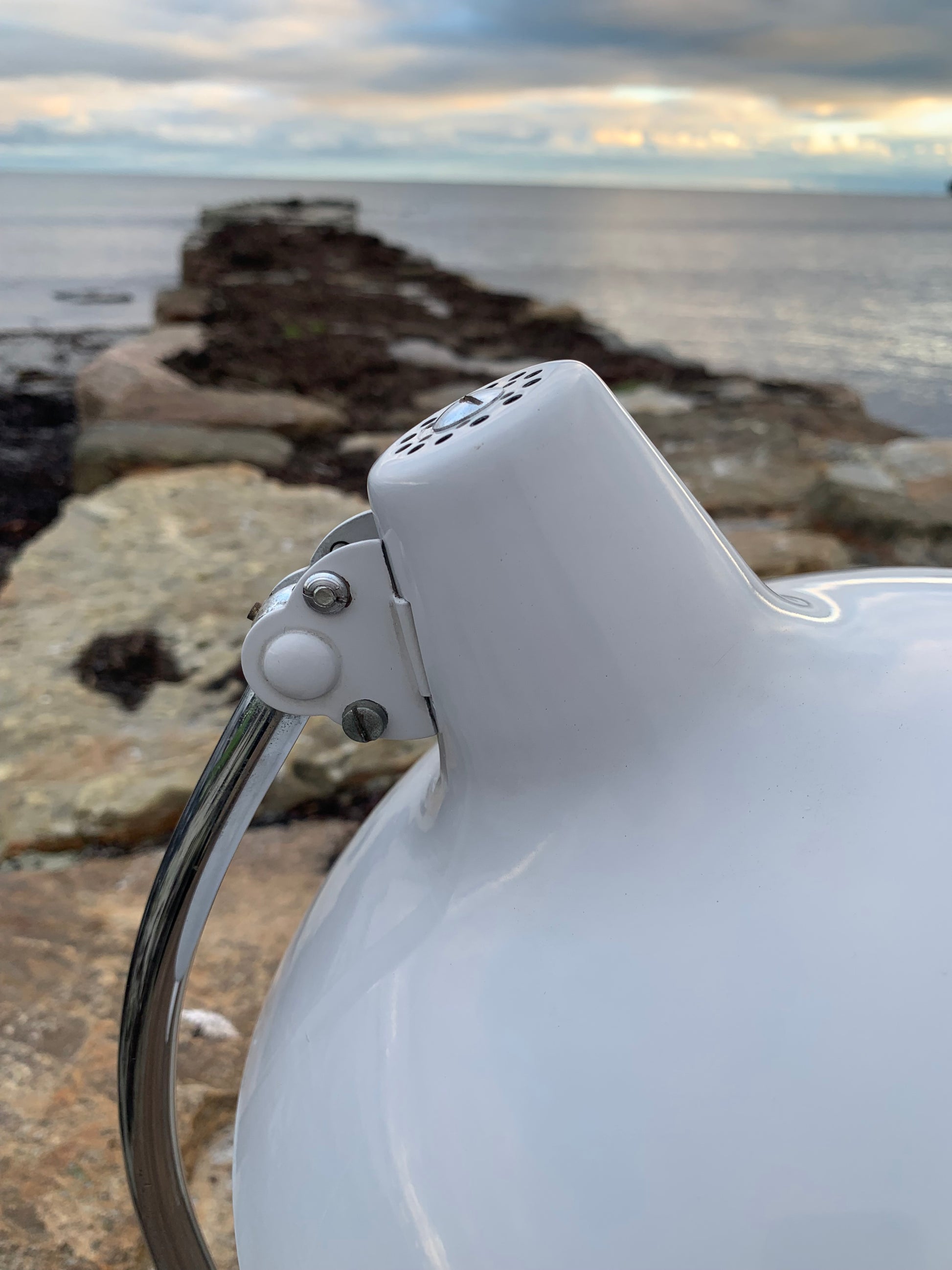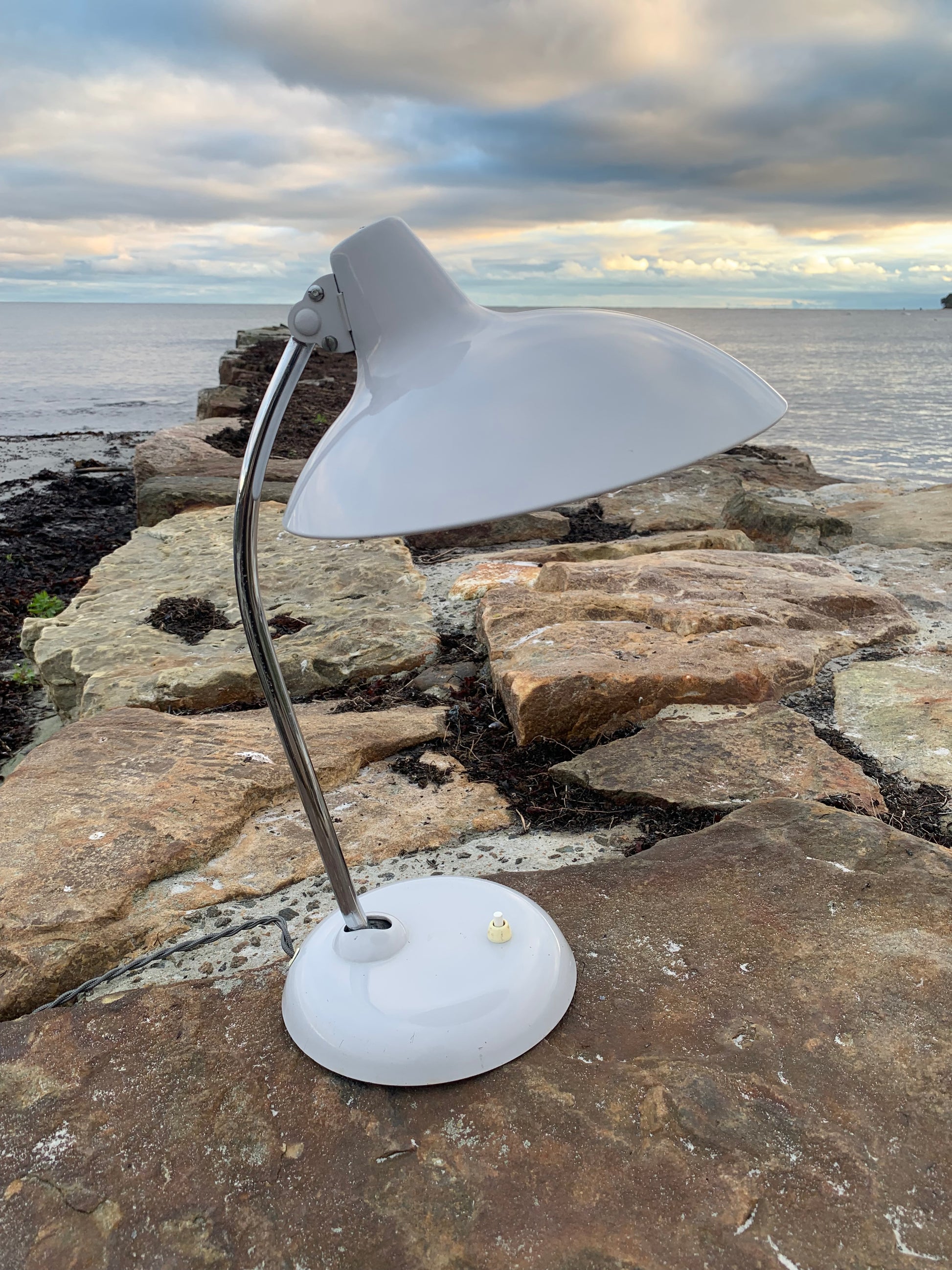 Vacker Kaiser Idell-lampa designad av Christian Dell. Denna vackra klassiker riktar sig till dig som ser skönheten i god och tidlös design. De fina gamla Kaiser Idell-lamporna är ett bevis på god kvalitet och gott hantverk. Dessa vackra gamla vintagelampor har ofta vissa åldersrelaterade tecken på användning, vilket både förstärker äktheten och originaliteten. Dessa tecken både vittnar om och berättar historien om lampans resa genom flera decennier.