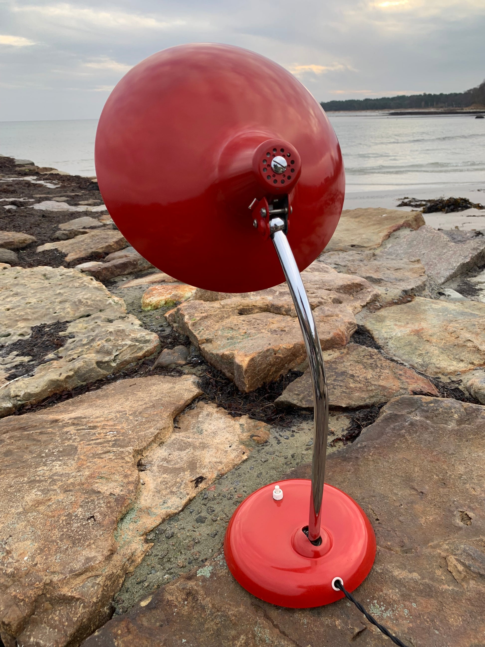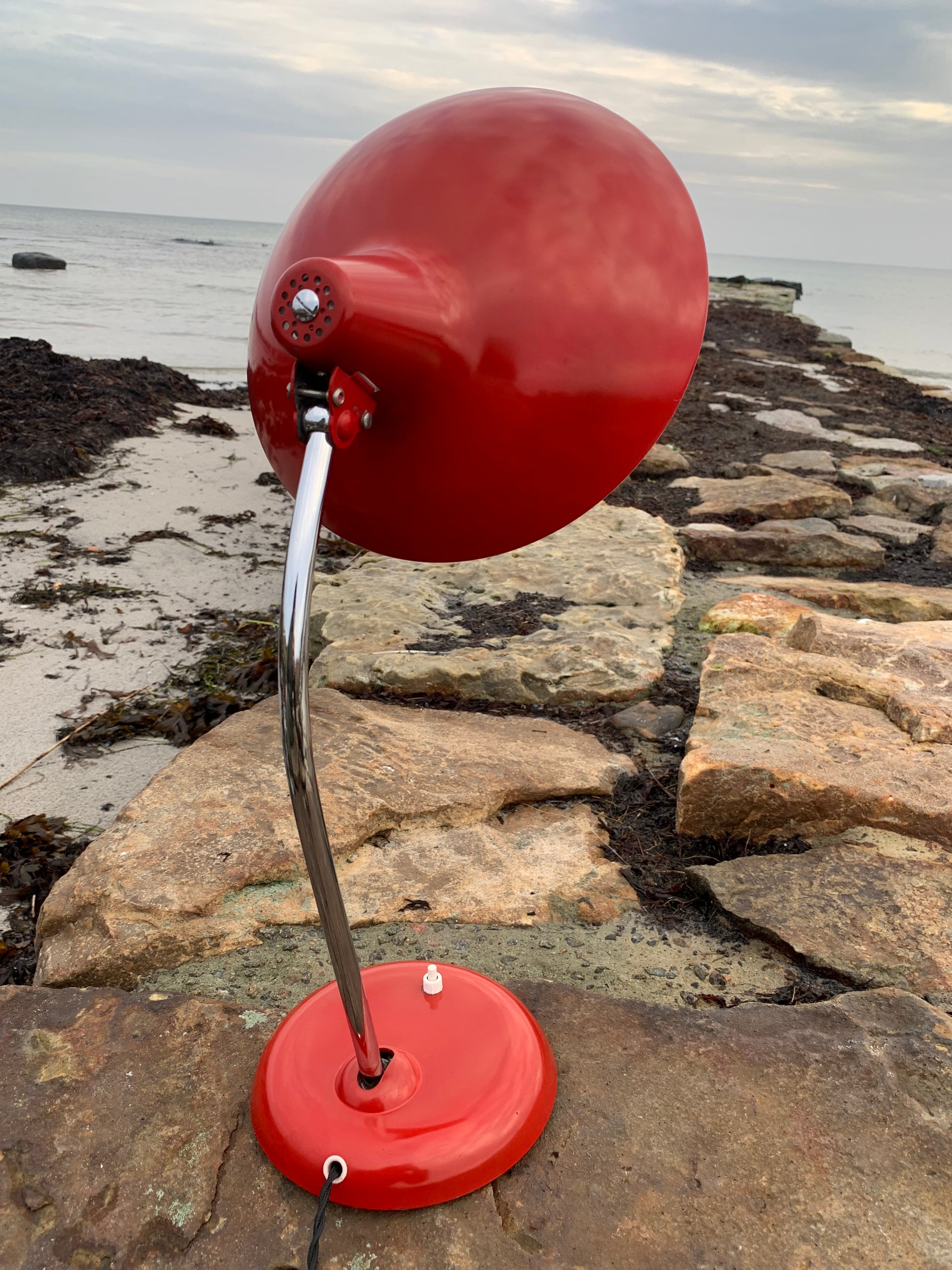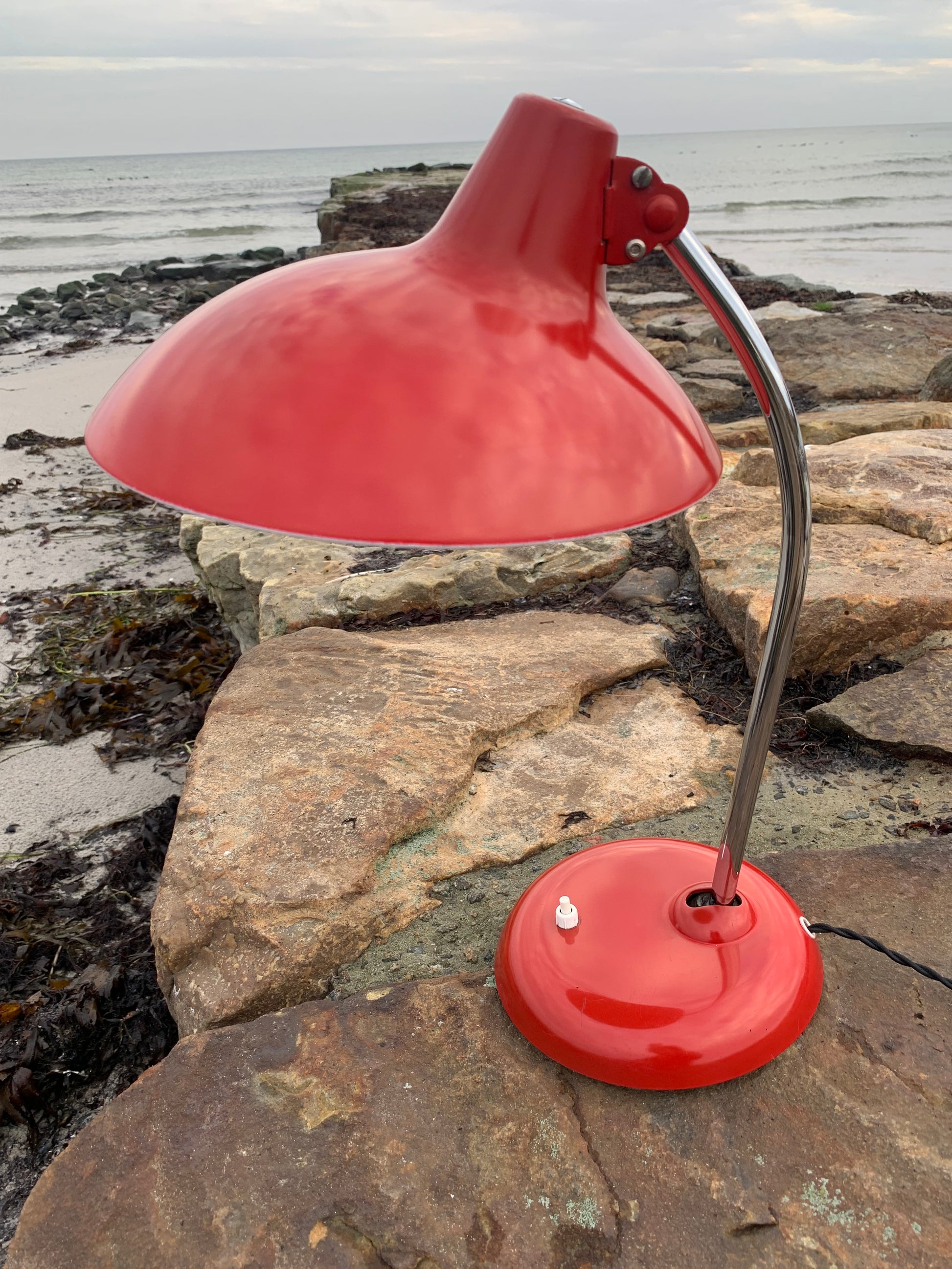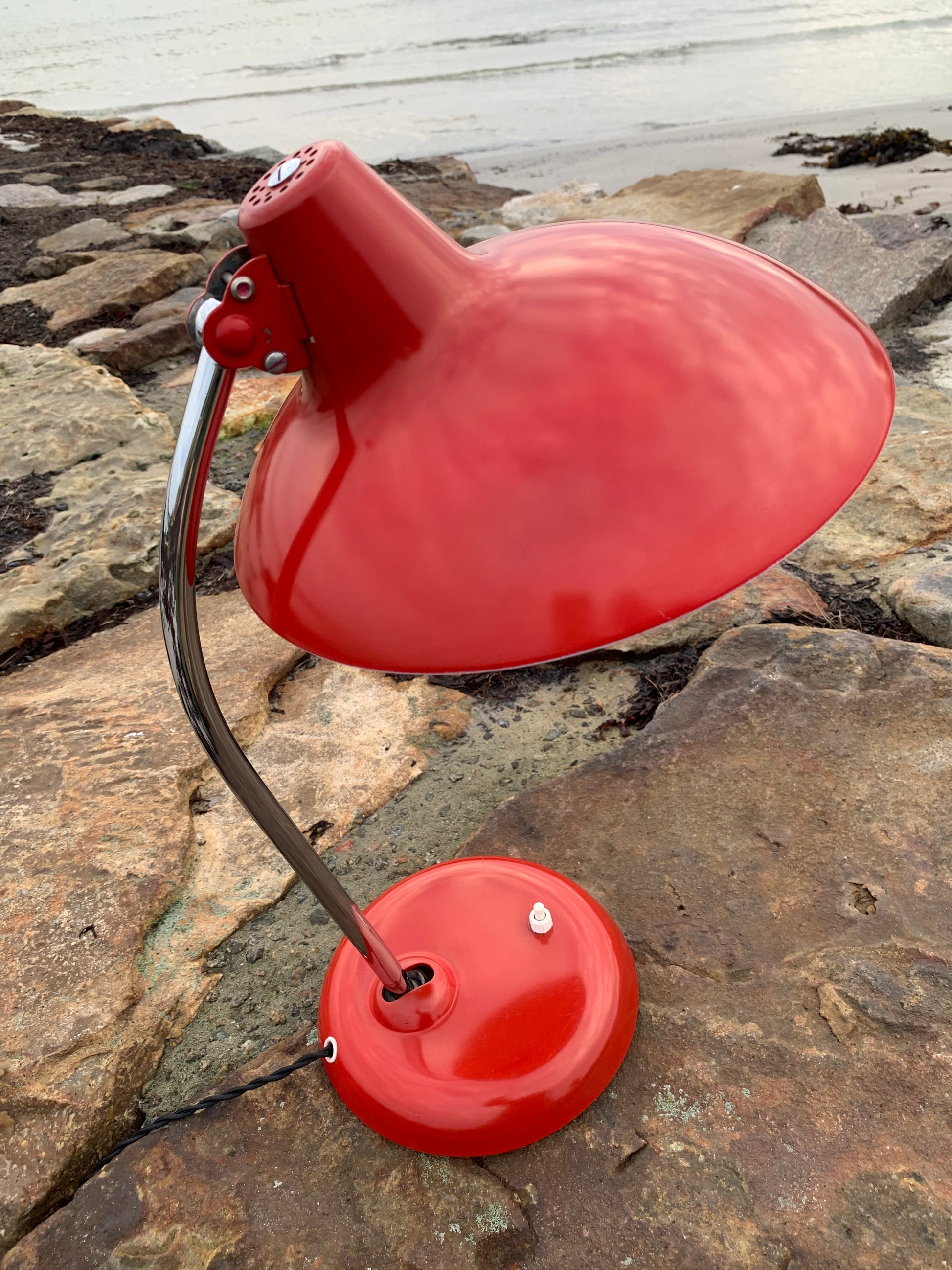 Vacker Kaiser Idell-lampa designad av Christian Dell. Denna vackra klassiker riktar sig till dig som ser skönheten i god och tidlös design. De fina gamla Kaiser Idell-lamporna är ett bevis på god kvalitet och gott hantverk. Dessa vackra gamla vintagelampor har ofta vissa åldersrelaterade tecken på slitage, vilket både förstärker äktheten och originaliteten. Dessa tecken både vittnar om och berättar historien om lampans resa genom flera decennier.
