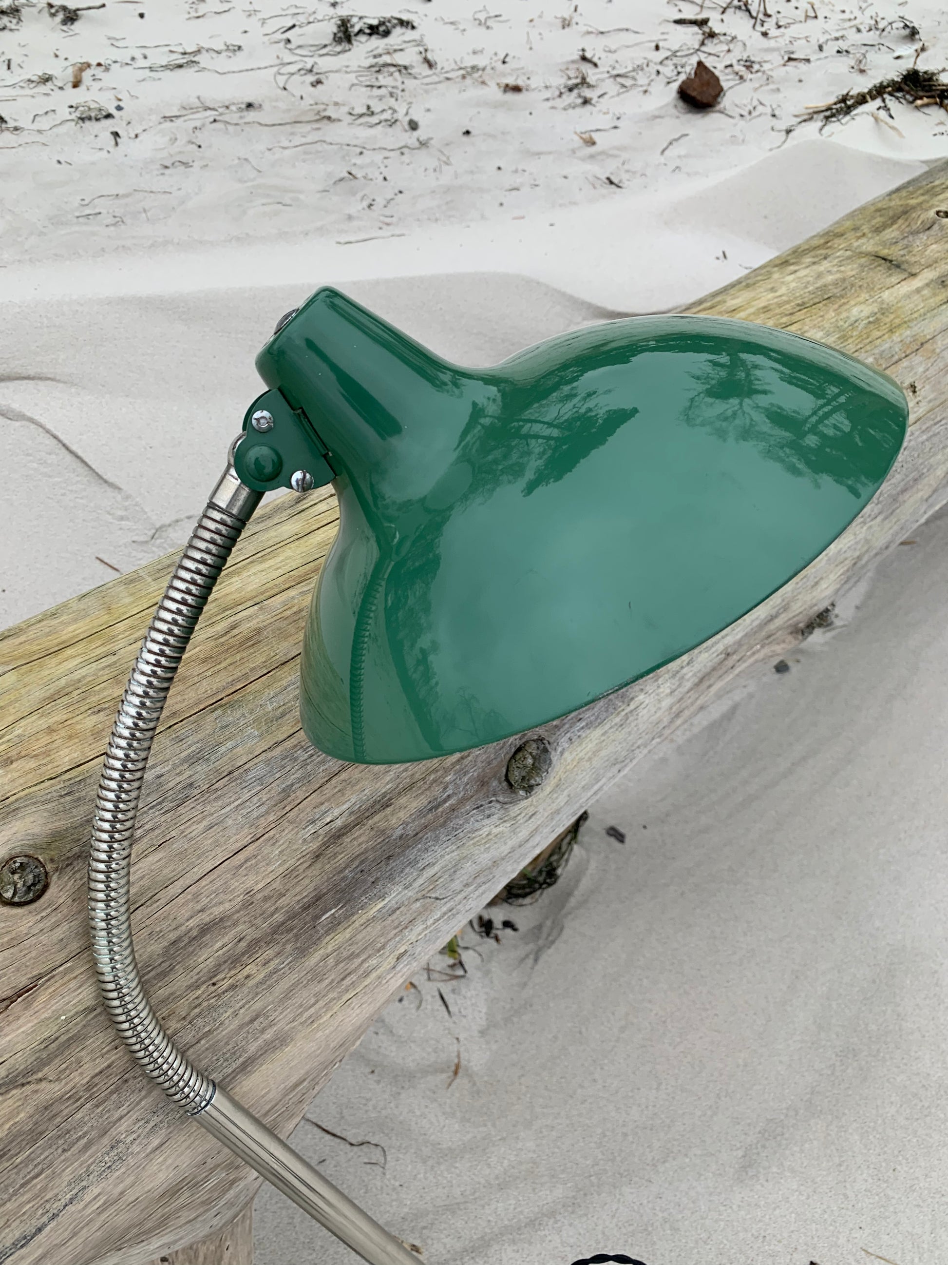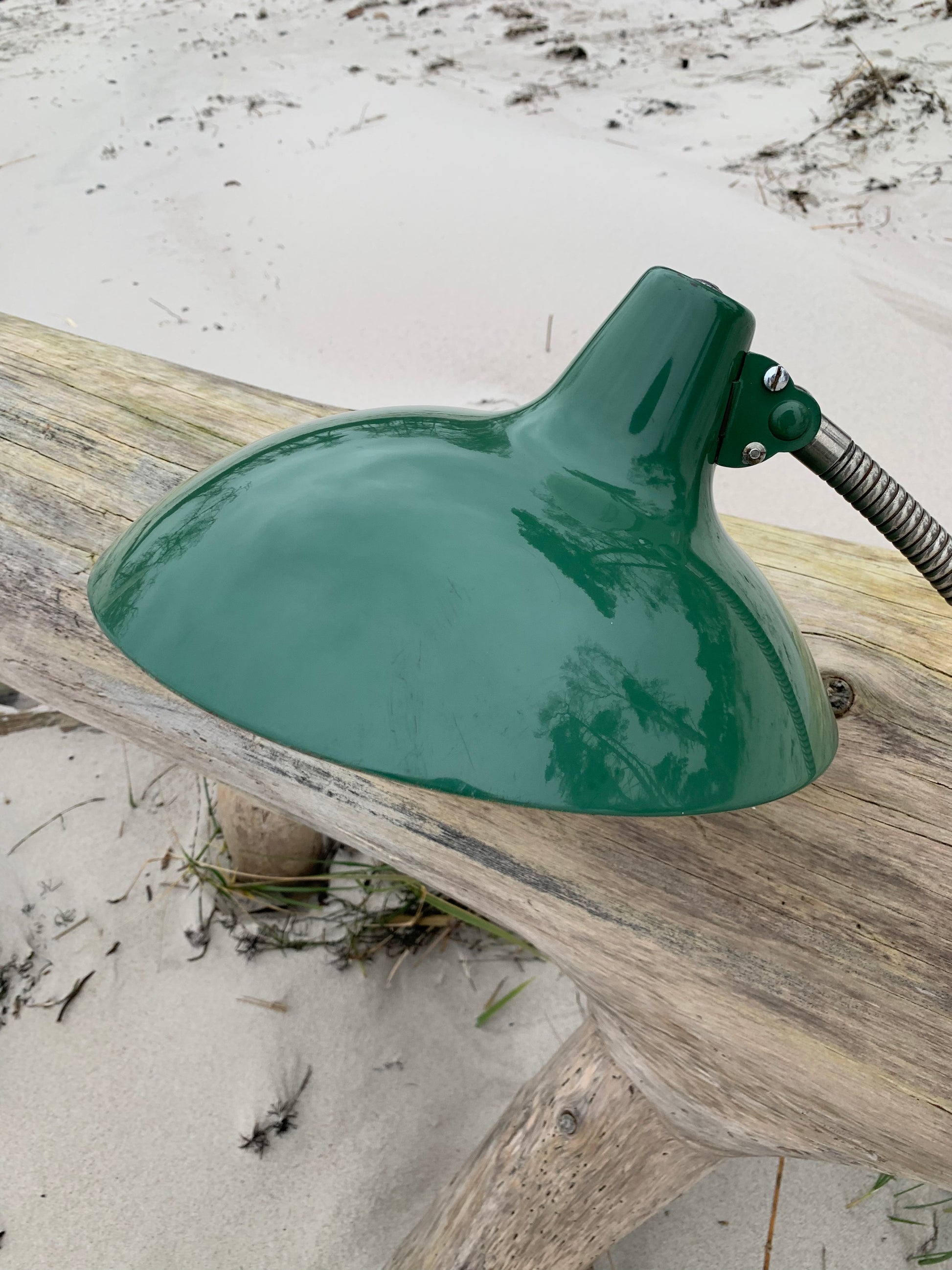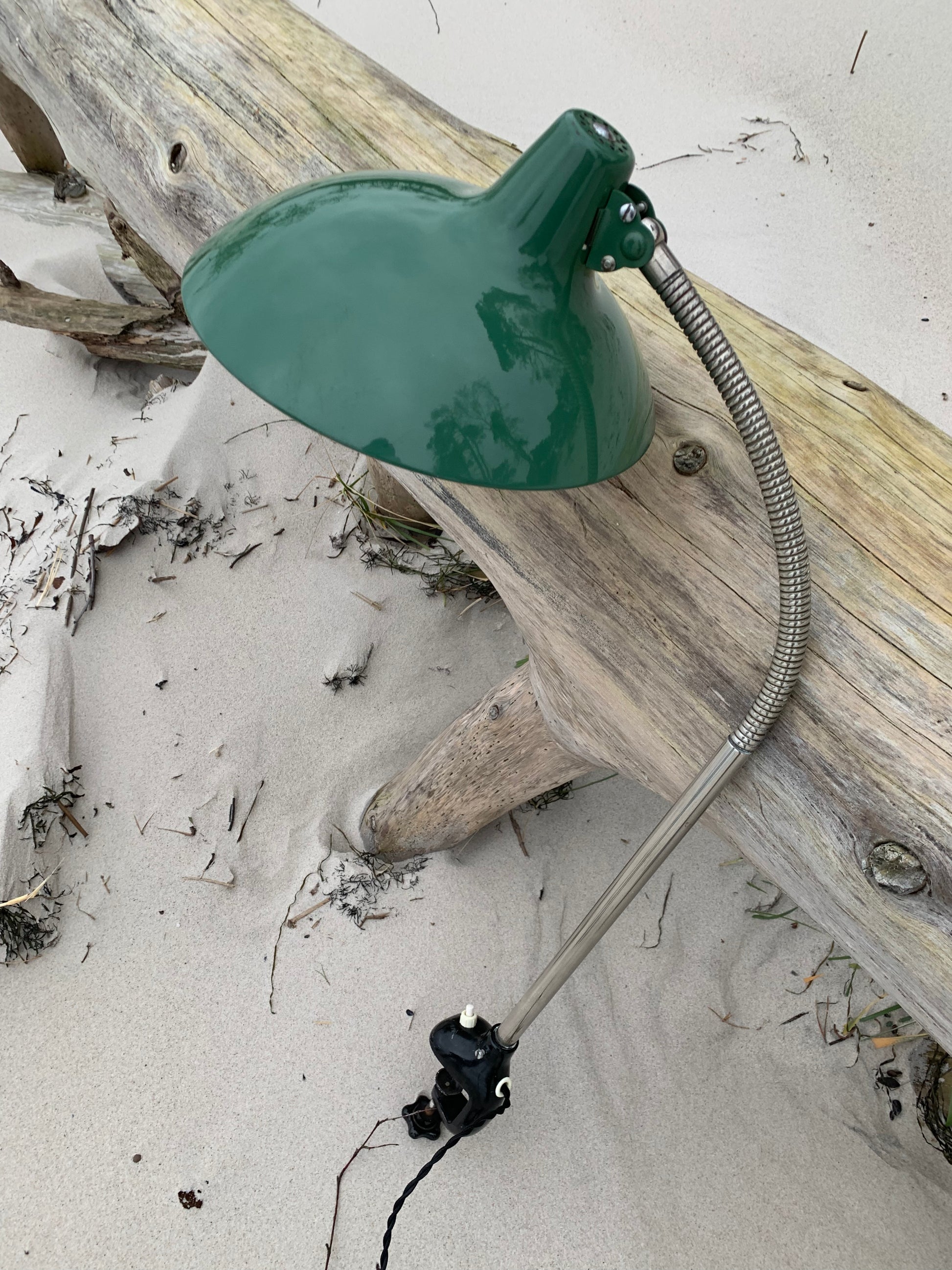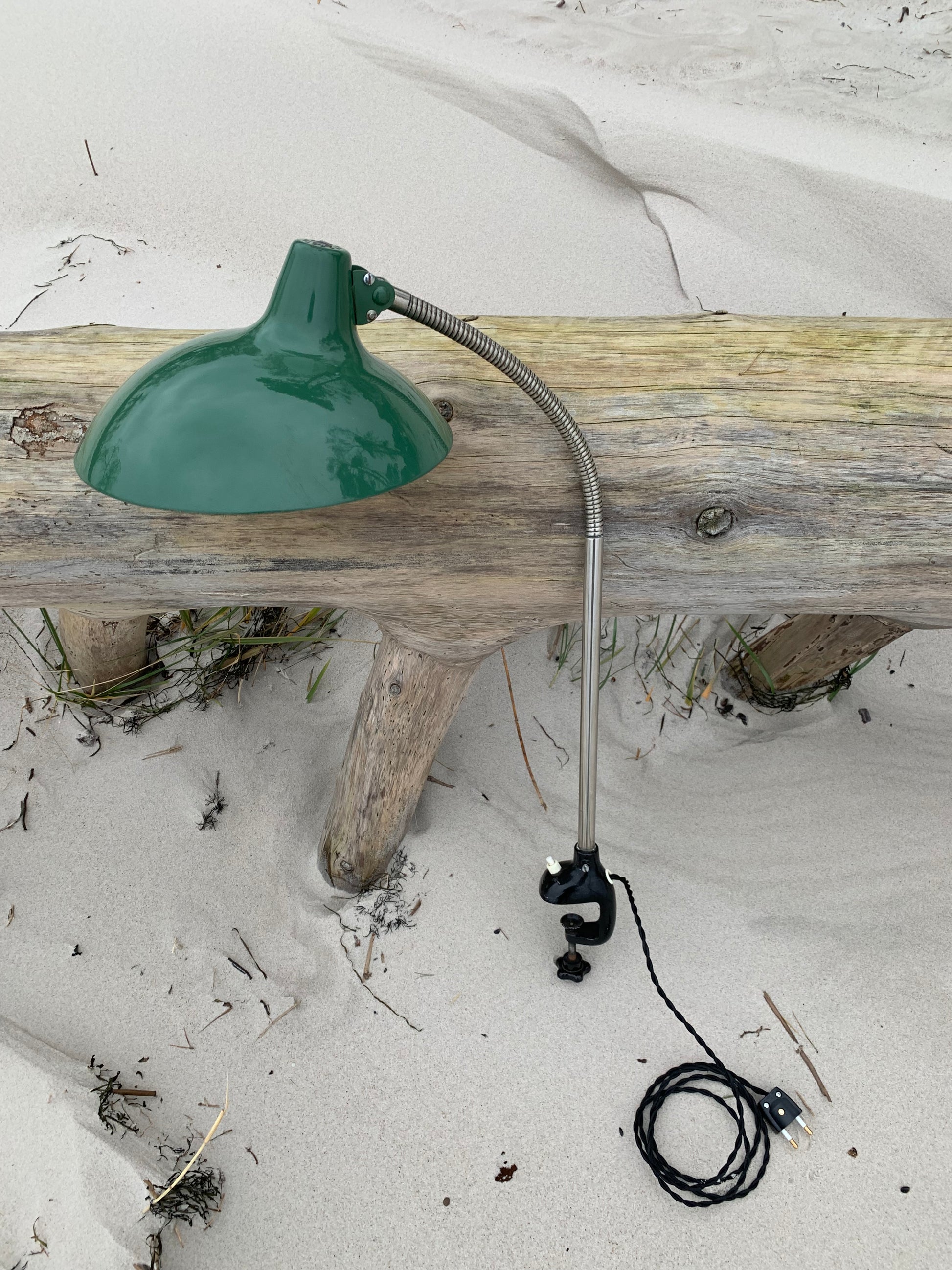 Vacker arkitektlampa med bordsbeslag. Lampan är designad av Christian Dell... för dig som älskar en bra design som håller. Lampan är charmig och nykopplad. Tidens tand har bitit lite i den, så den riktar sig till dig som gillar lite patina.