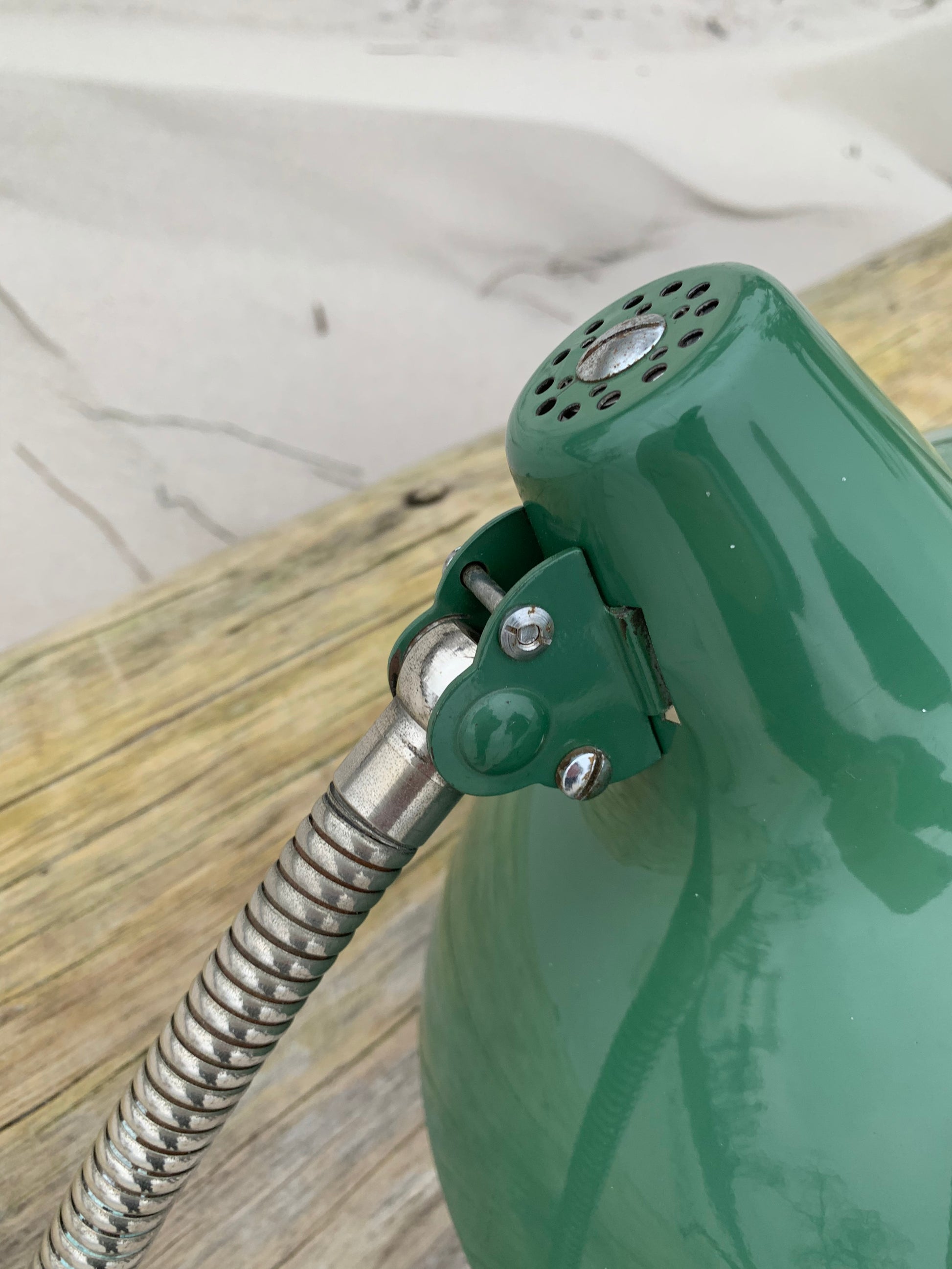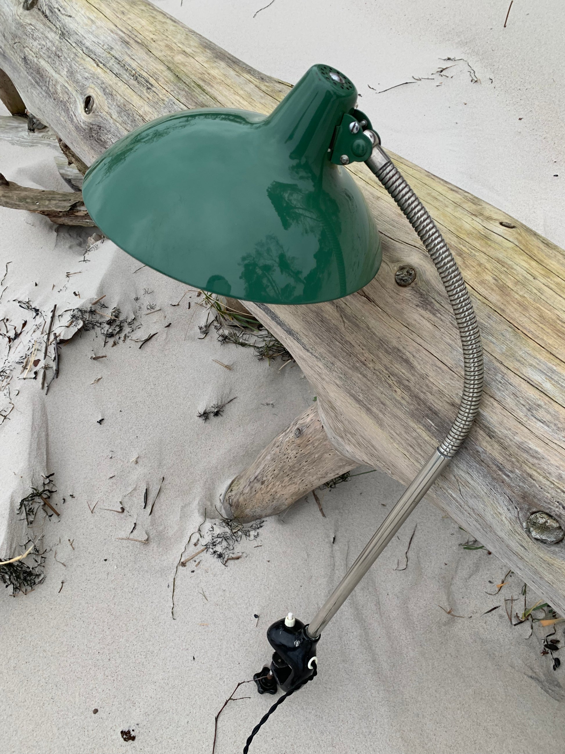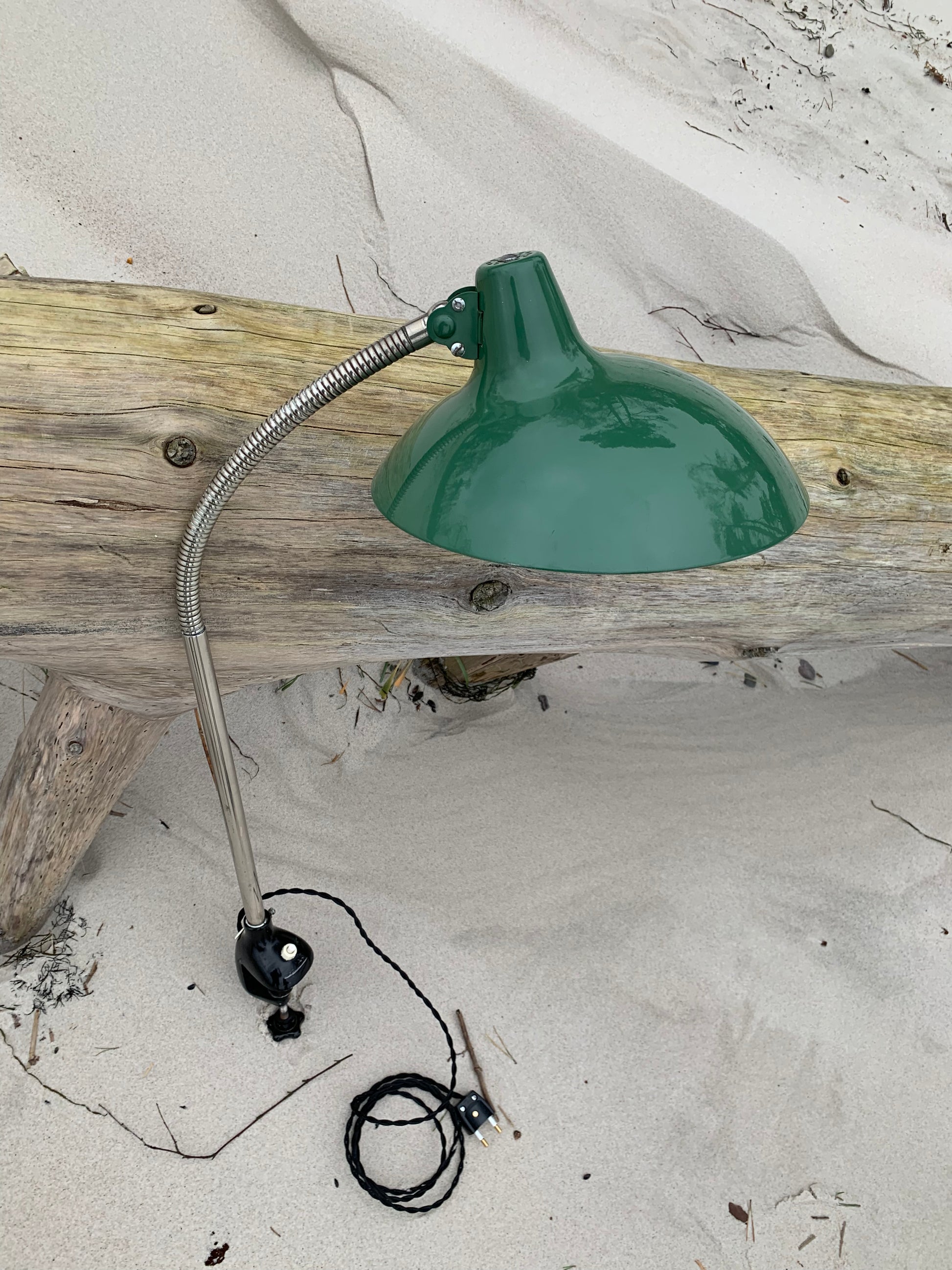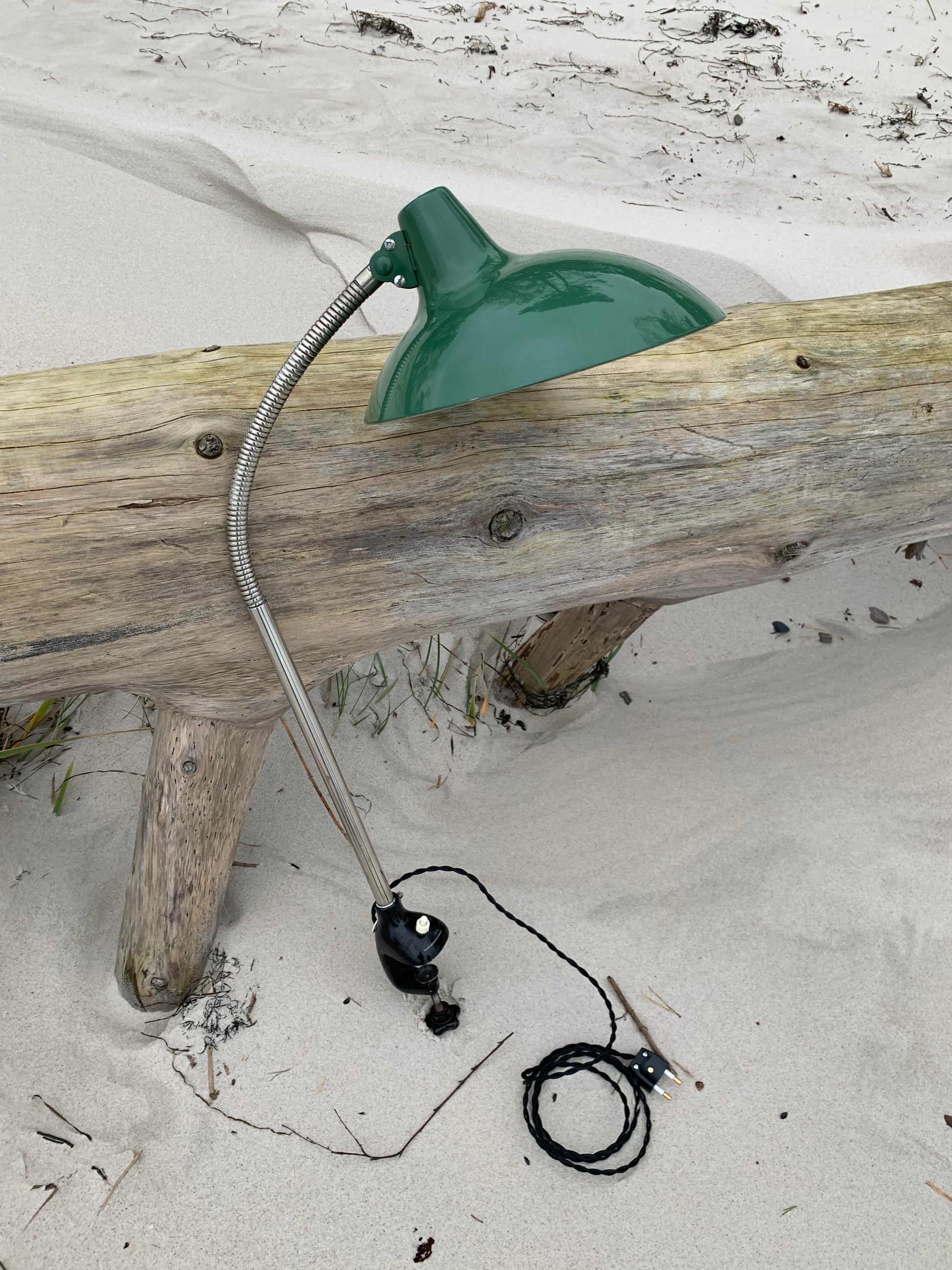 Vacker arkitektlampa med bordsbeslag. Lampan är designad av Christian Dell... för dig som älskar en bra design som håller. Lampan är charmig och nykopplad. Tidens tand har bitit lite i den, så den riktar sig till dig som gillar lite patina.
