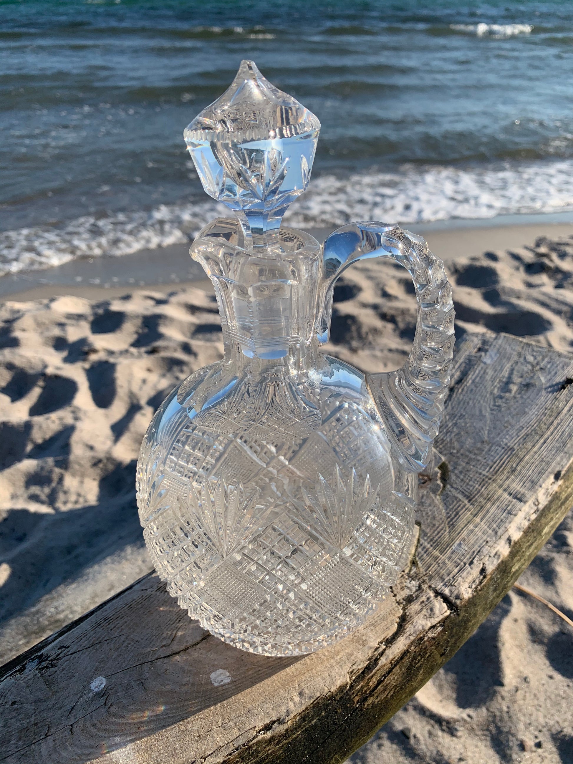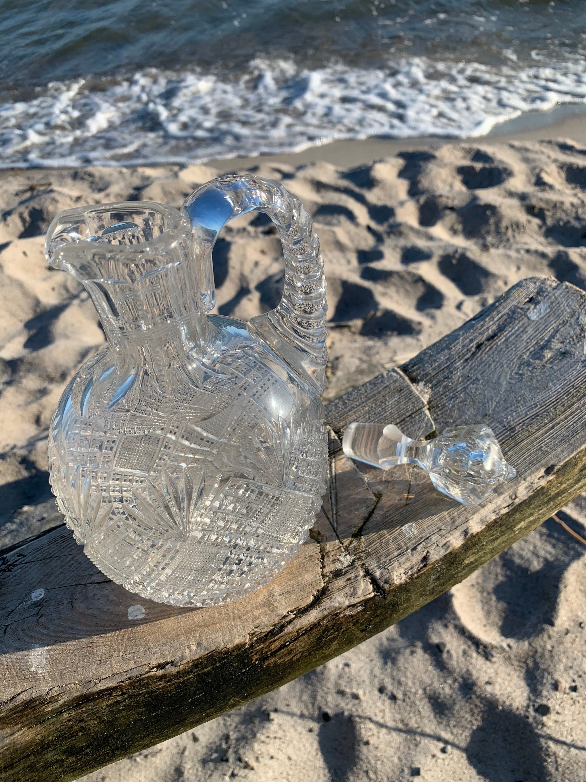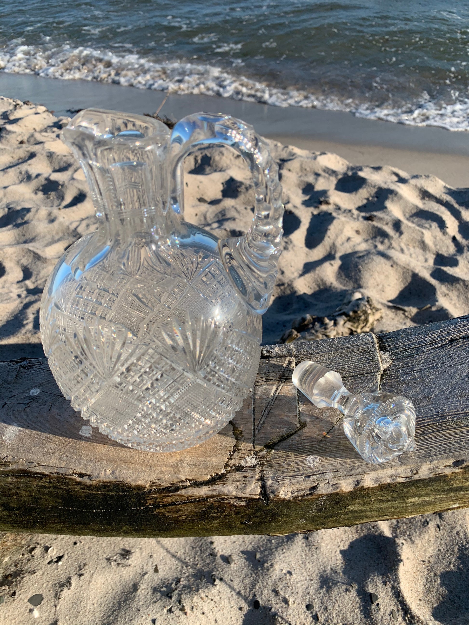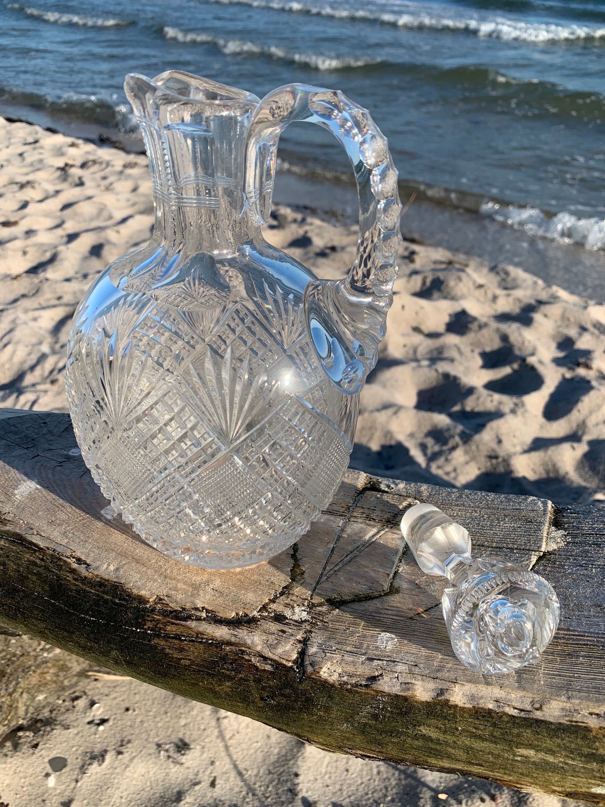 Vacker glaskaraff med glaspropp. När det hela ska se lite läckert ut och bordet ska dukas inbjudande.