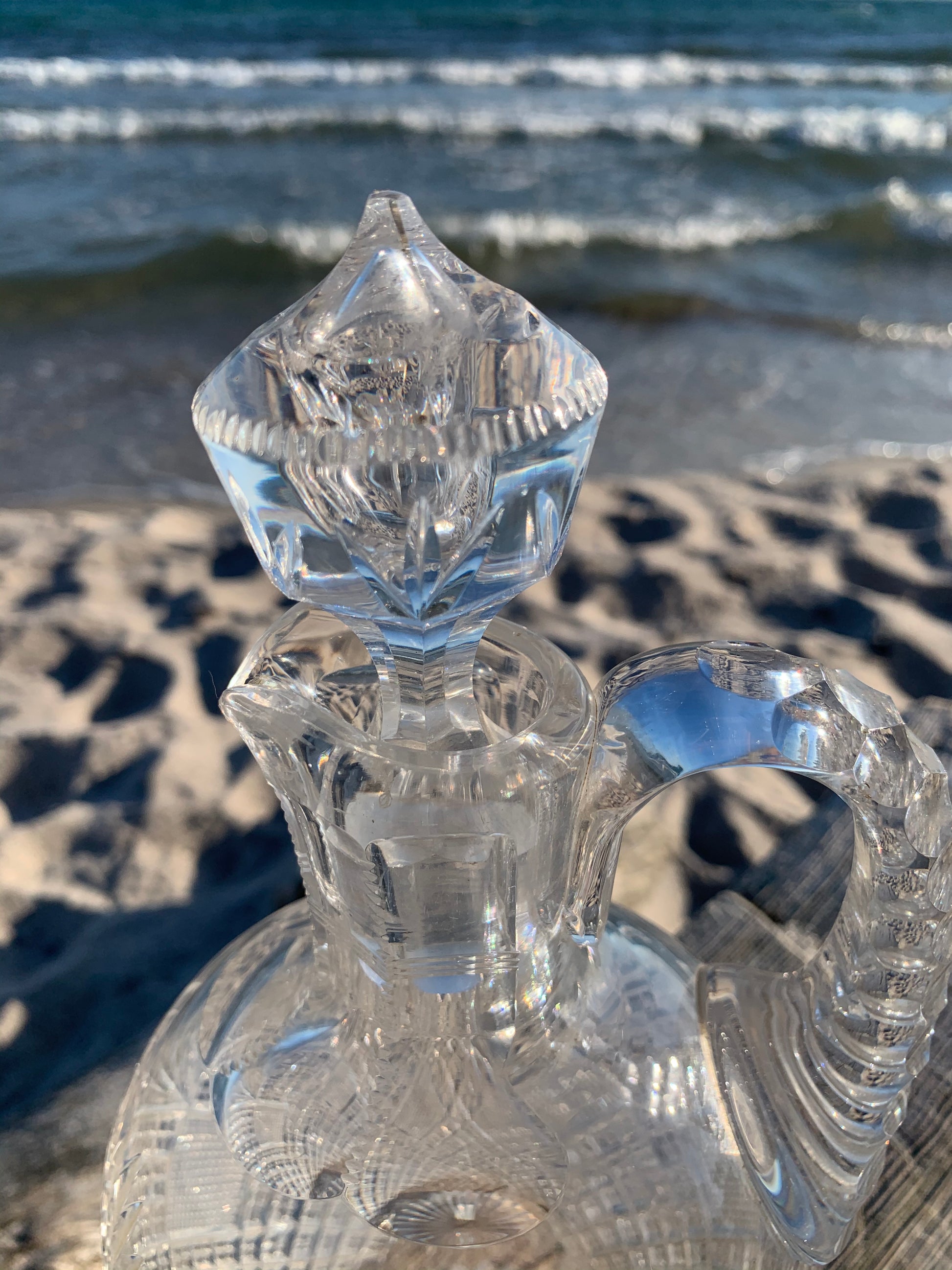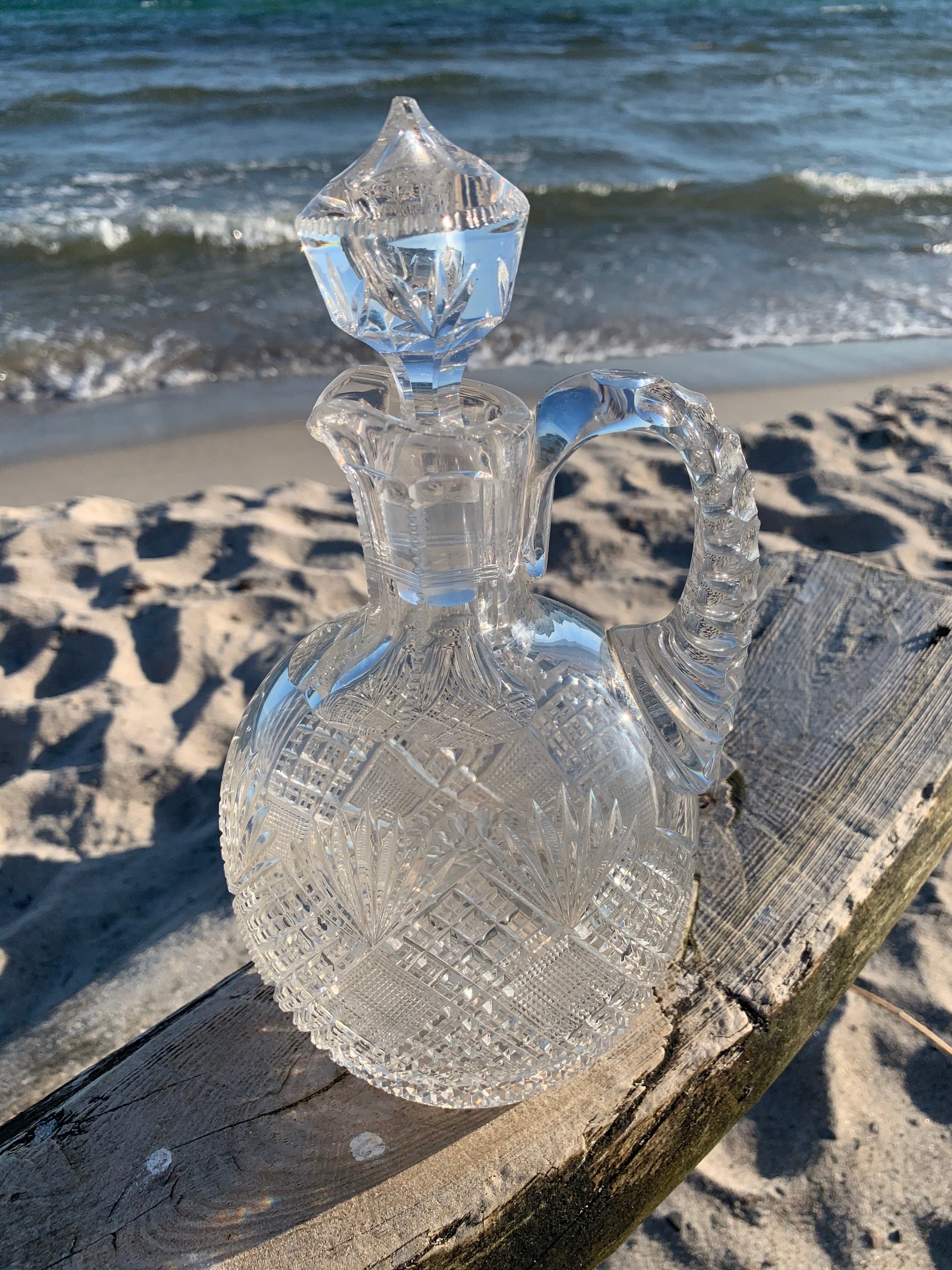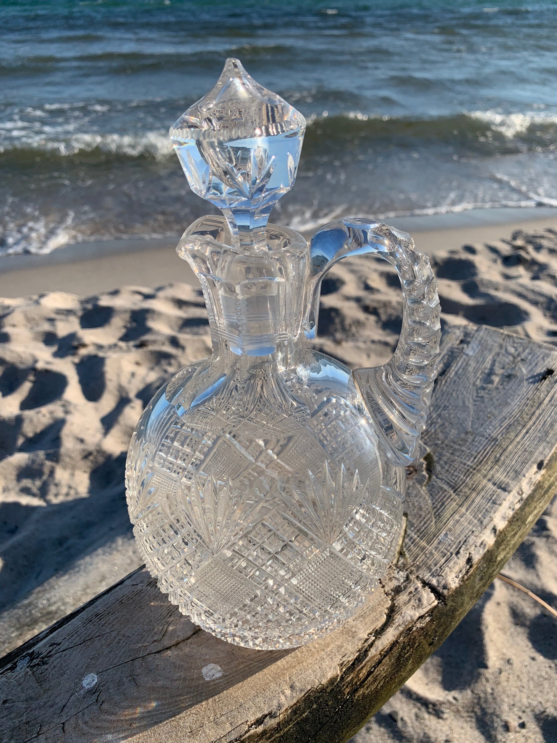 Vacker glaskaraff med glaspropp. När det hela ska se lite läckert ut och bordet ska dukas inbjudande.