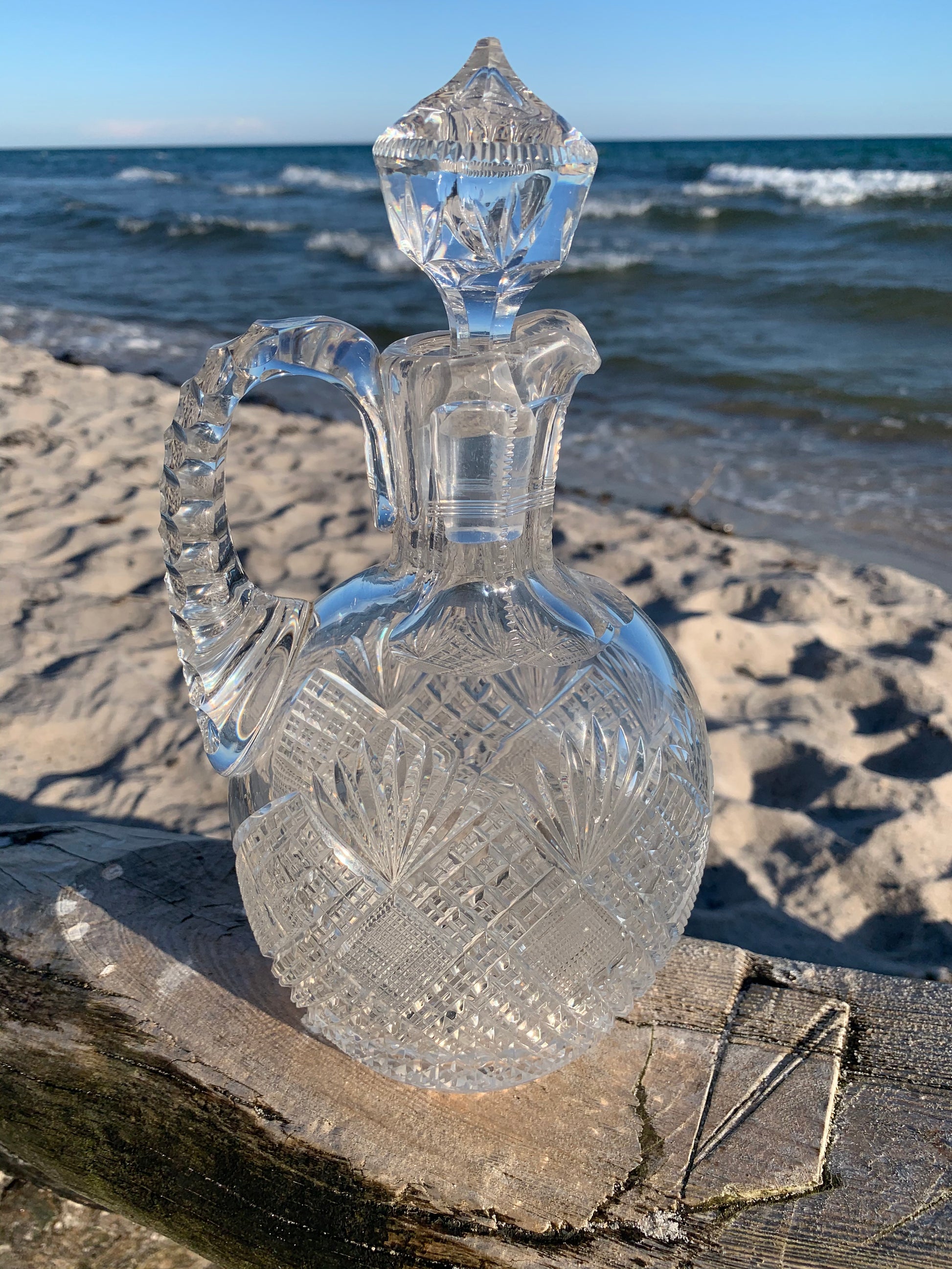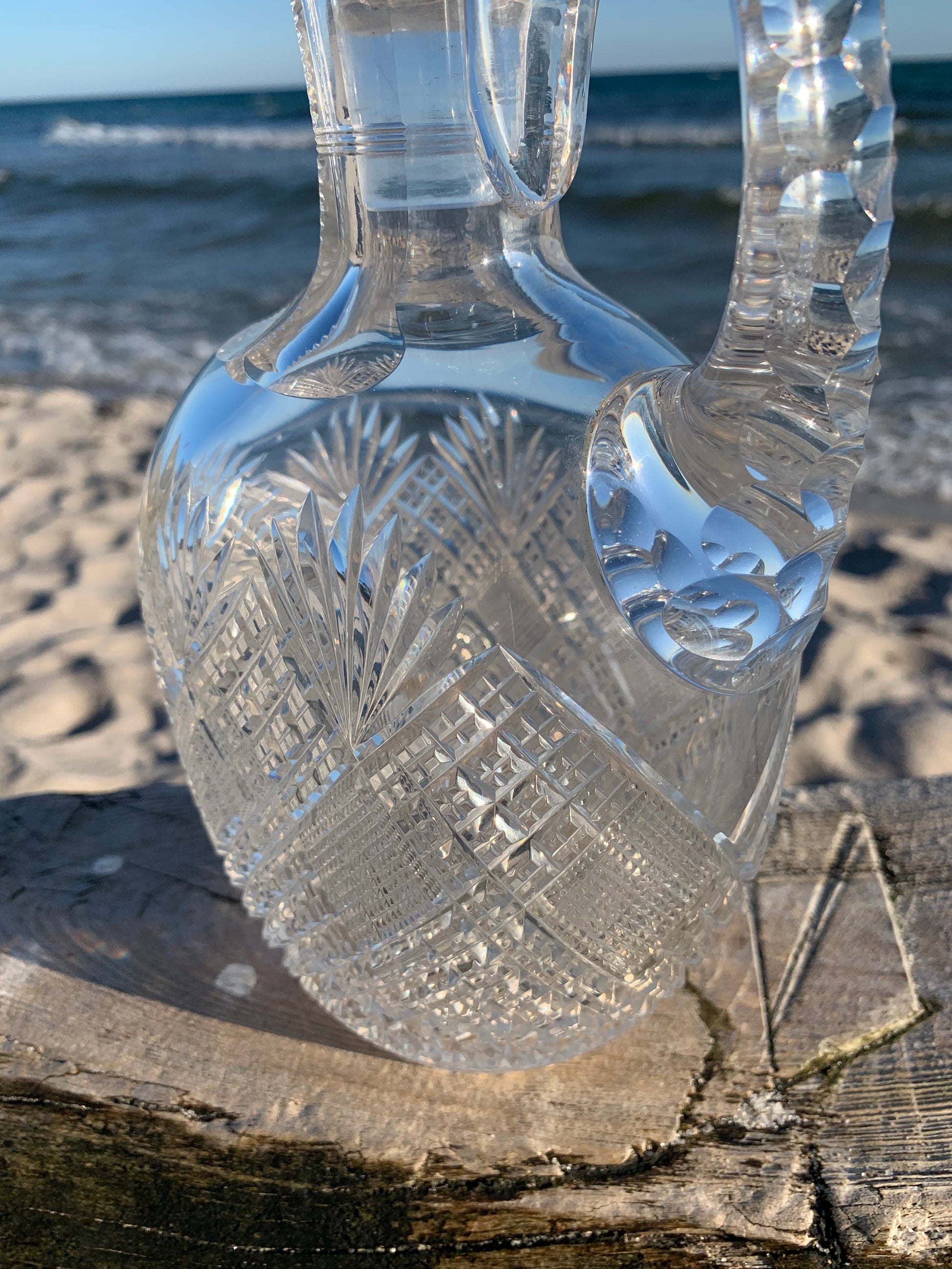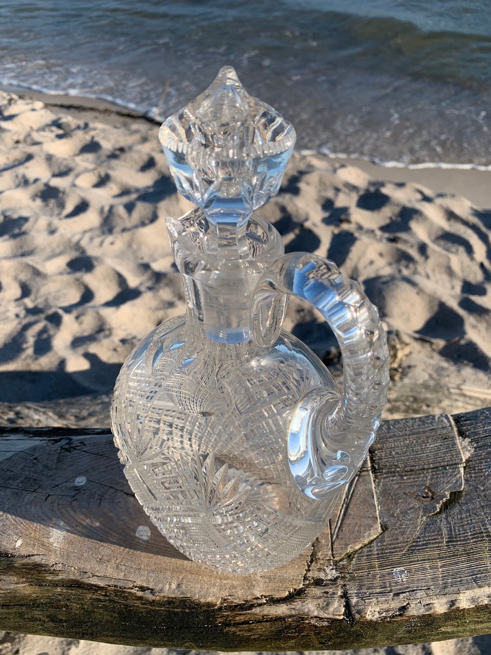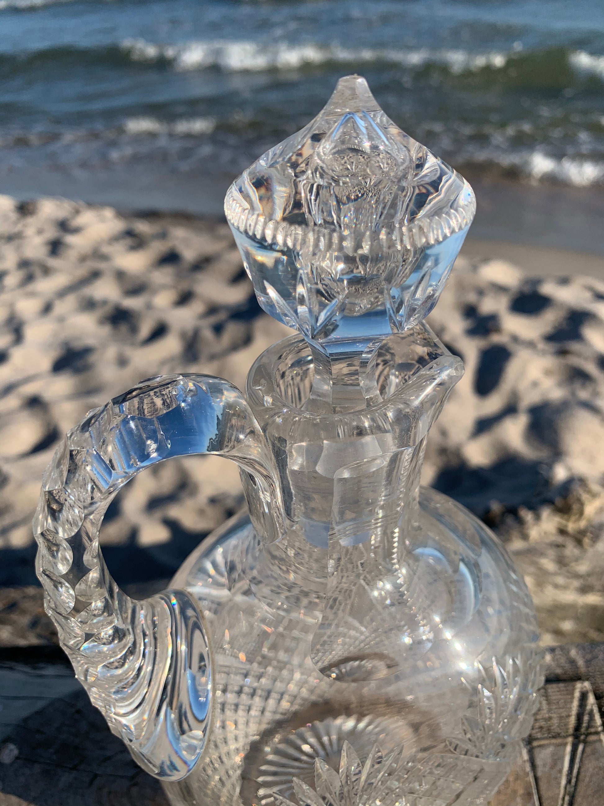 Vacker glaskaraff med glaspropp. När det hela ska se lite läckert ut och bordet ska dukas inbjudande.