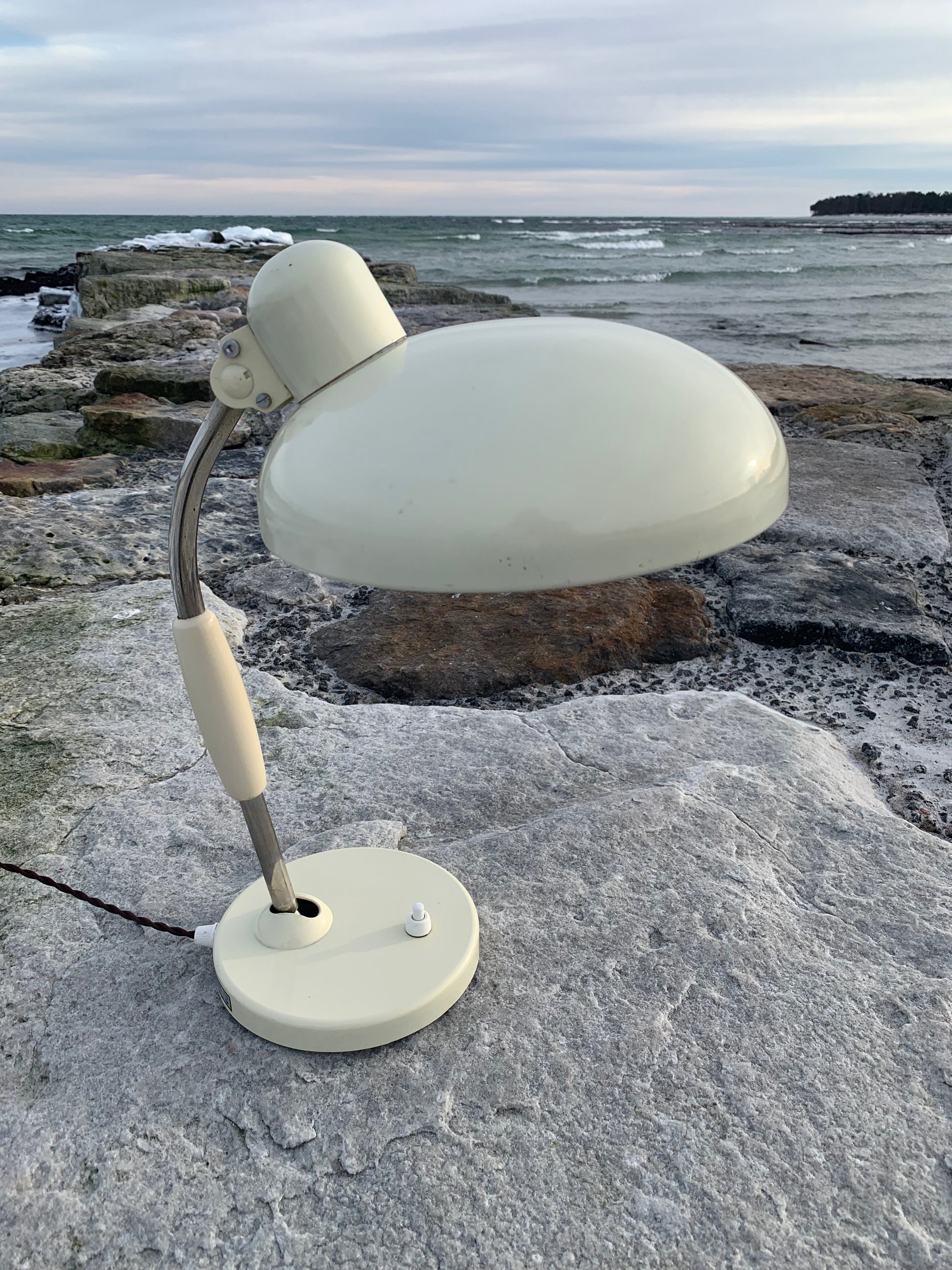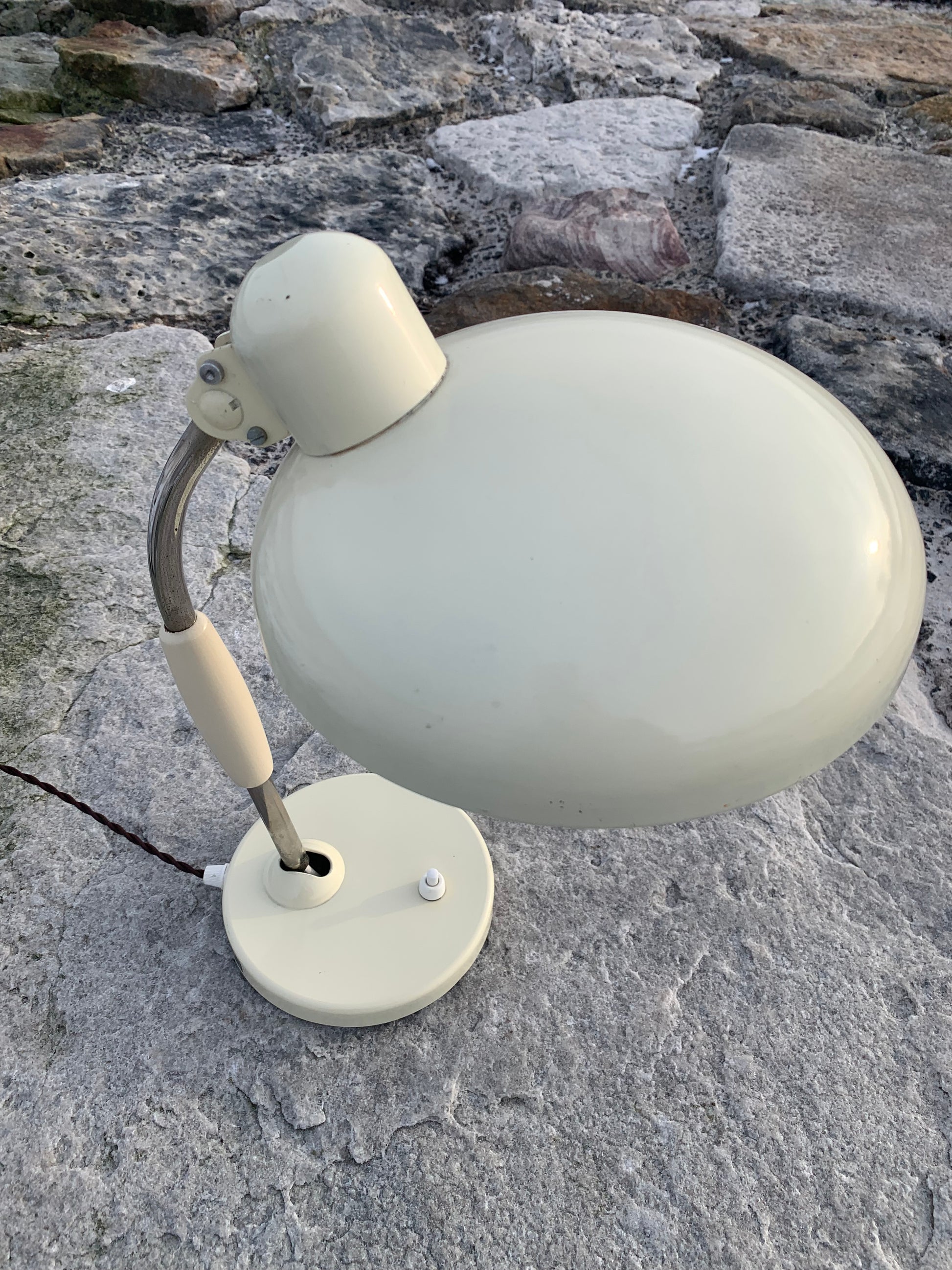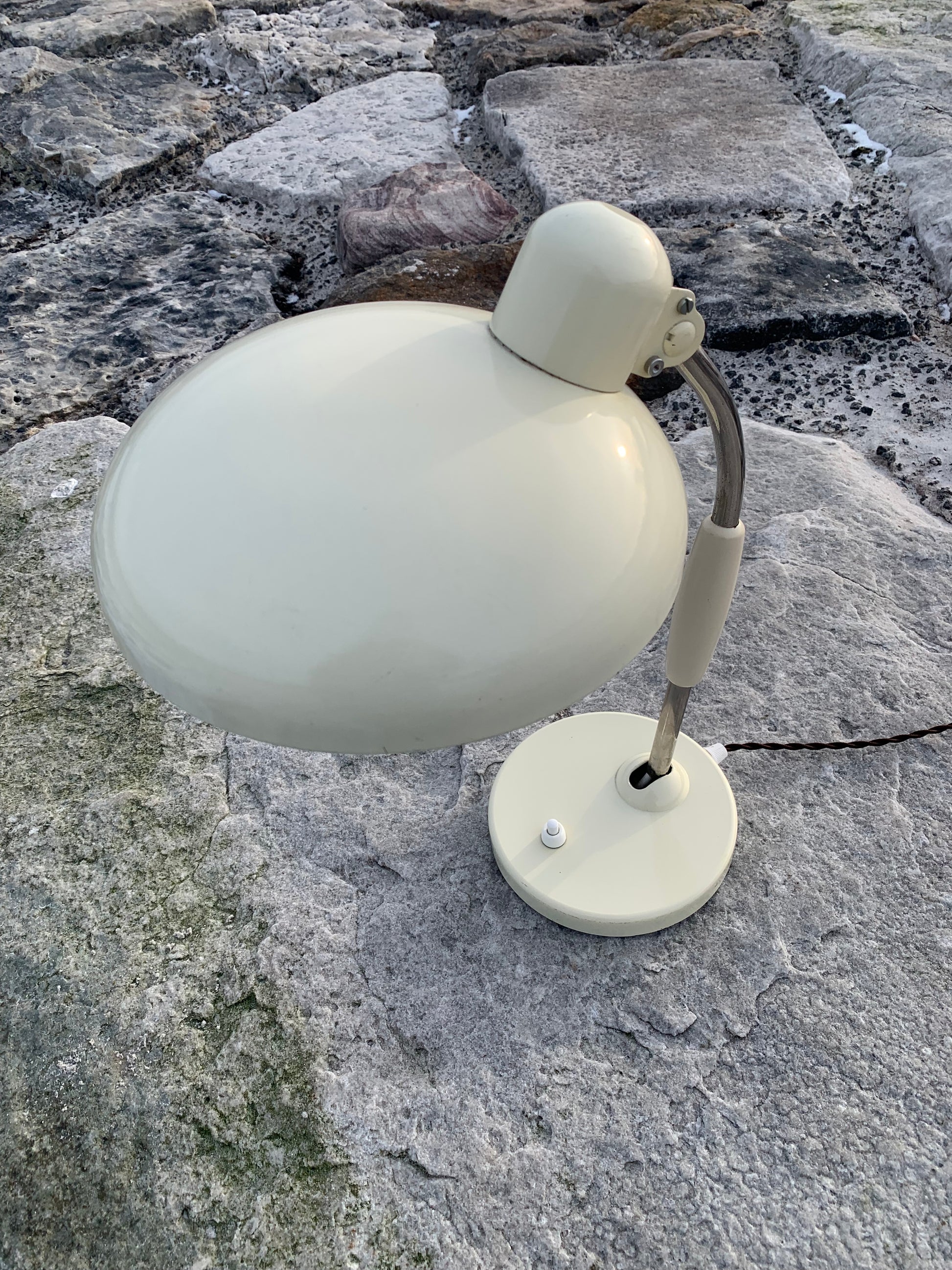 Vacker vintagelampa från österrikiska Koranda. Denna modell tillskrivs Christian Dell. Tidens tand har nött ner lacken något på lampan, som ser nykopplad ut och riktar sig till dem som älskar originalitet och ser det perfekta i det ofullkomliga.
