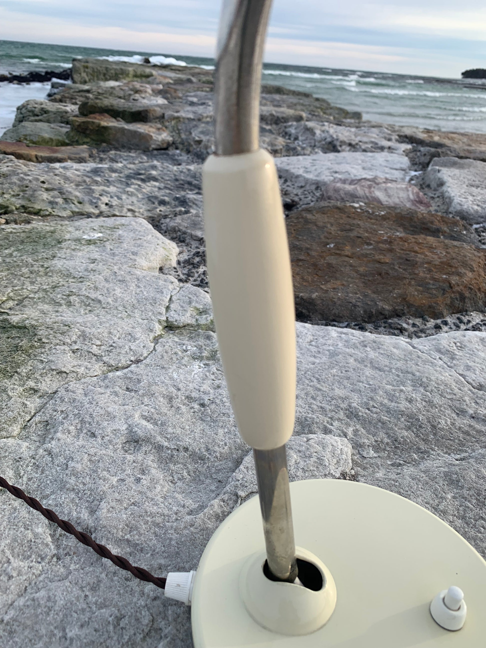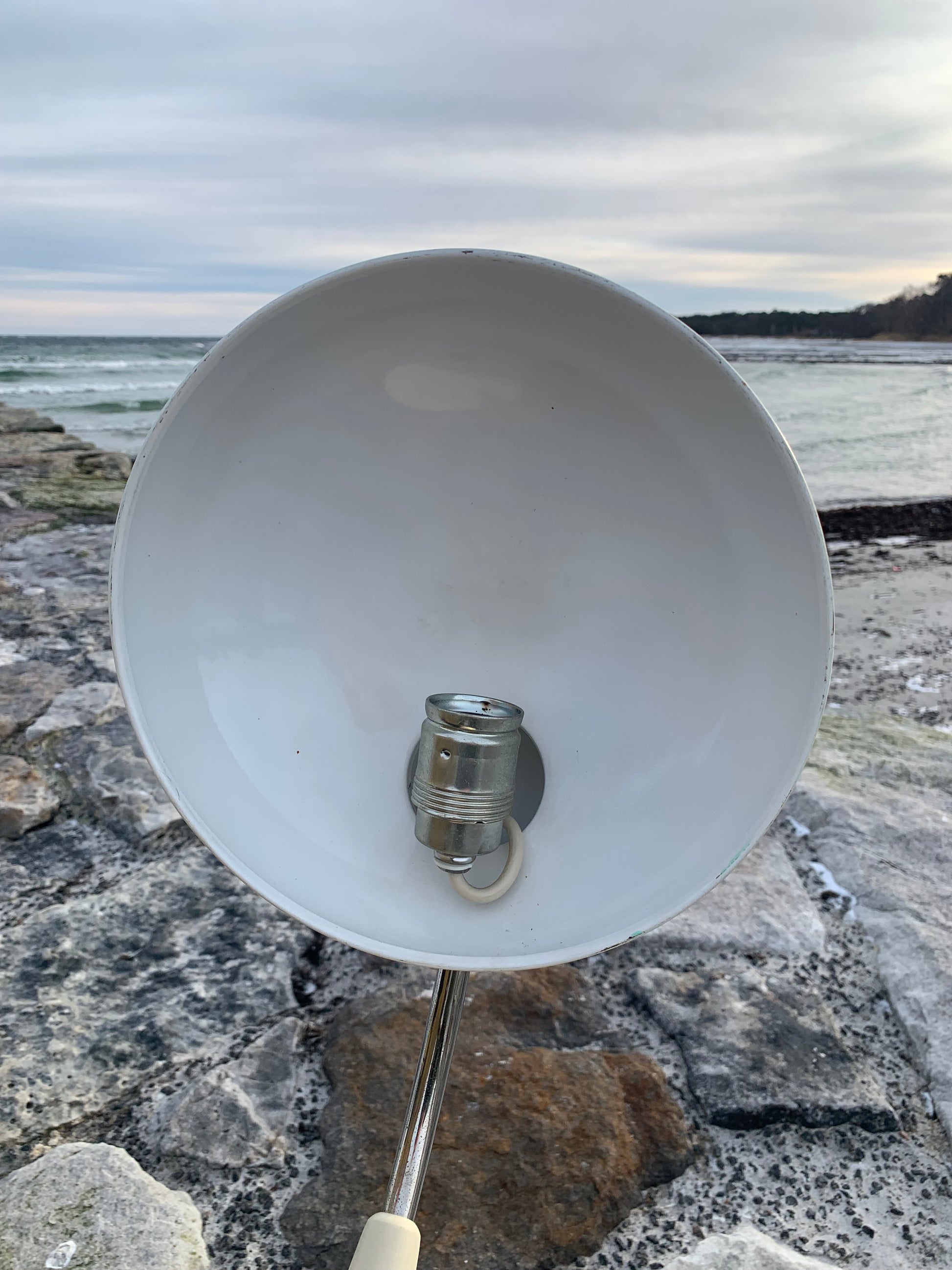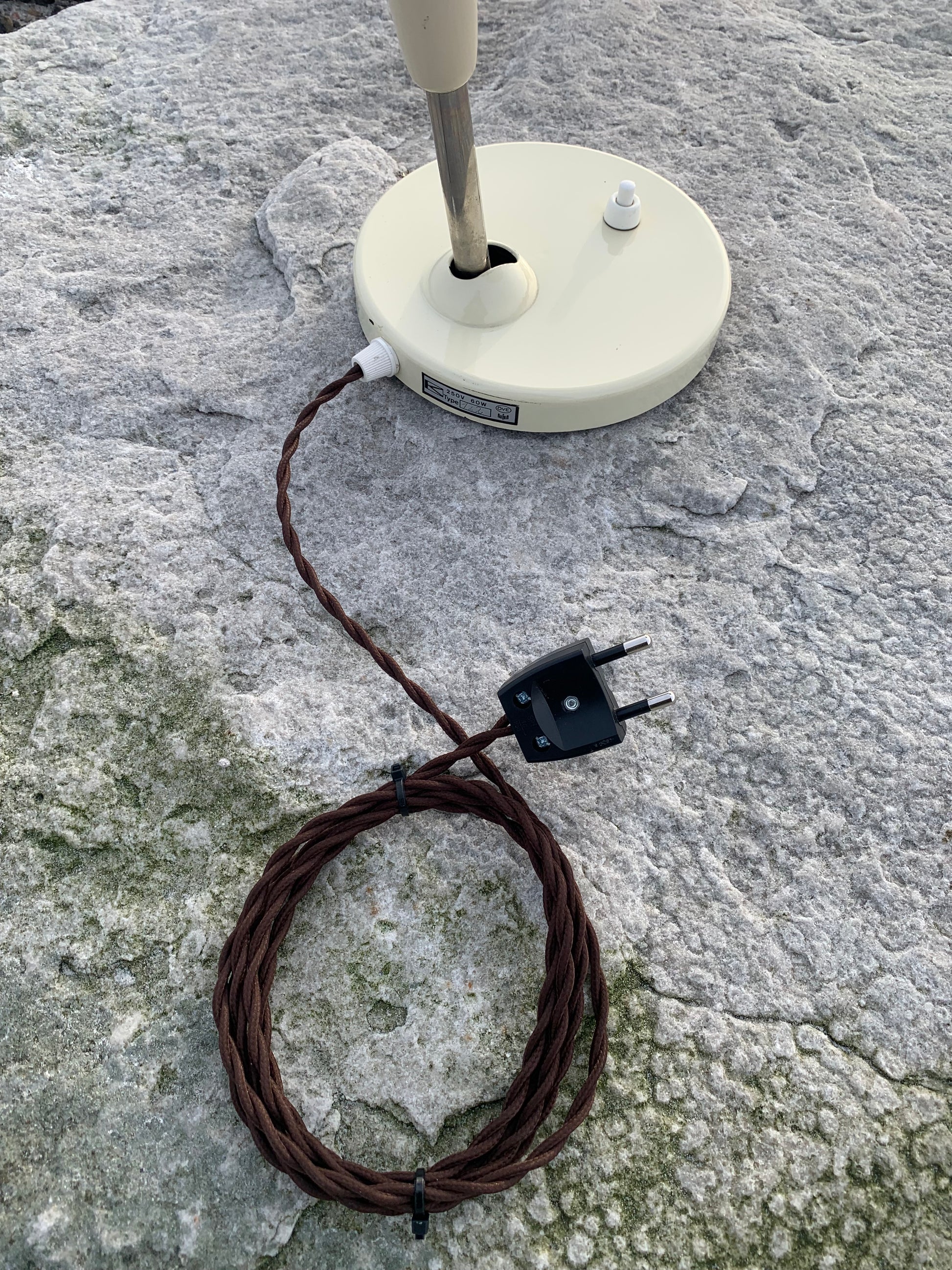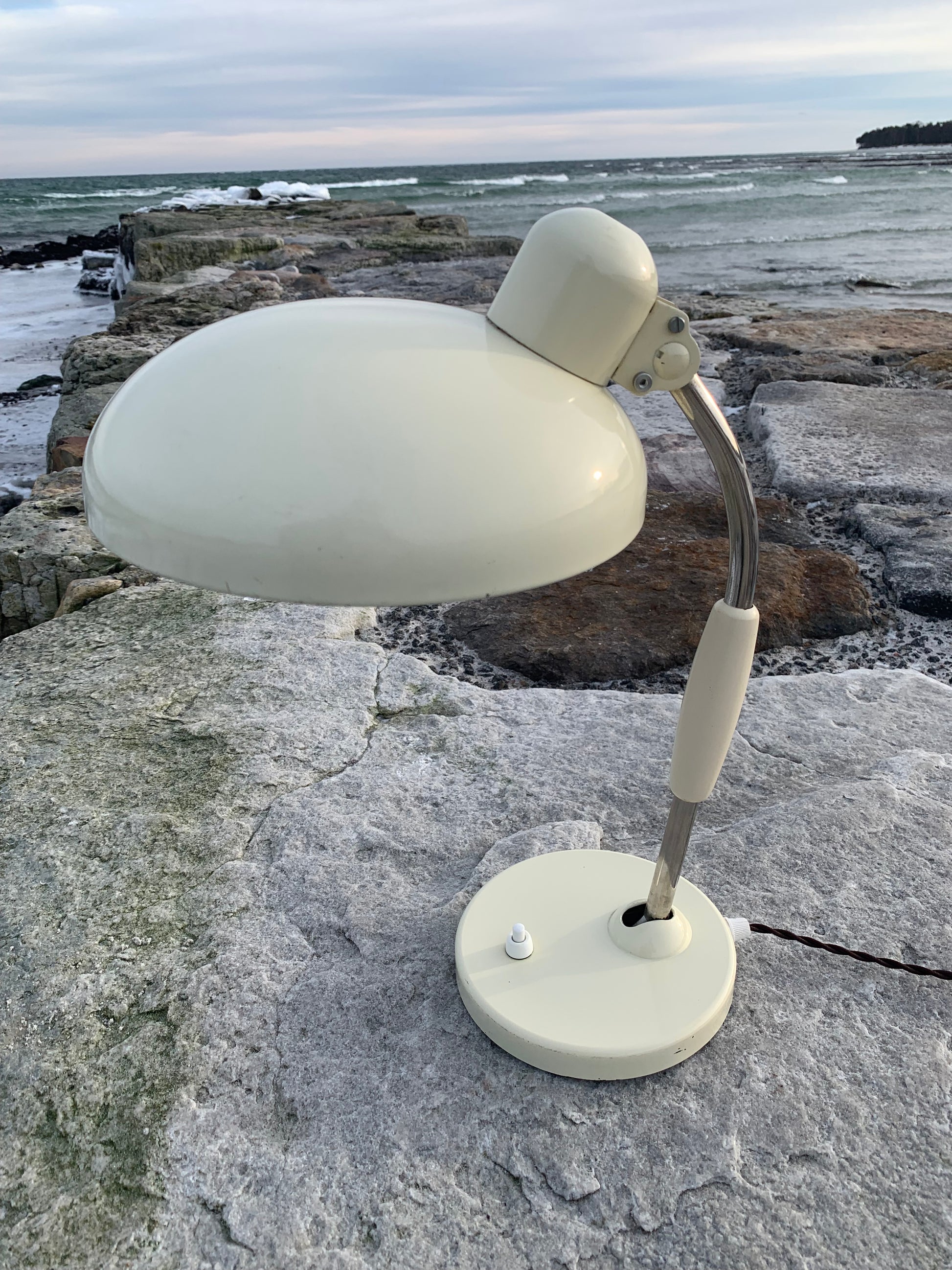 Vacker vintagelampa från österrikiska Koranda. Denna modell tillskrivs Christian Dell. Tidens tand har nött ner lacken något på lampan, som ser nykopplad ut och riktar sig till dem som älskar originalitet och ser det perfekta i det ofullkomliga.