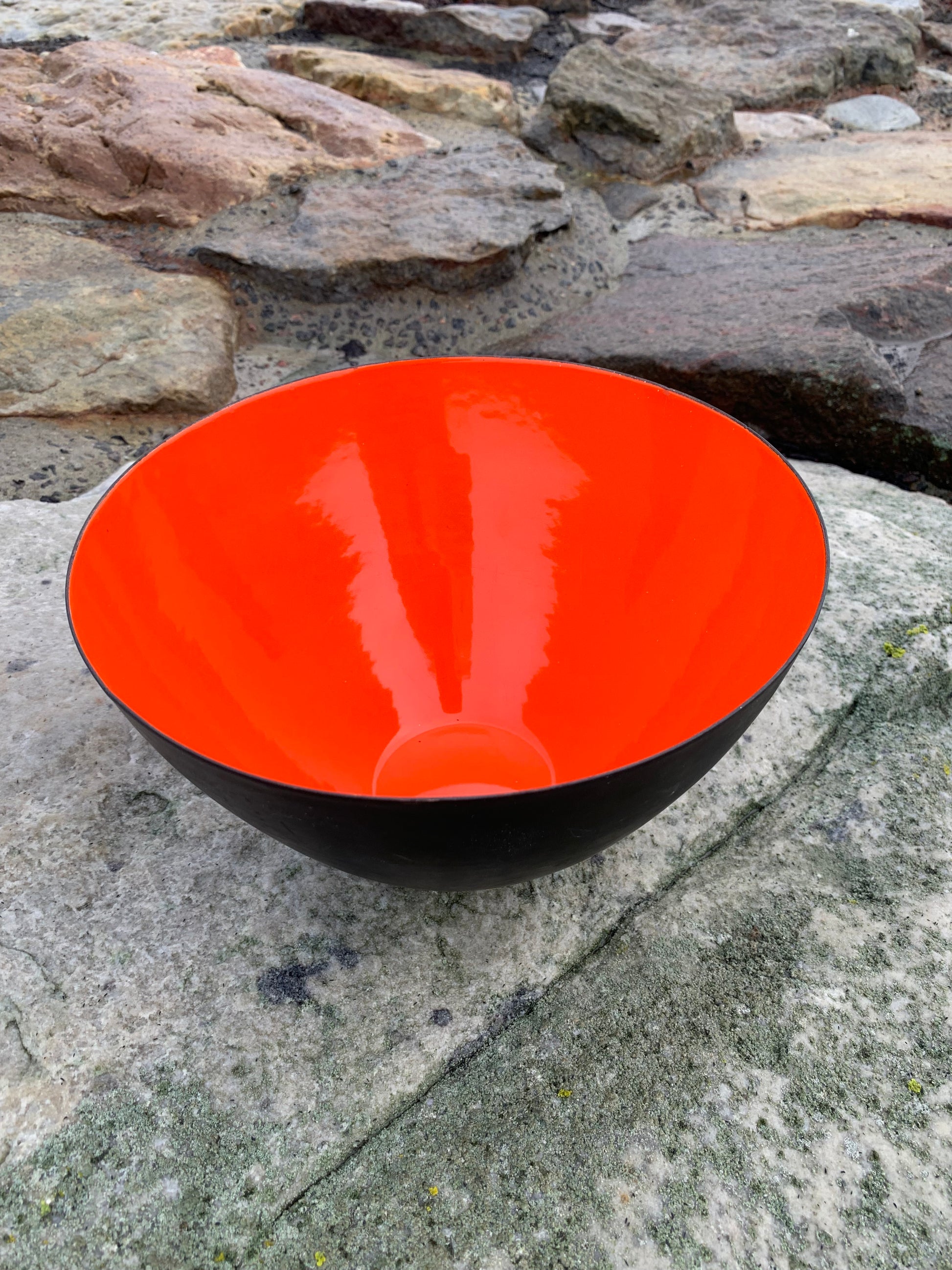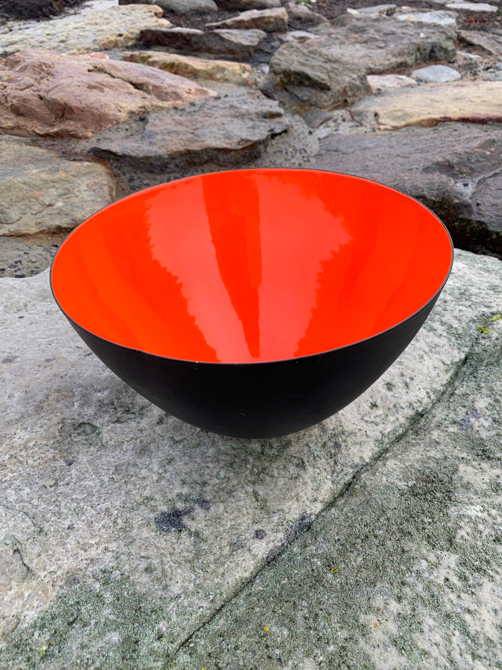 Charmig gammal Krenit-skål av Herbert Krenchel. Skålen har vissa åldersrelaterade tecken på slitage. Sammantaget är den dock i riktigt fint vintageskick.