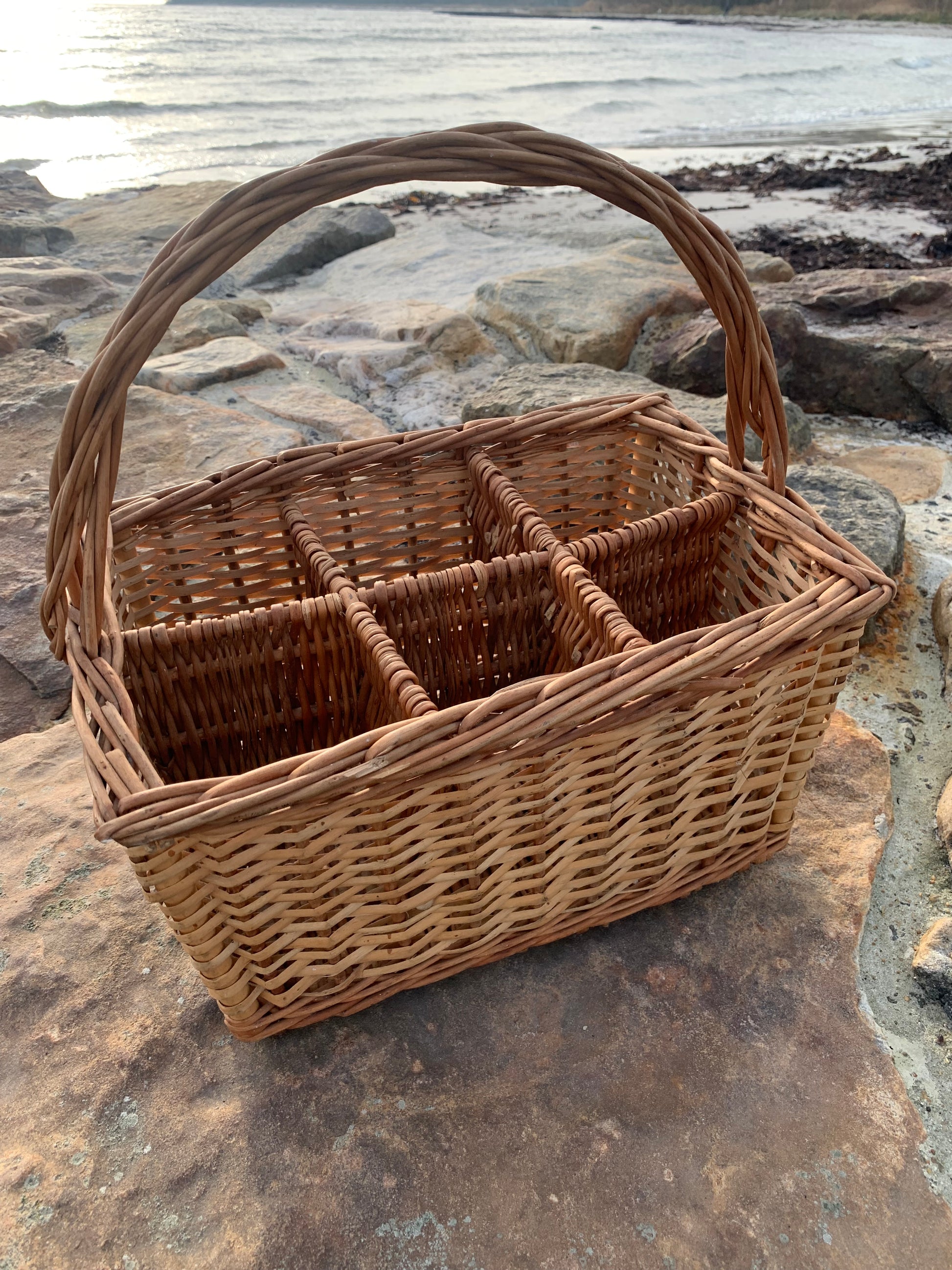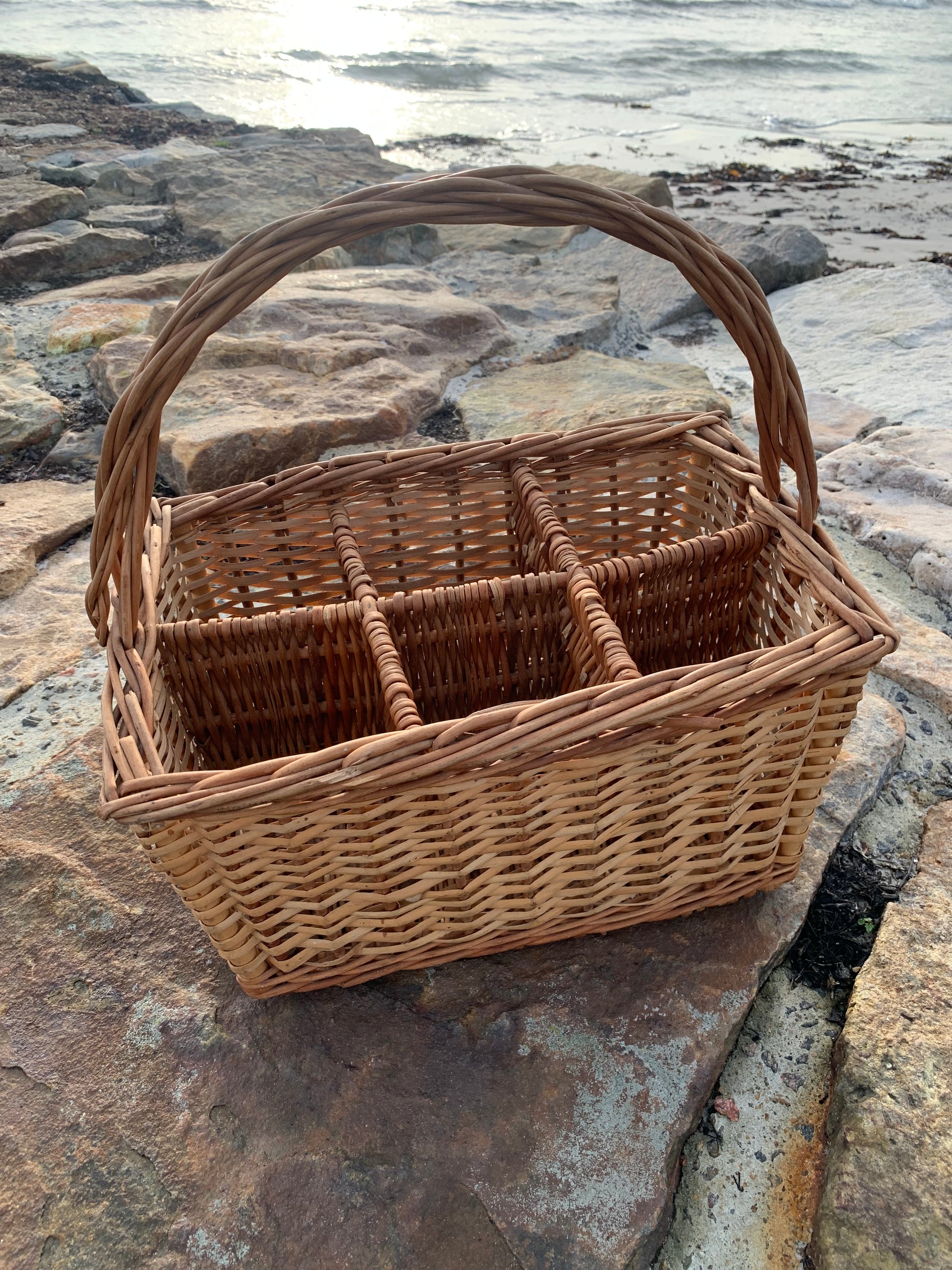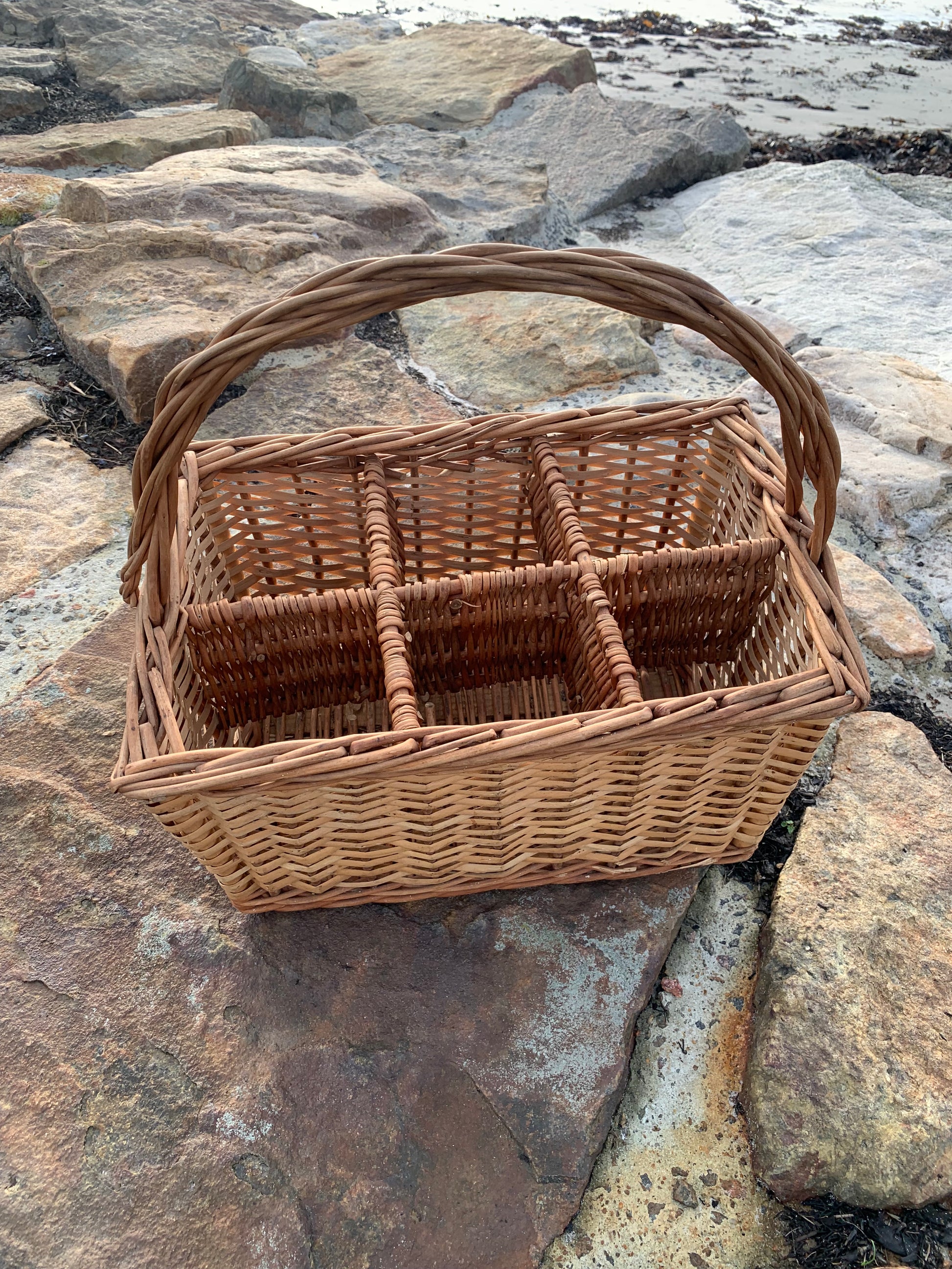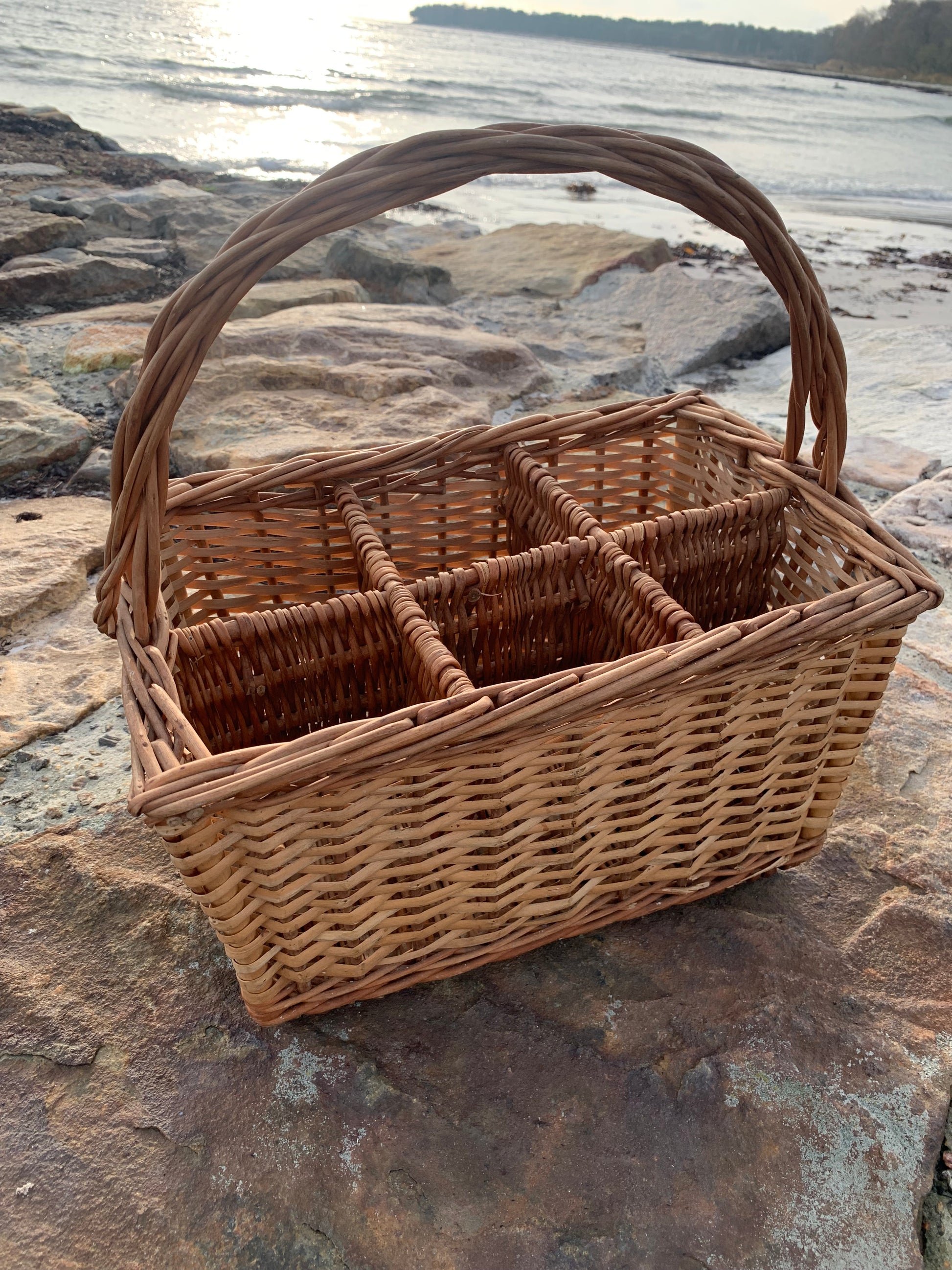 Fin korg med fack och handtag.