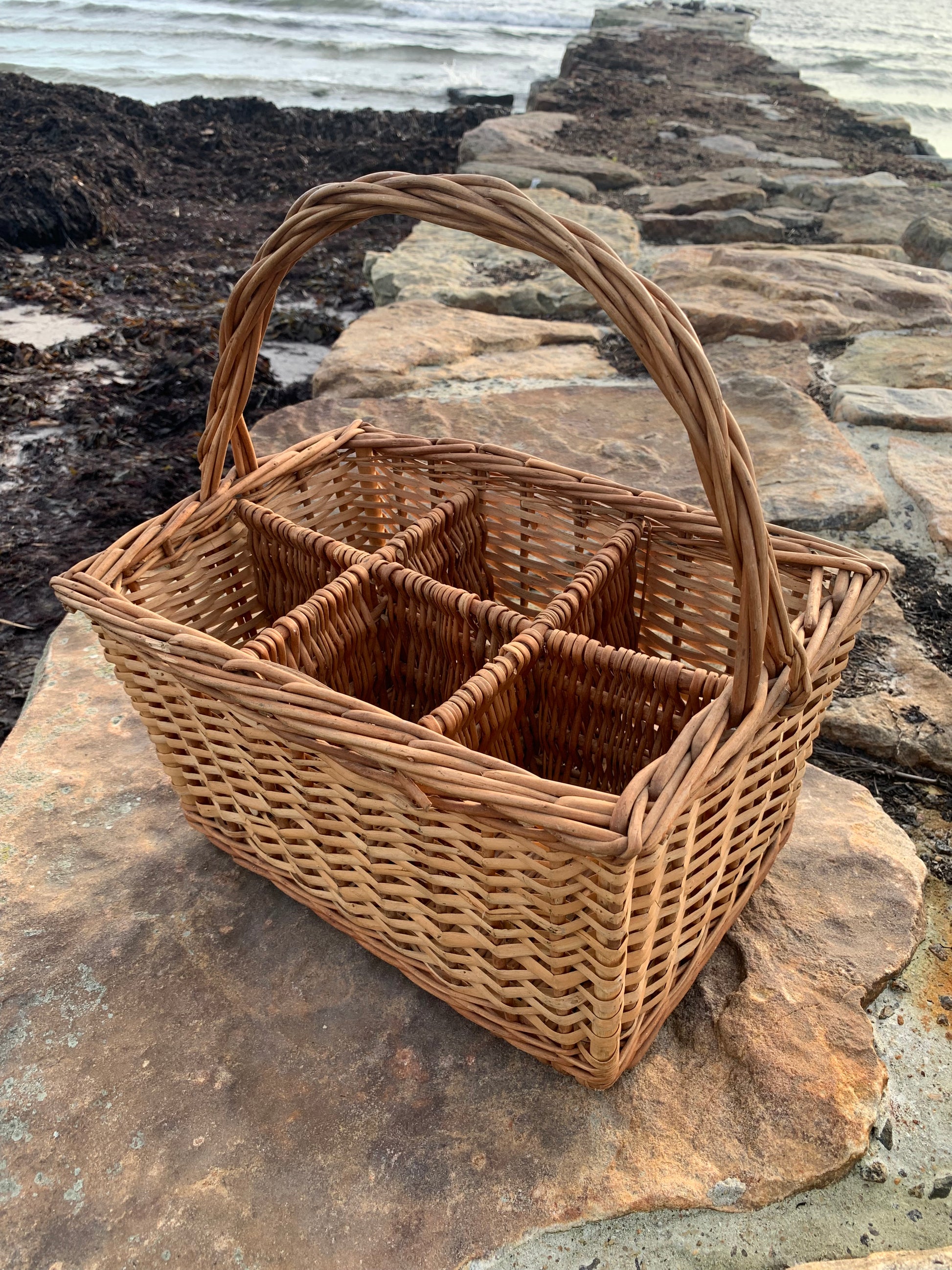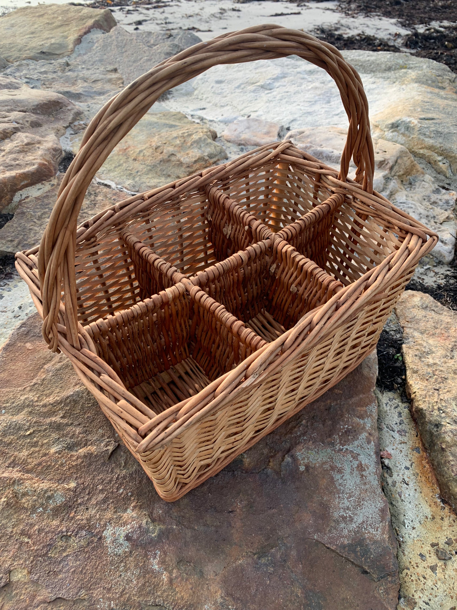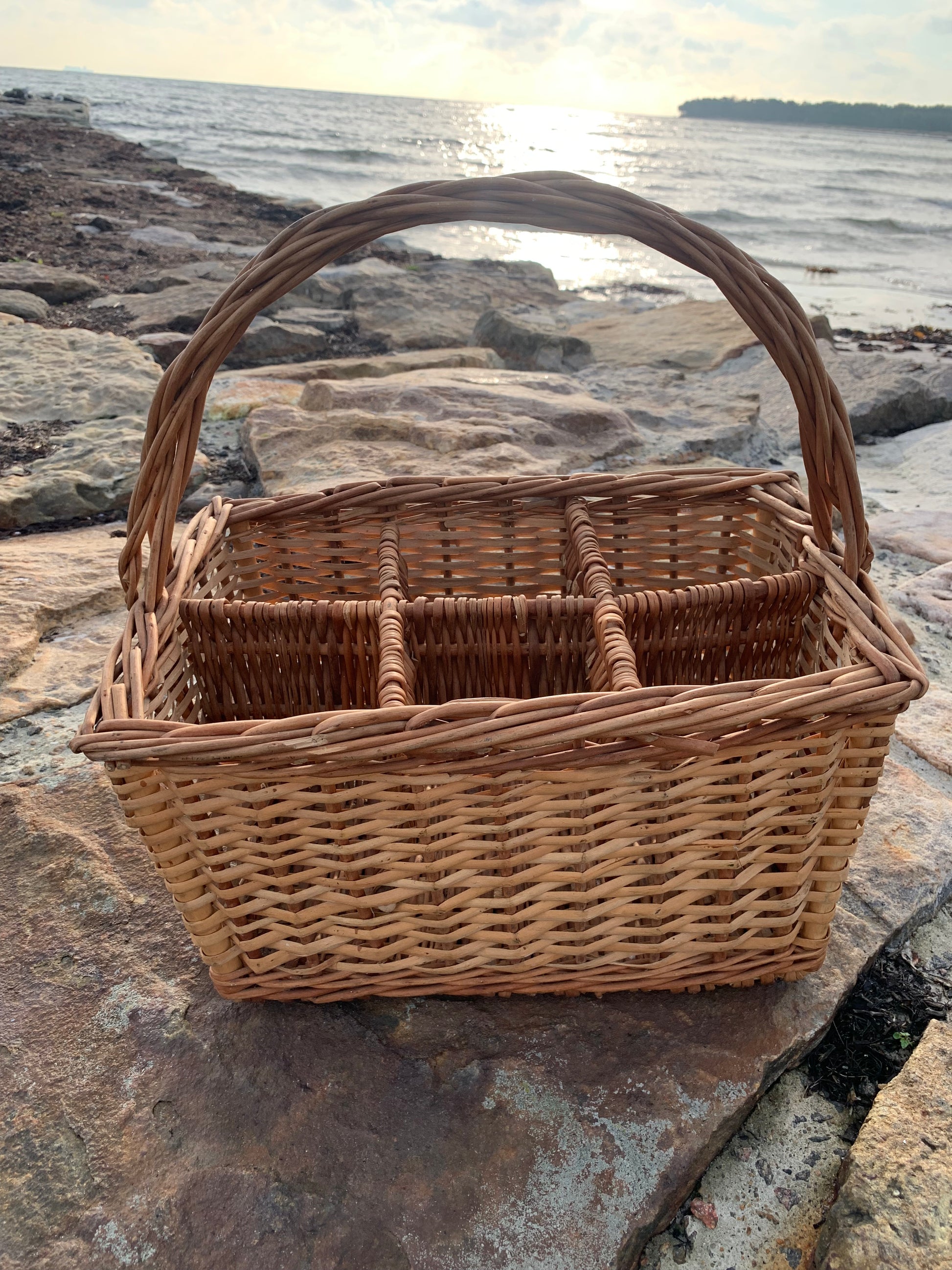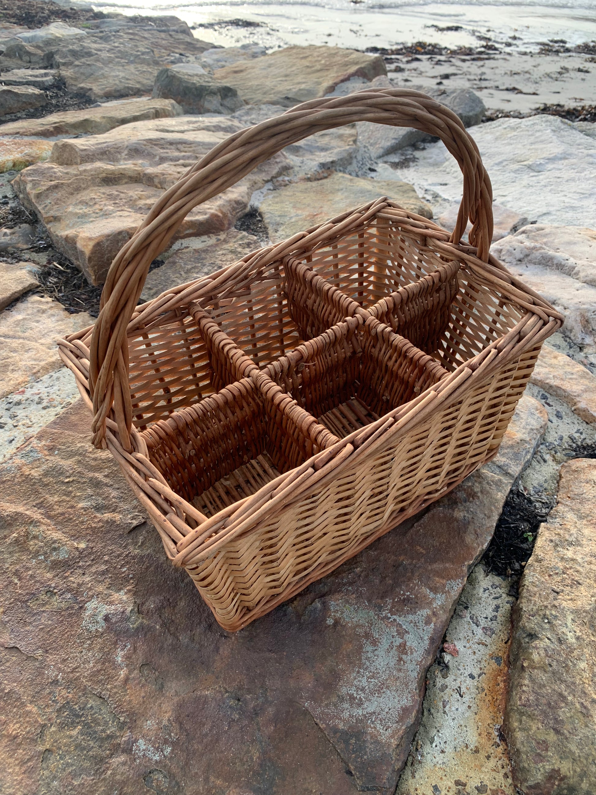 Fin korg med fack och handtag.