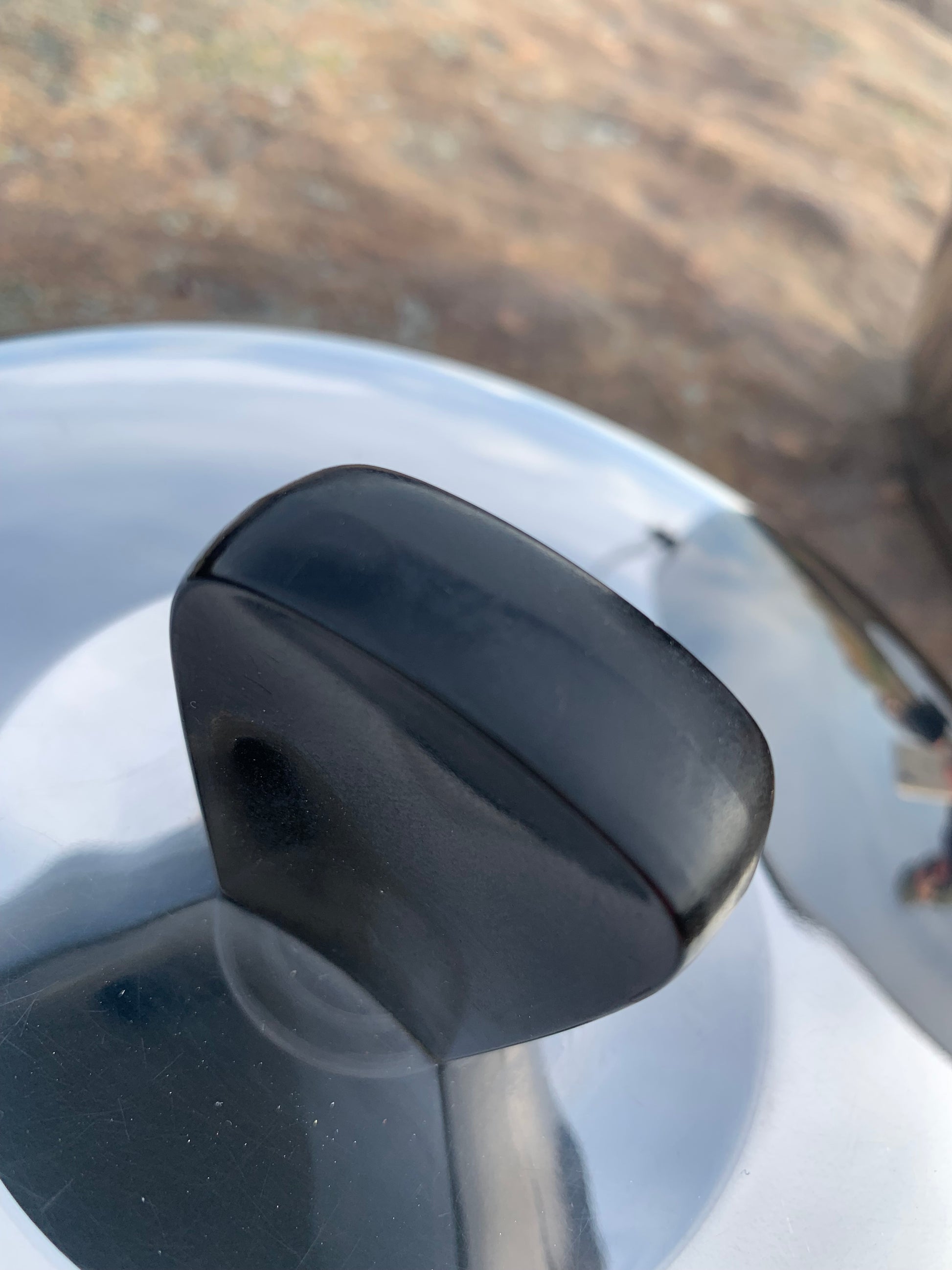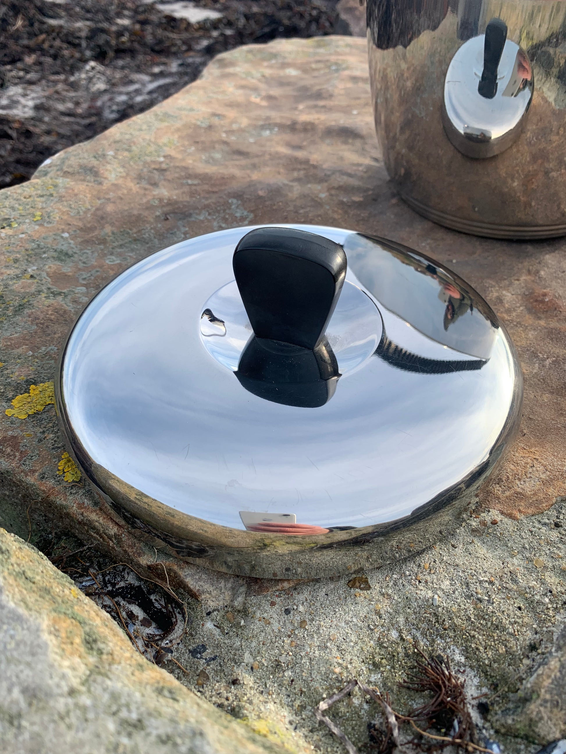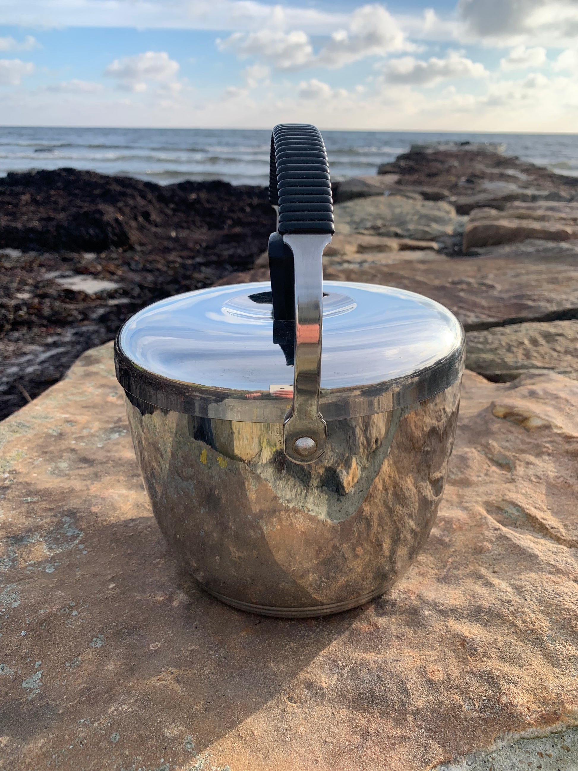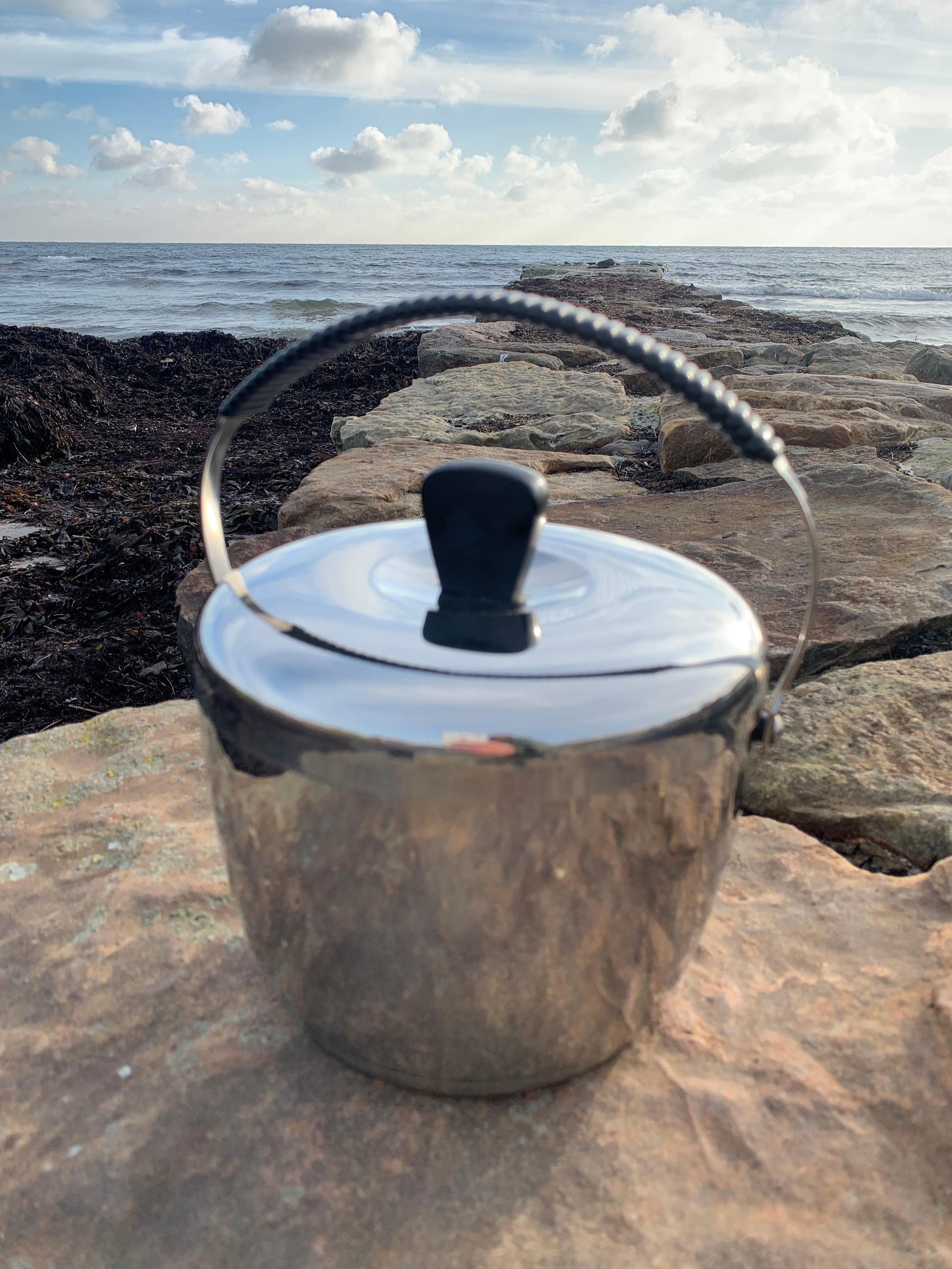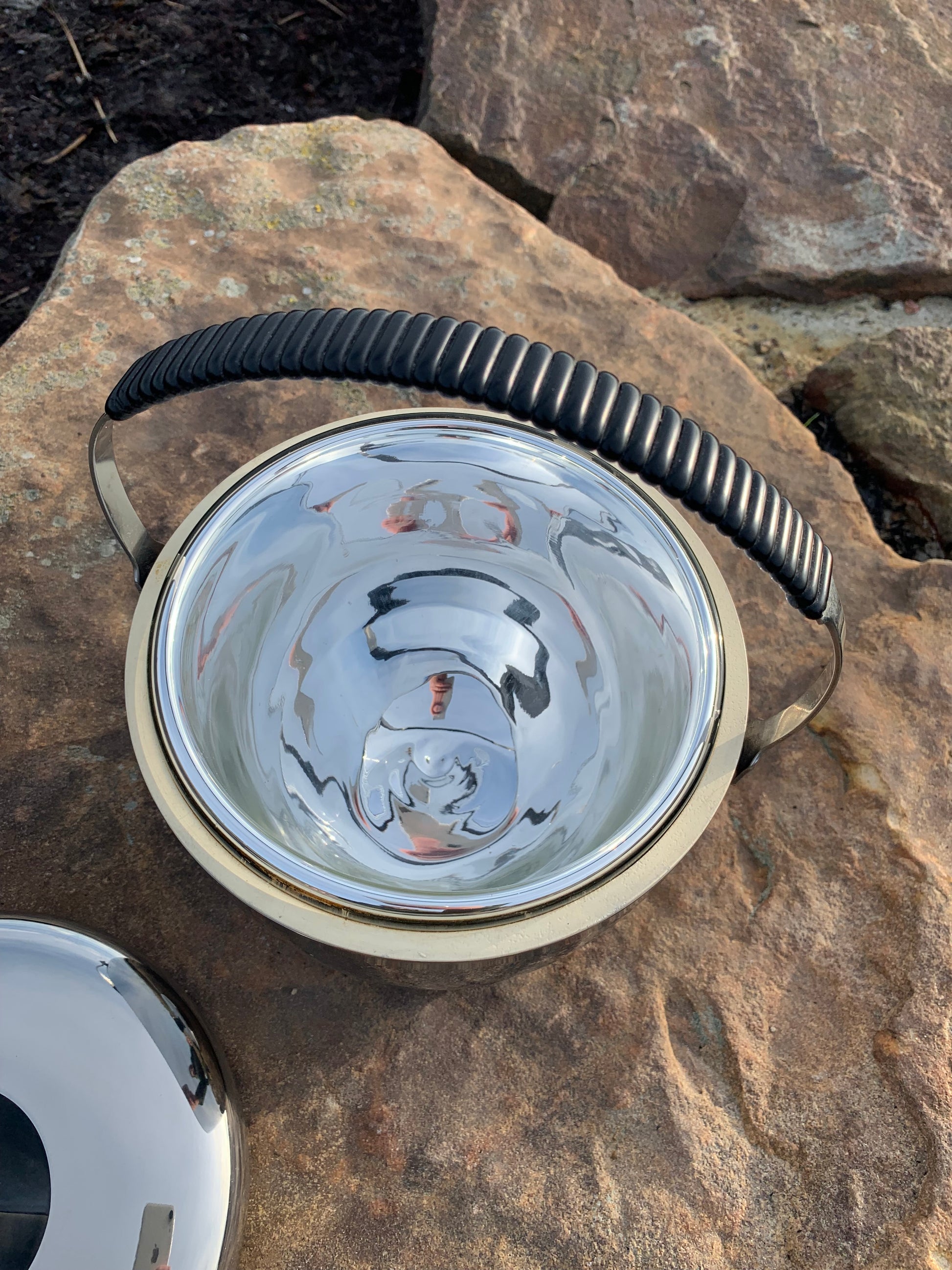 Riktigt fin ishink från Nils Johan - designad av Adam Thylstrup. Ishinken har några fina detaljer i form av en fläta på handtaget och ett fint litet handtag (troligen i bakelit). Den är från 1950-talet och har vissa åldersrelaterade tecken på slitage, men är överlag i gott skick med tanke på sin ålder. Vi har fått höra av en kund att den är bra på att hålla iskall väldigt länge.