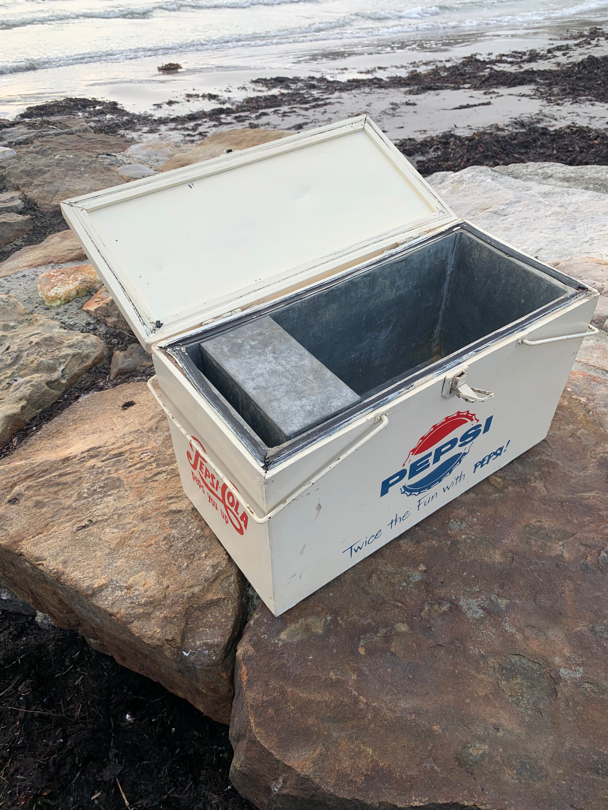 Fin gammal Pepsi-kyl med massor av charm och fin patina. Mannen vi köpte den av sa att den var från 1960-talet.