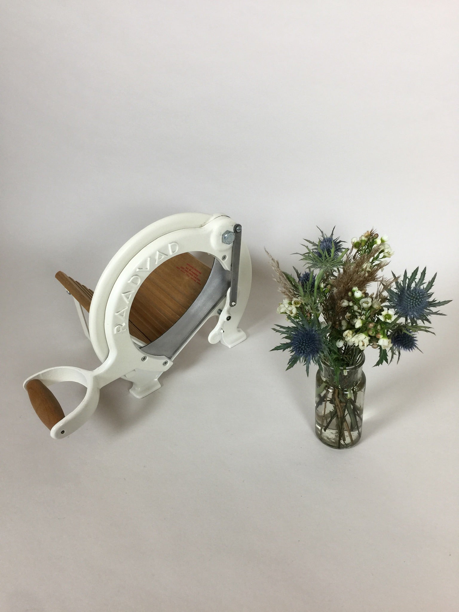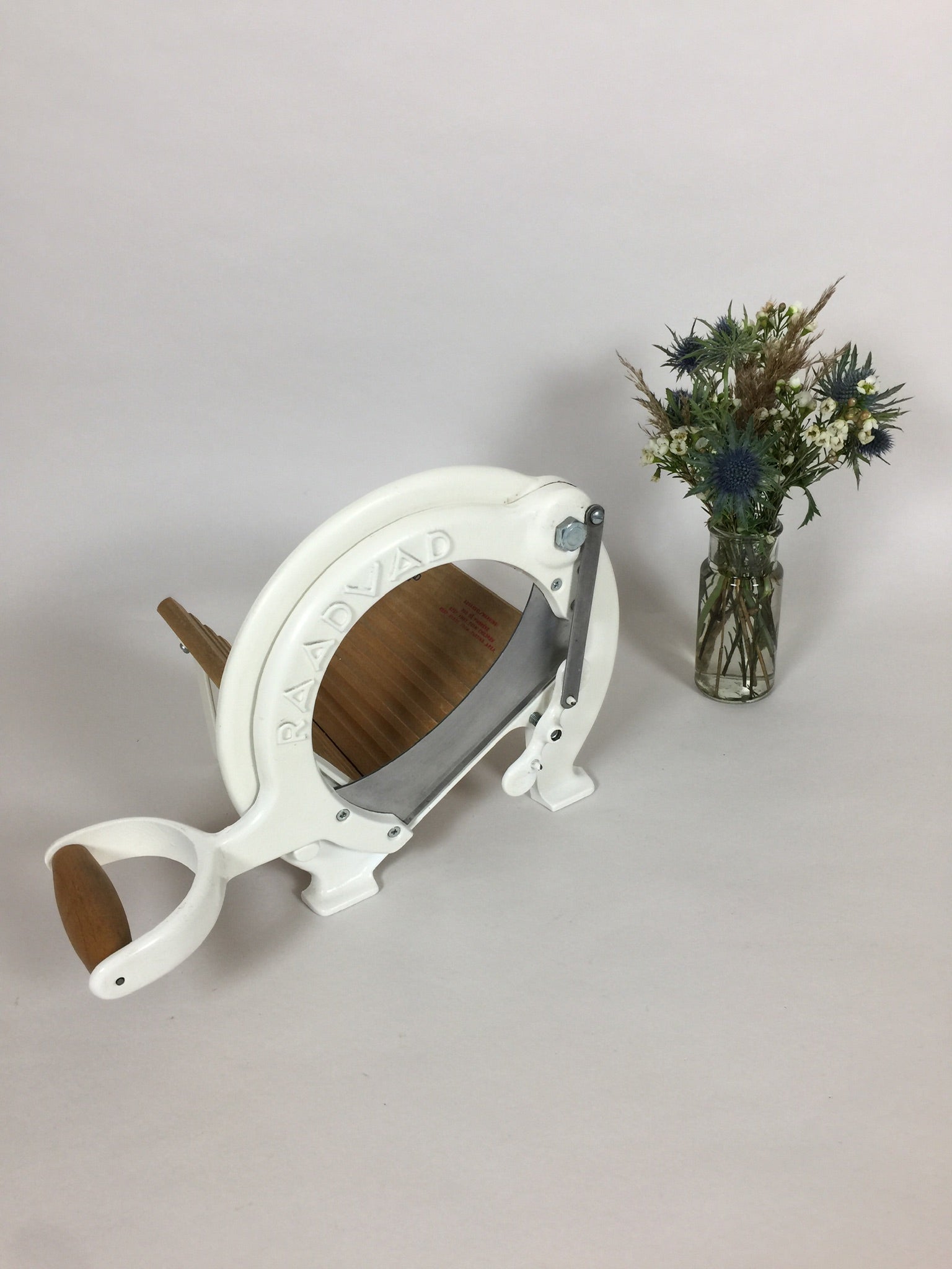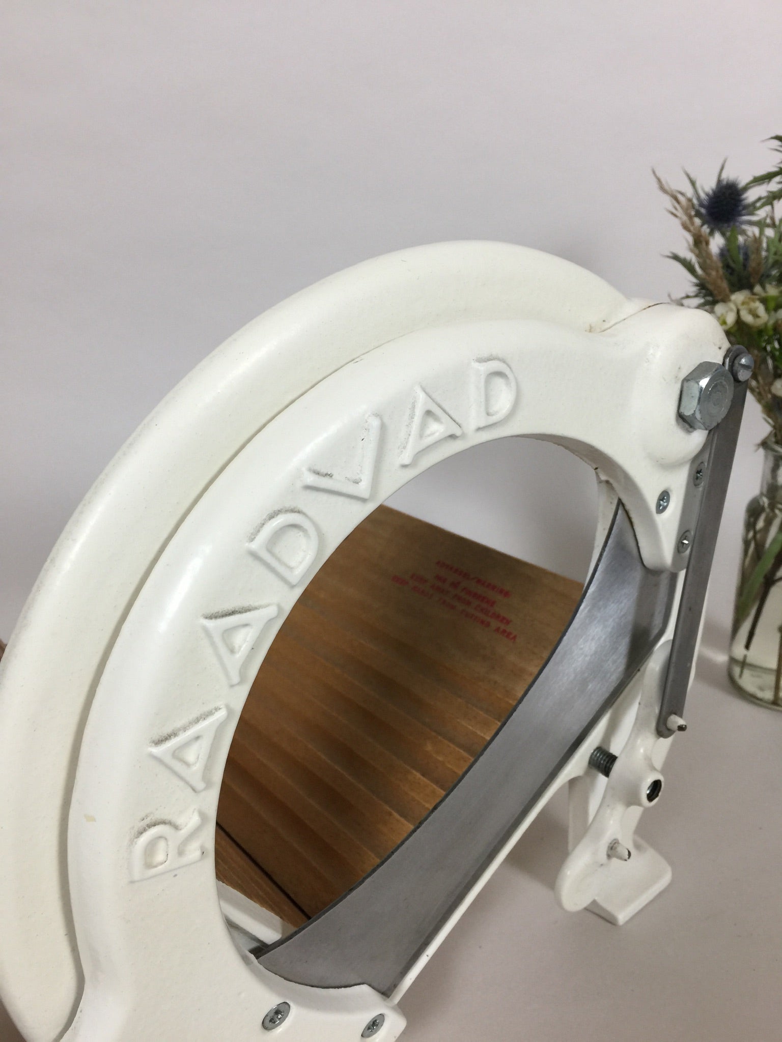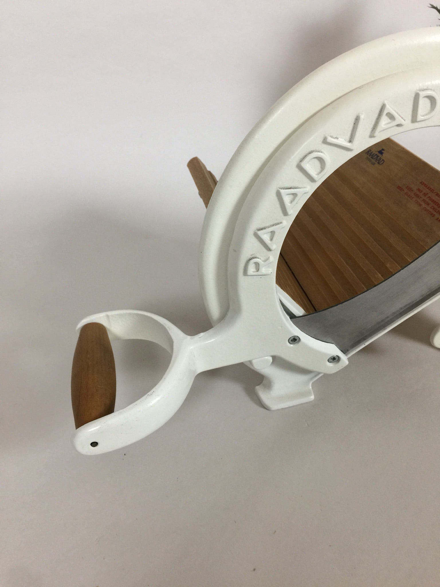 Historik: Runt 1890 börjar Raadvad tillverka de första brödmaskinerna med det nya engelska rostfria stålet. Brödmaskinen blev en klassiker. Det är inte många danska hem som inte har haft en brödmaskin. Dessutom har denna brödskärare blivit känd från Matador, där vi alla nästan kan föreställa oss hur Laura skär bröd i köket.