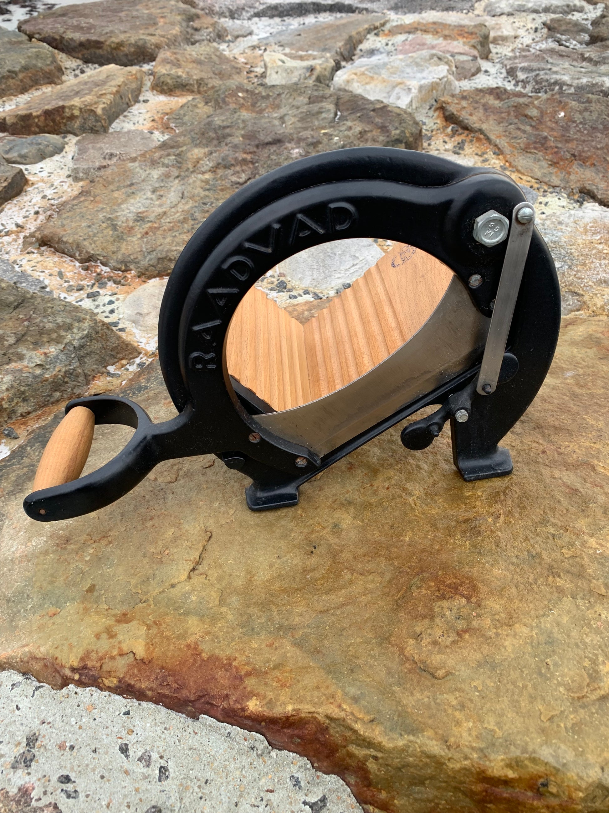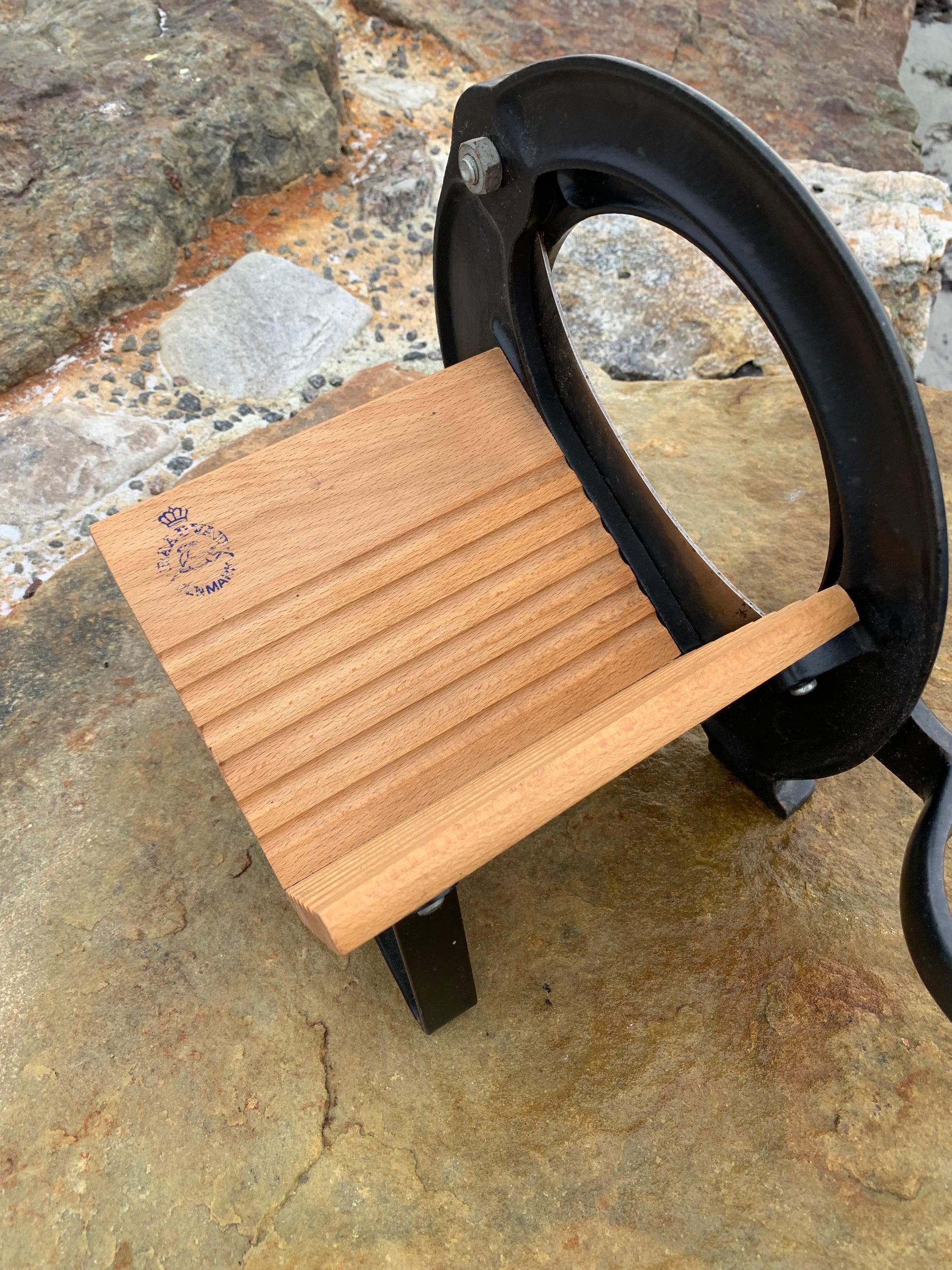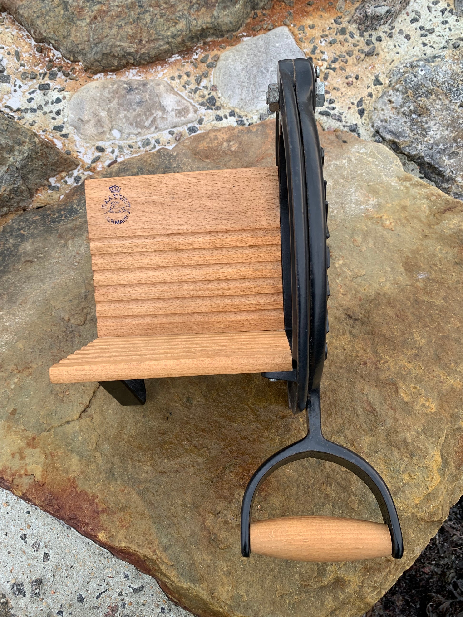 Den vackra och klassiska brödskäraren från Raadvad har tecken på slitage, men är överlag i gott vintageskick. Mysig och robust i köket.