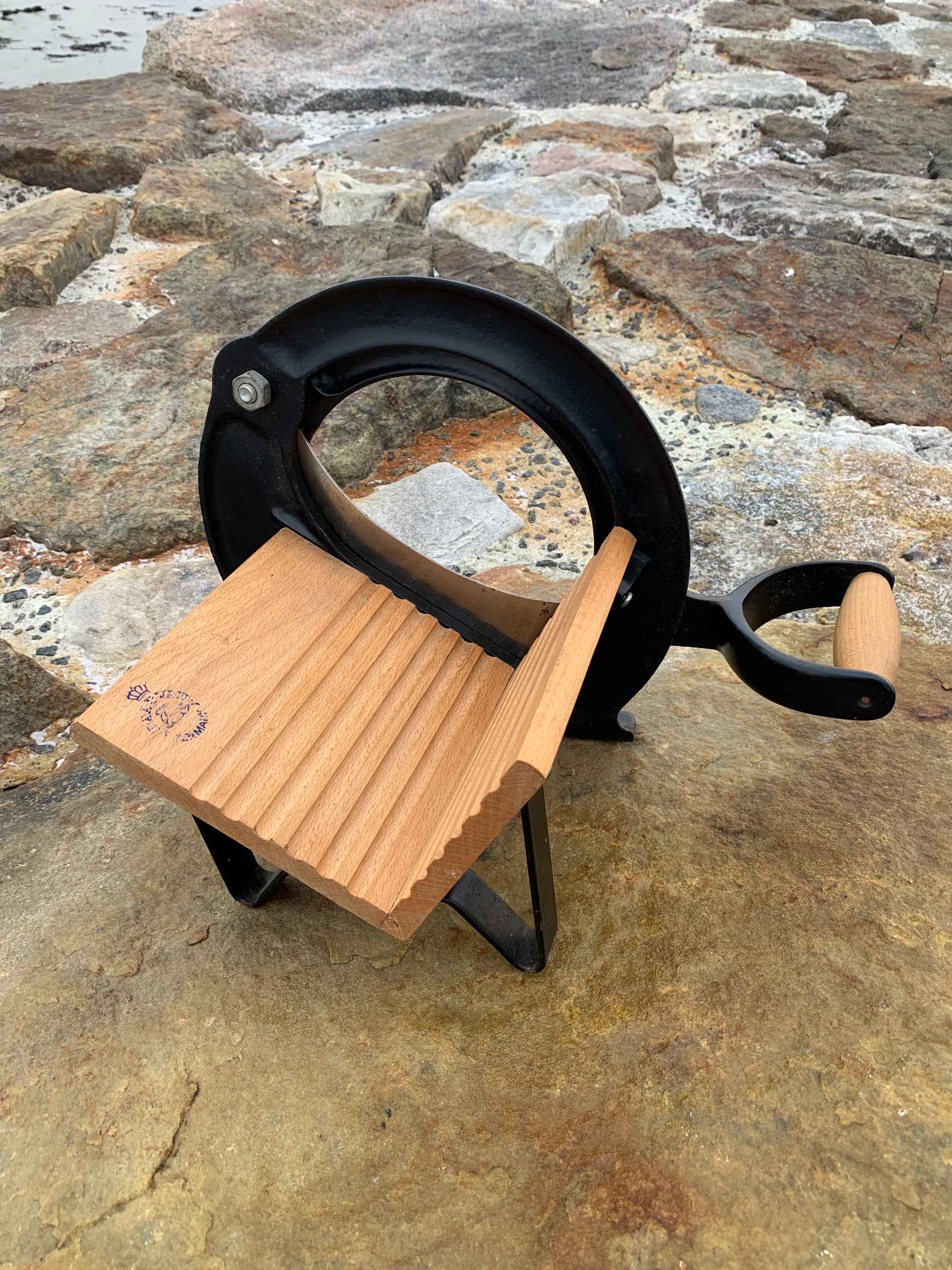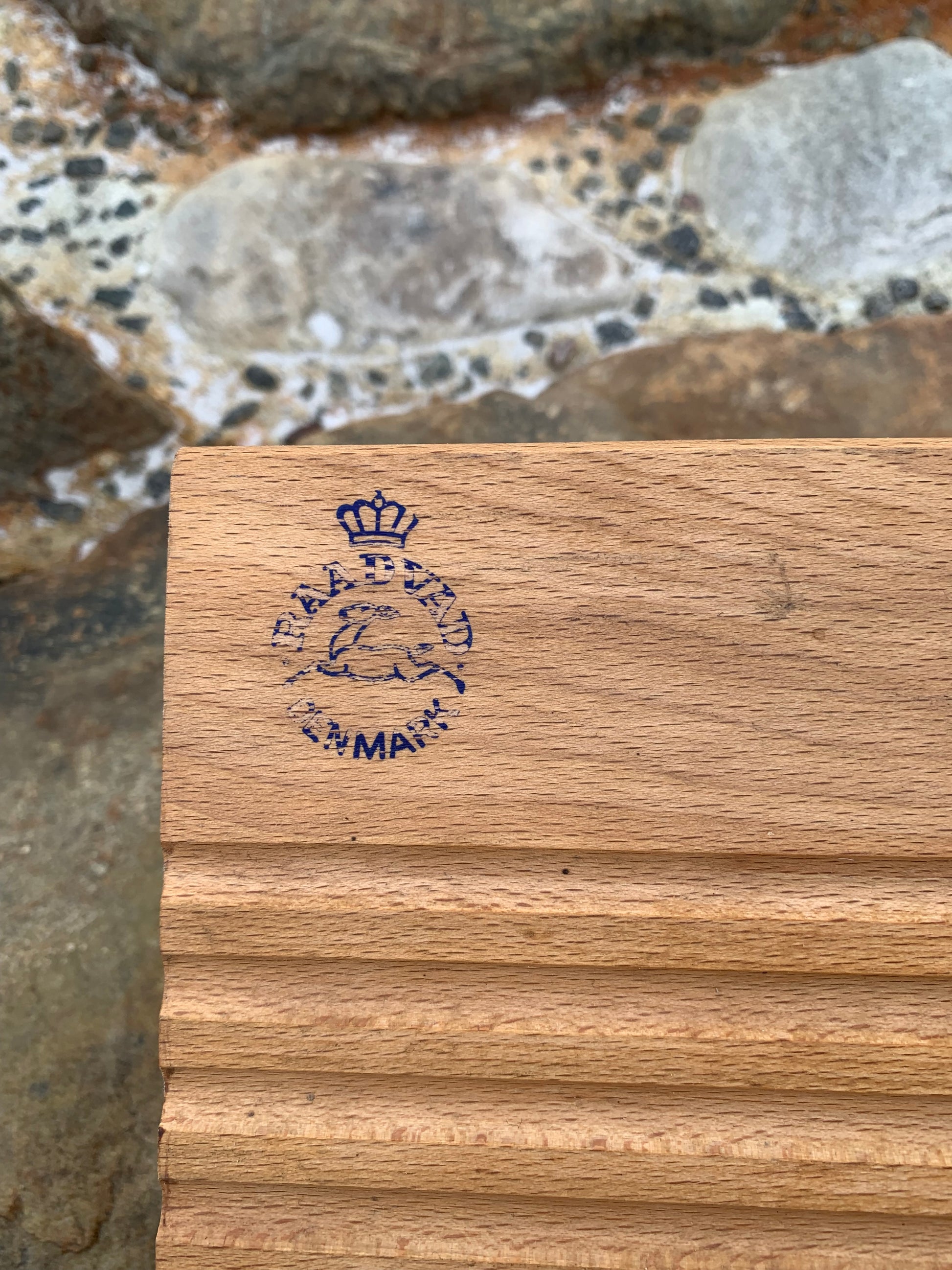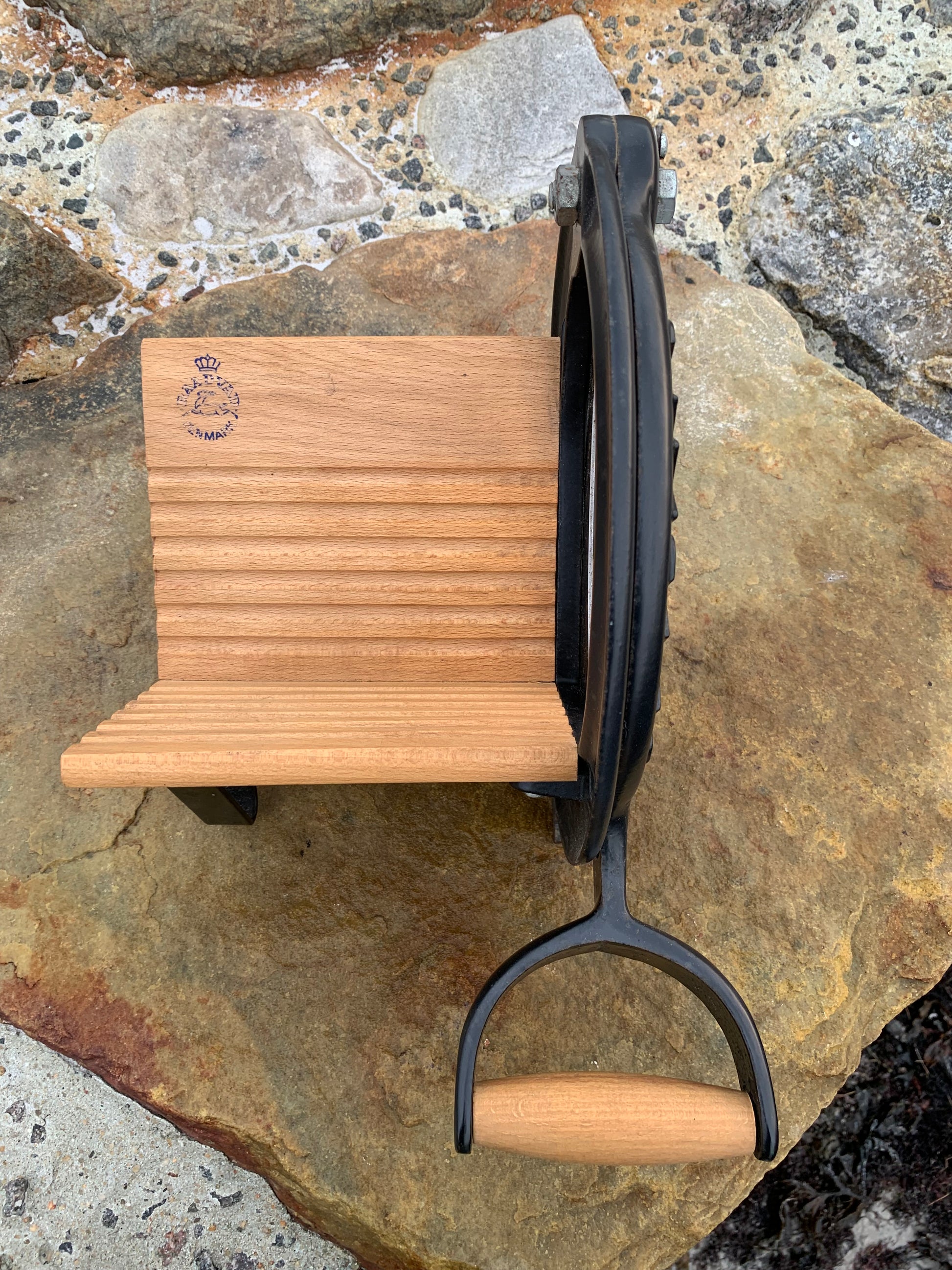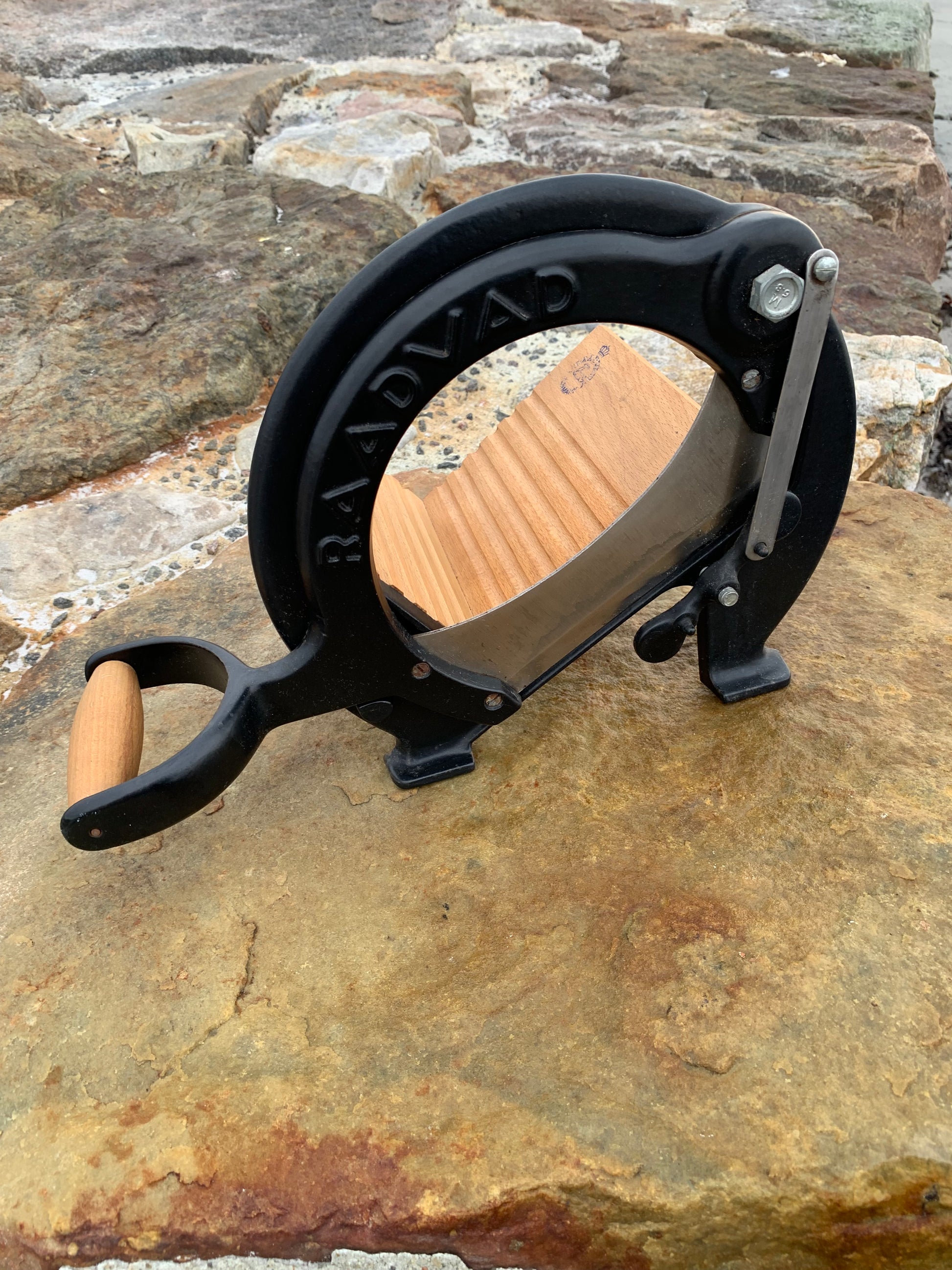 Den vackra och klassiska brödskäraren från Raadvad har tecken på slitage, men är överlag i gott vintageskick. Mysig och robust i köket.