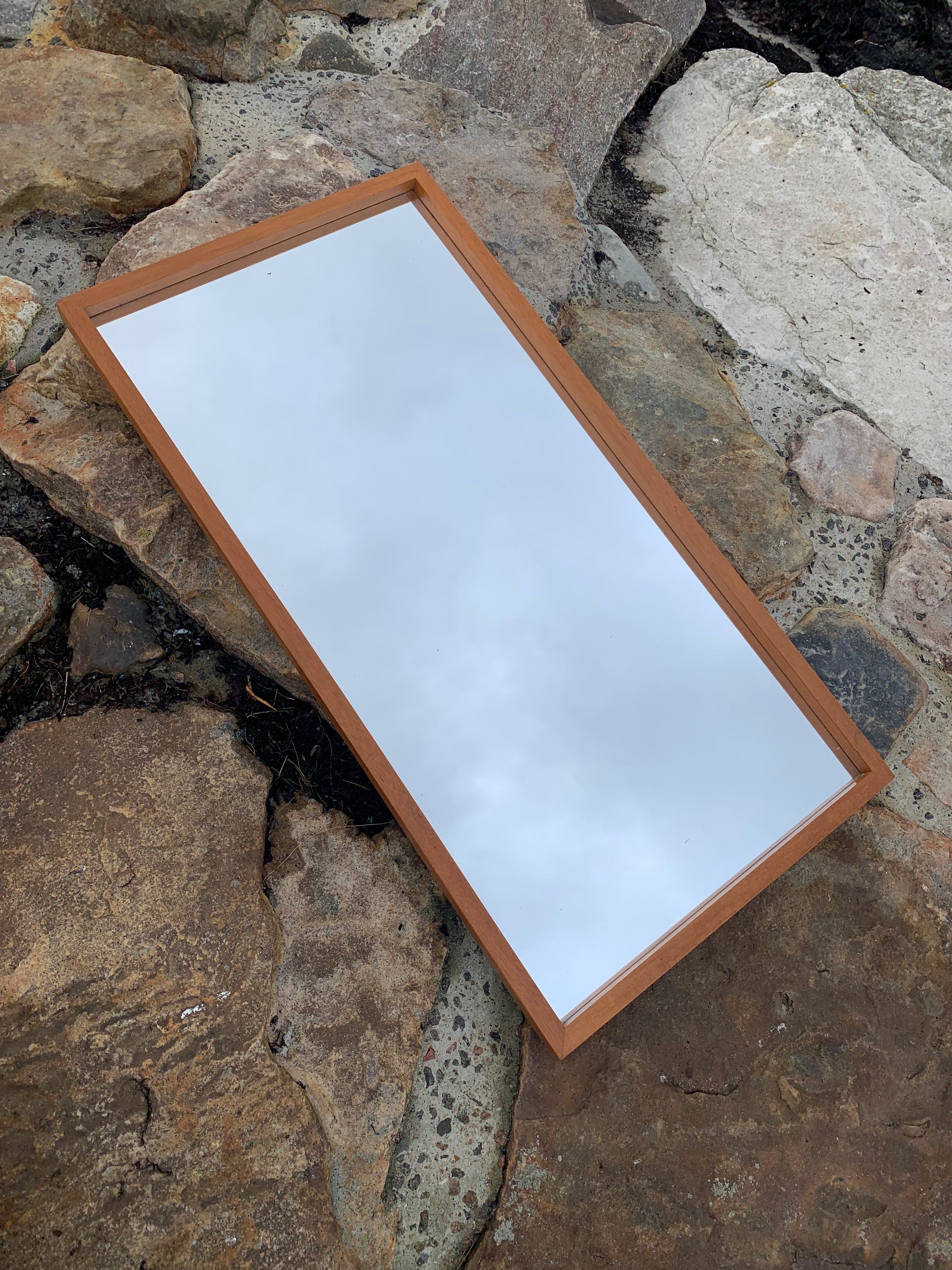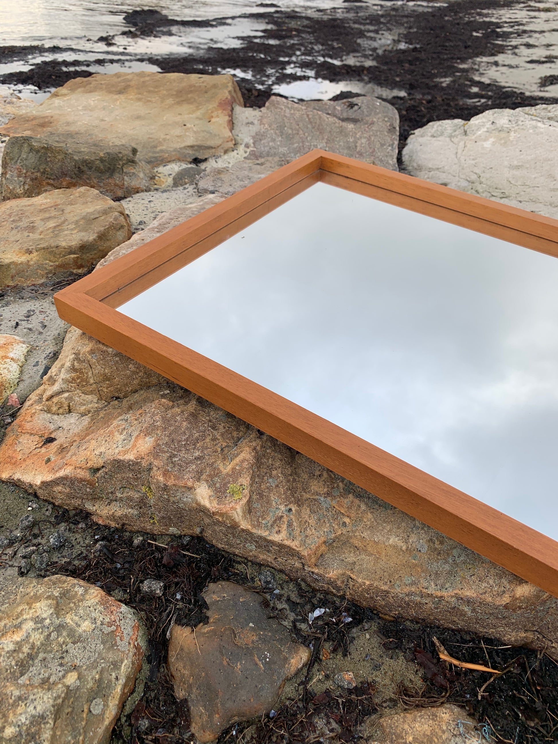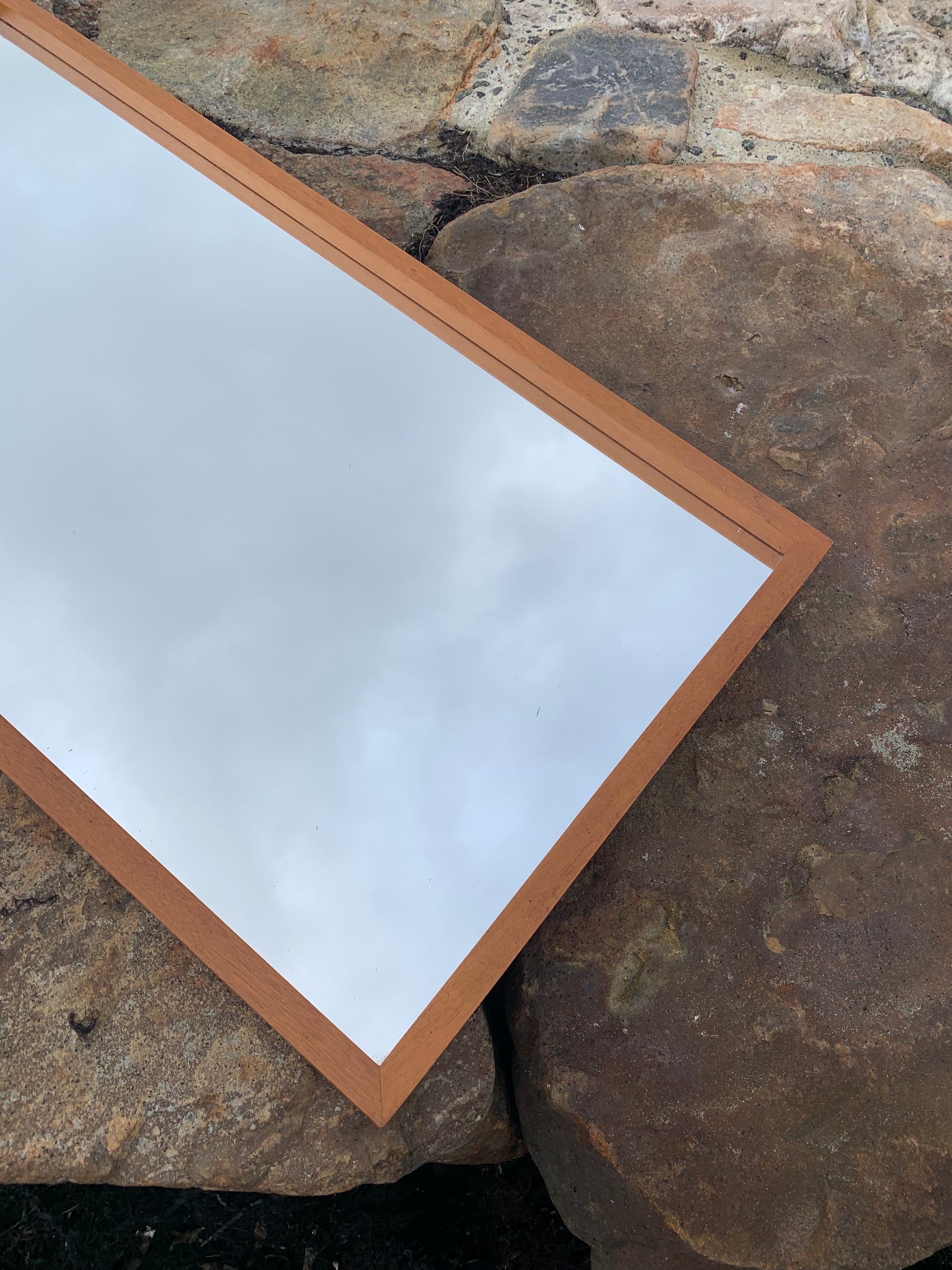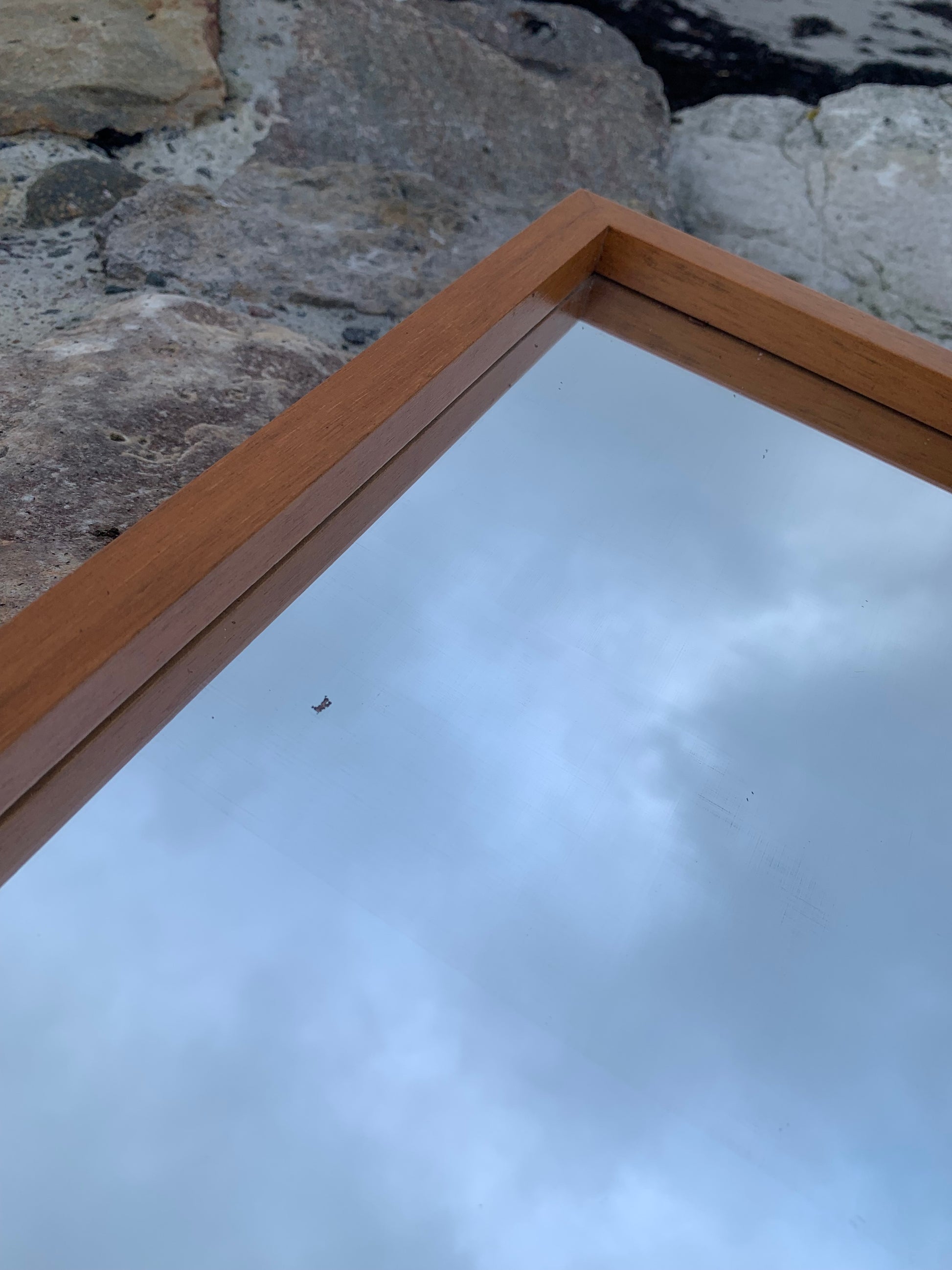 Fin gammal spegel med träram. Spegeln har vissa åldersrelaterade tecken på slitage men är överlag i gott vintageskick.