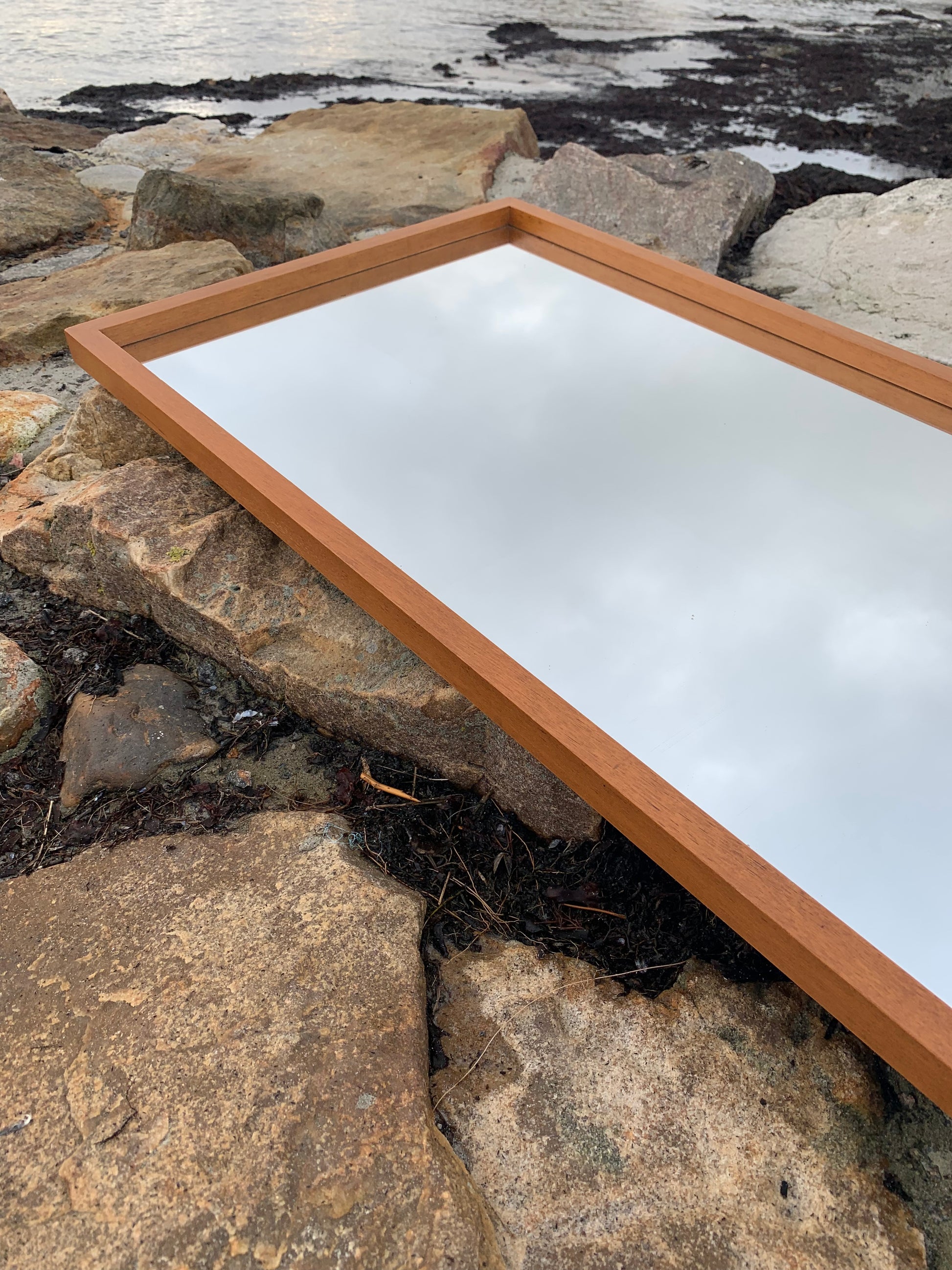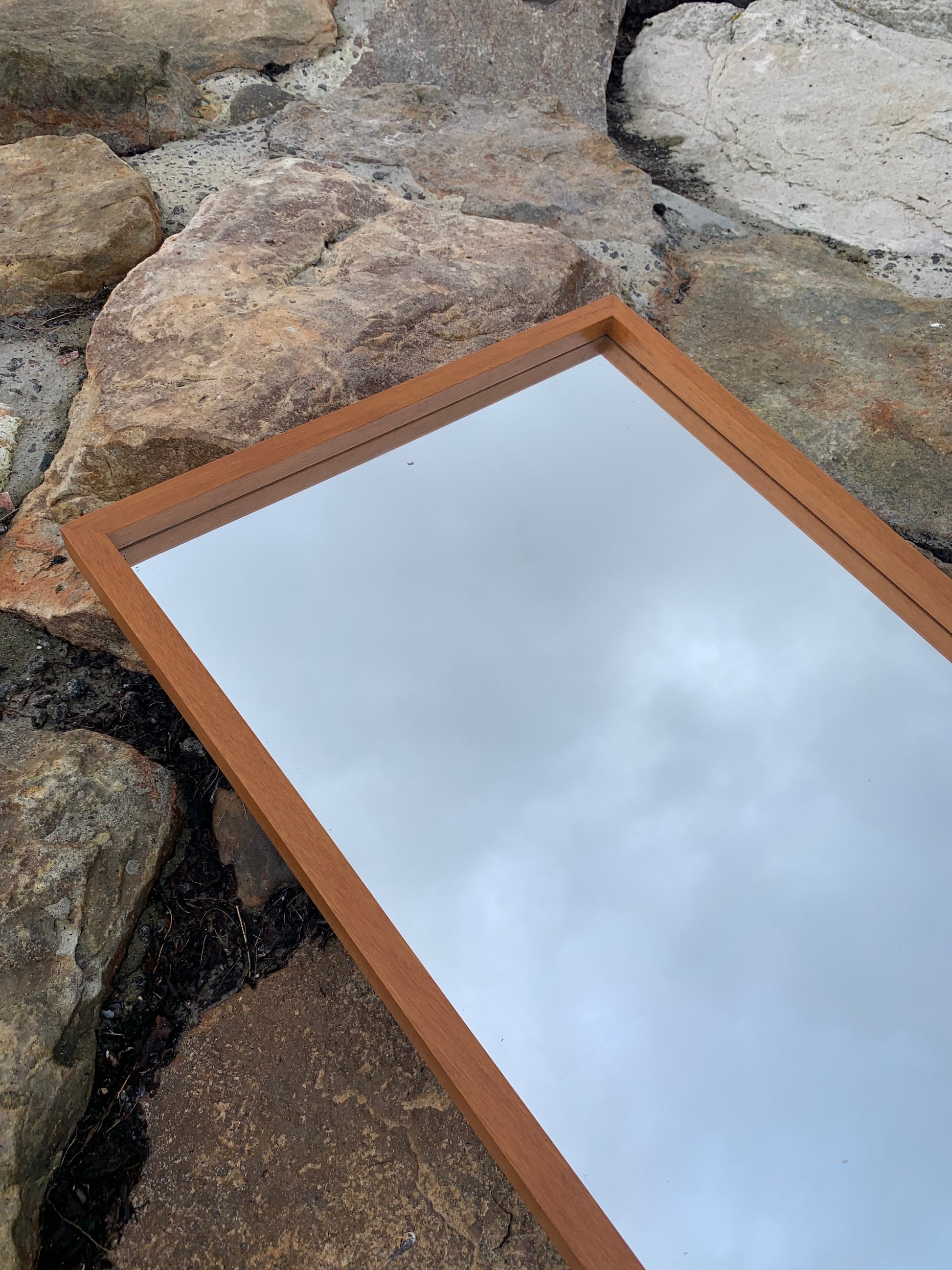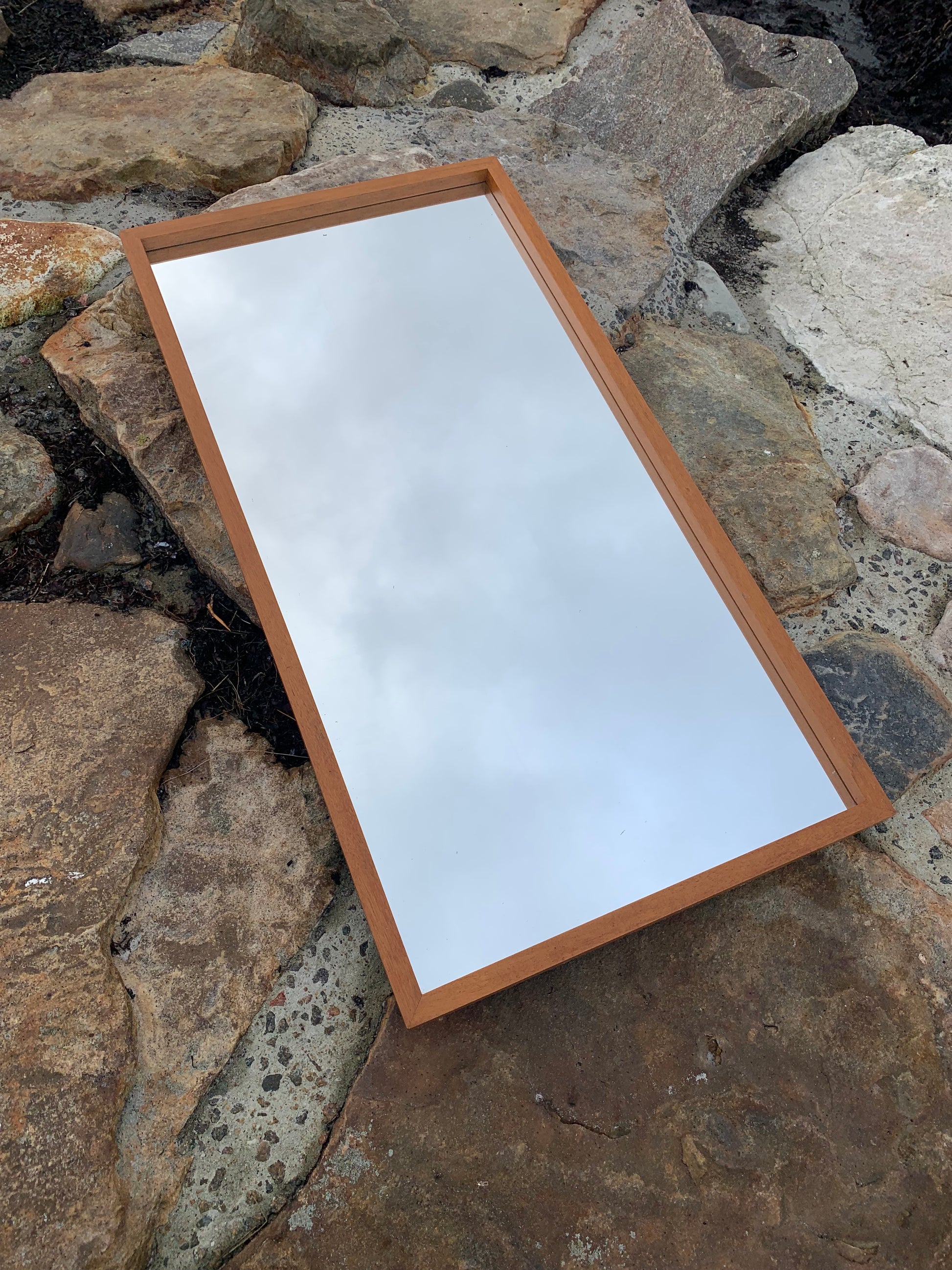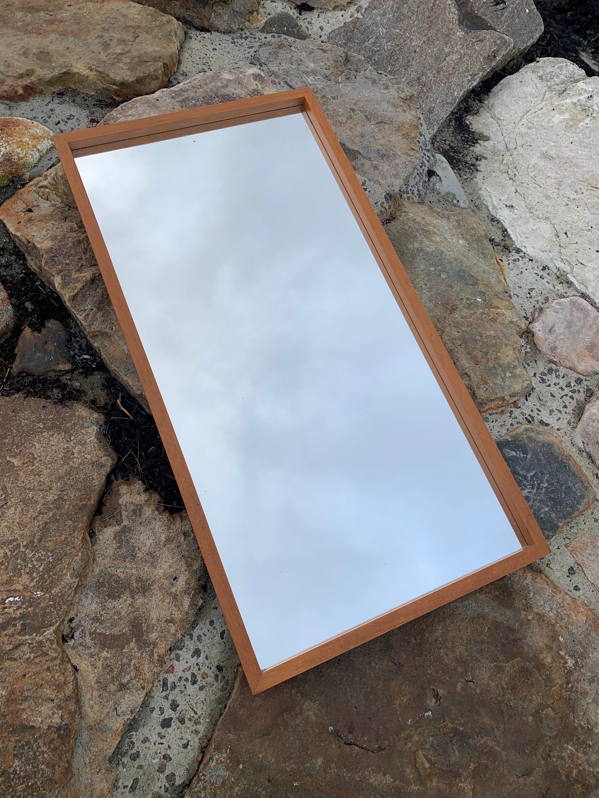 Fin gammal spegel med träram. Spegeln har vissa åldersrelaterade tecken på slitage men är överlag i gott vintageskick.