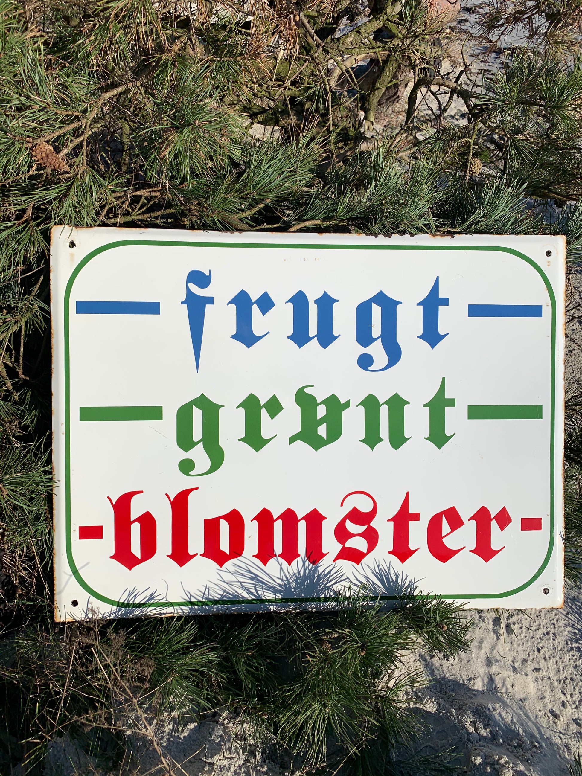 Stor emaljskylt - frukt, grönsaker och blommor