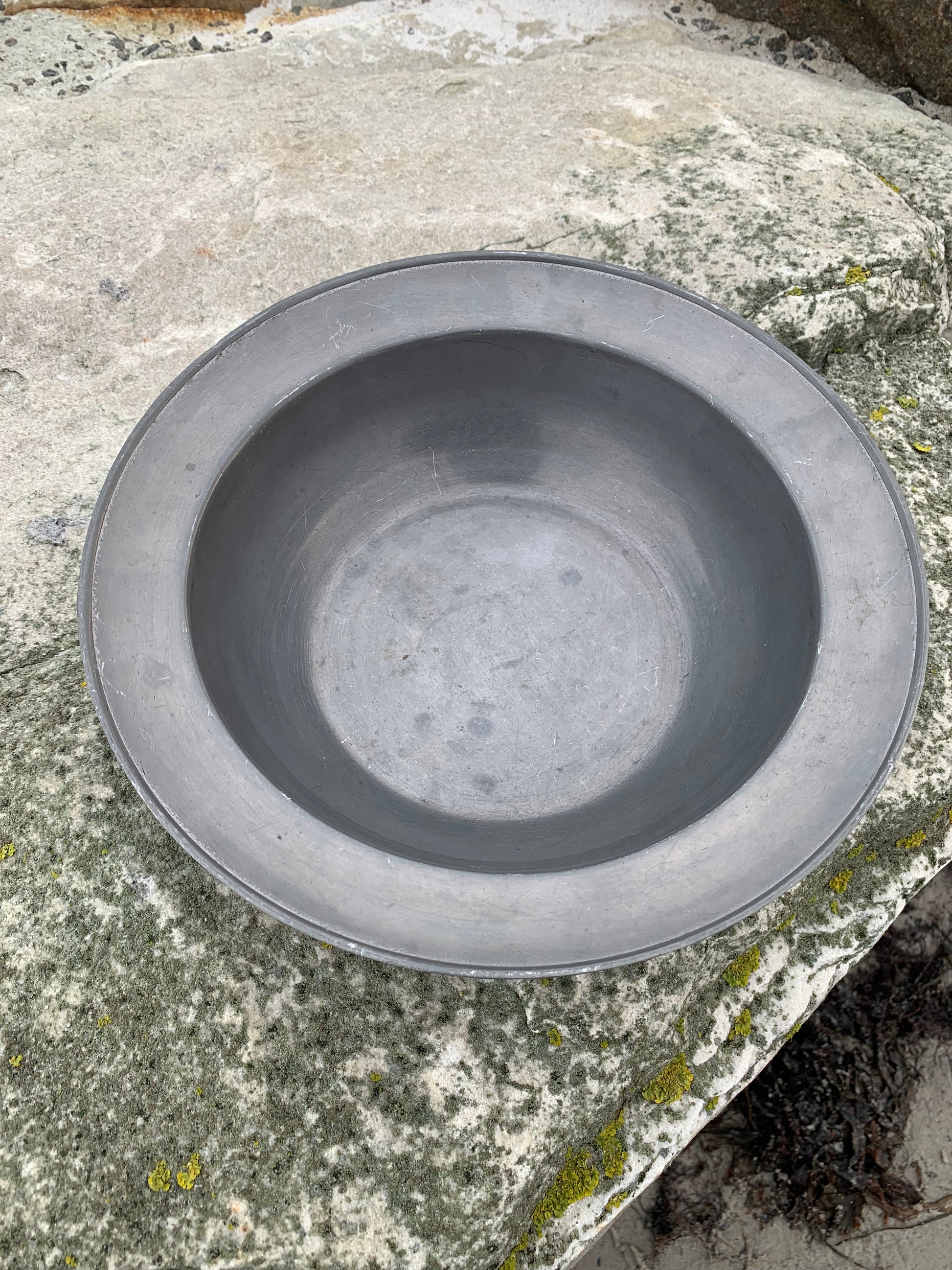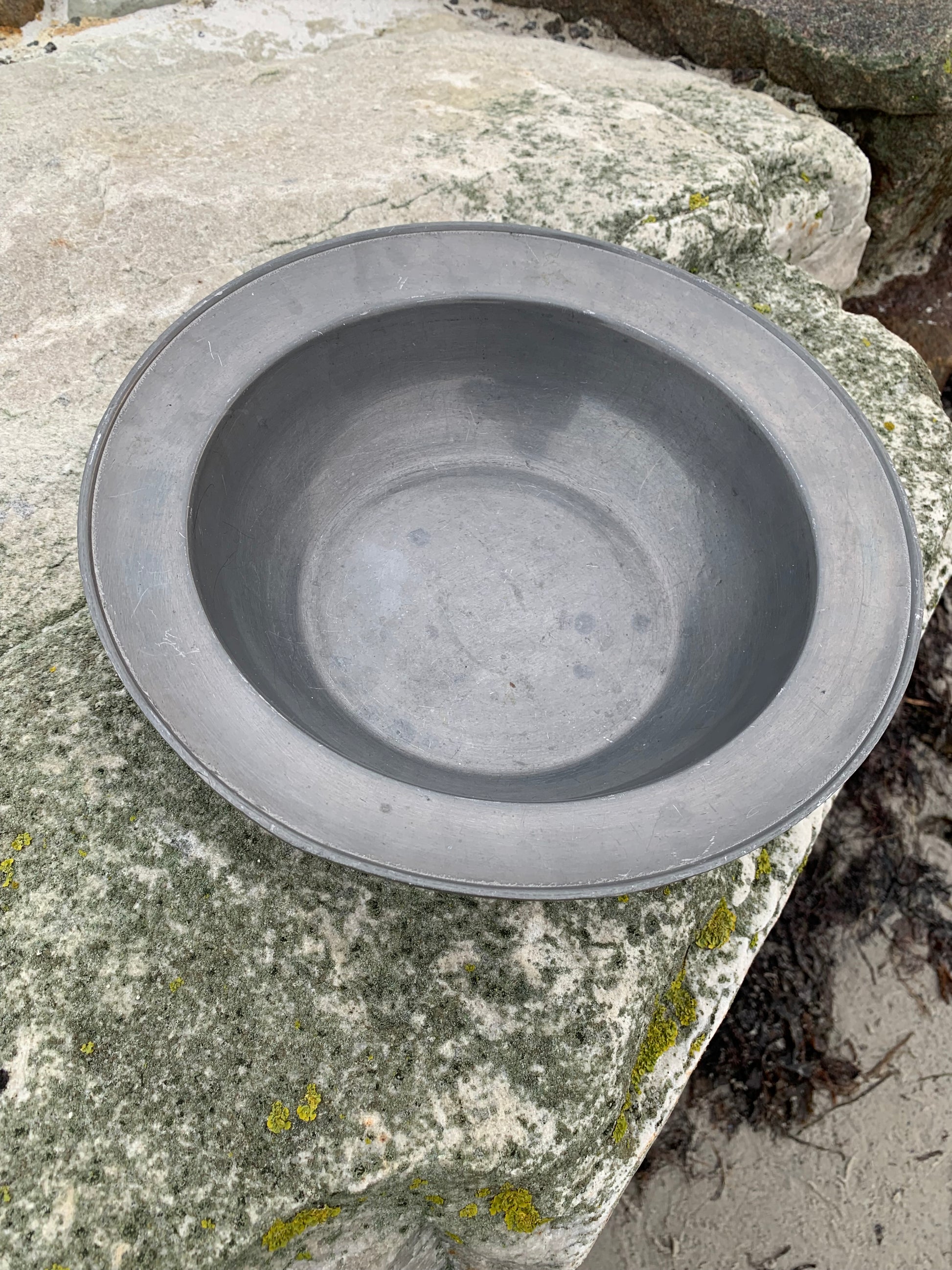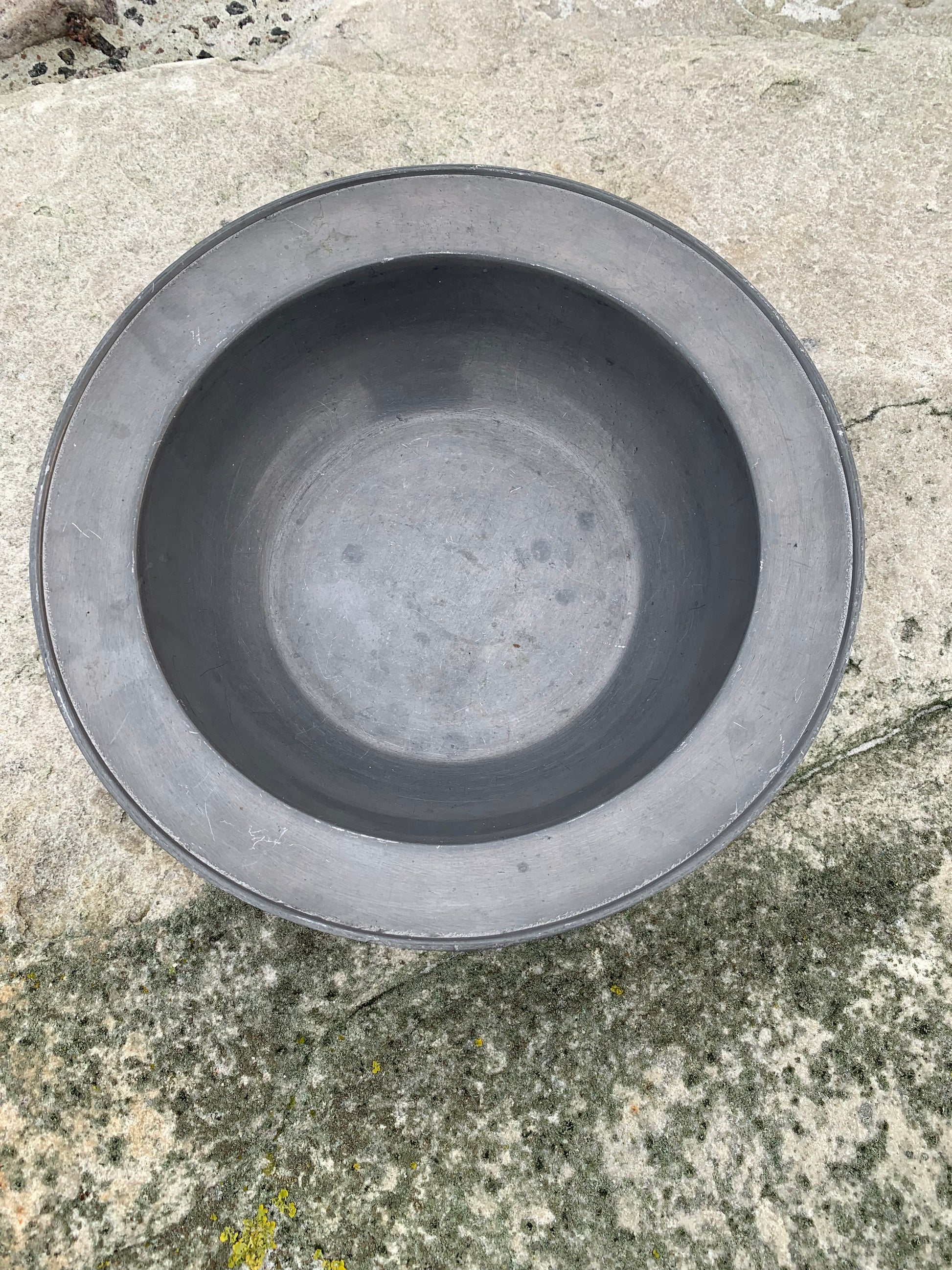 Vackert gammalt tennfat med mycket patina - mycket dekorativt och med stämpel.