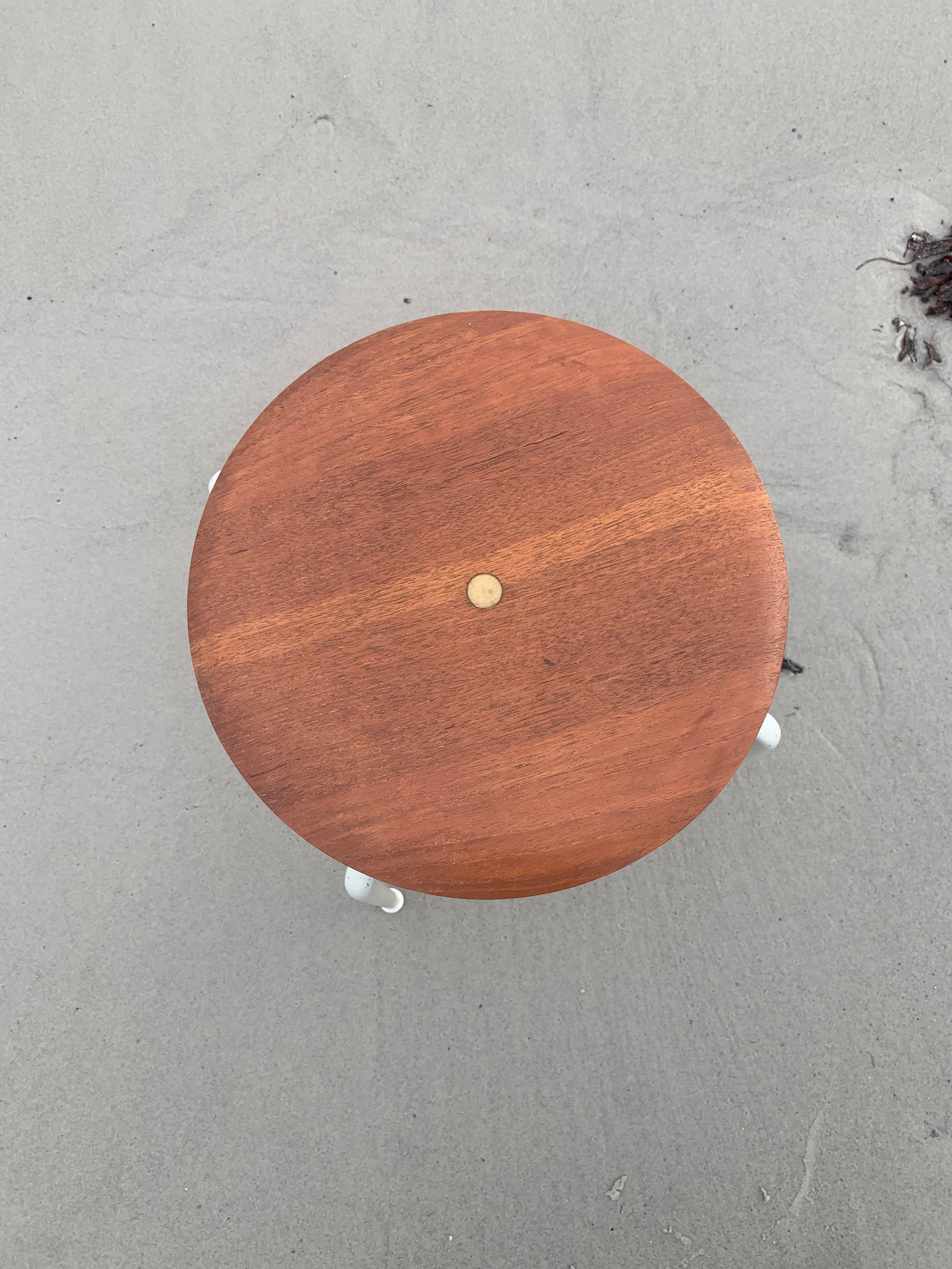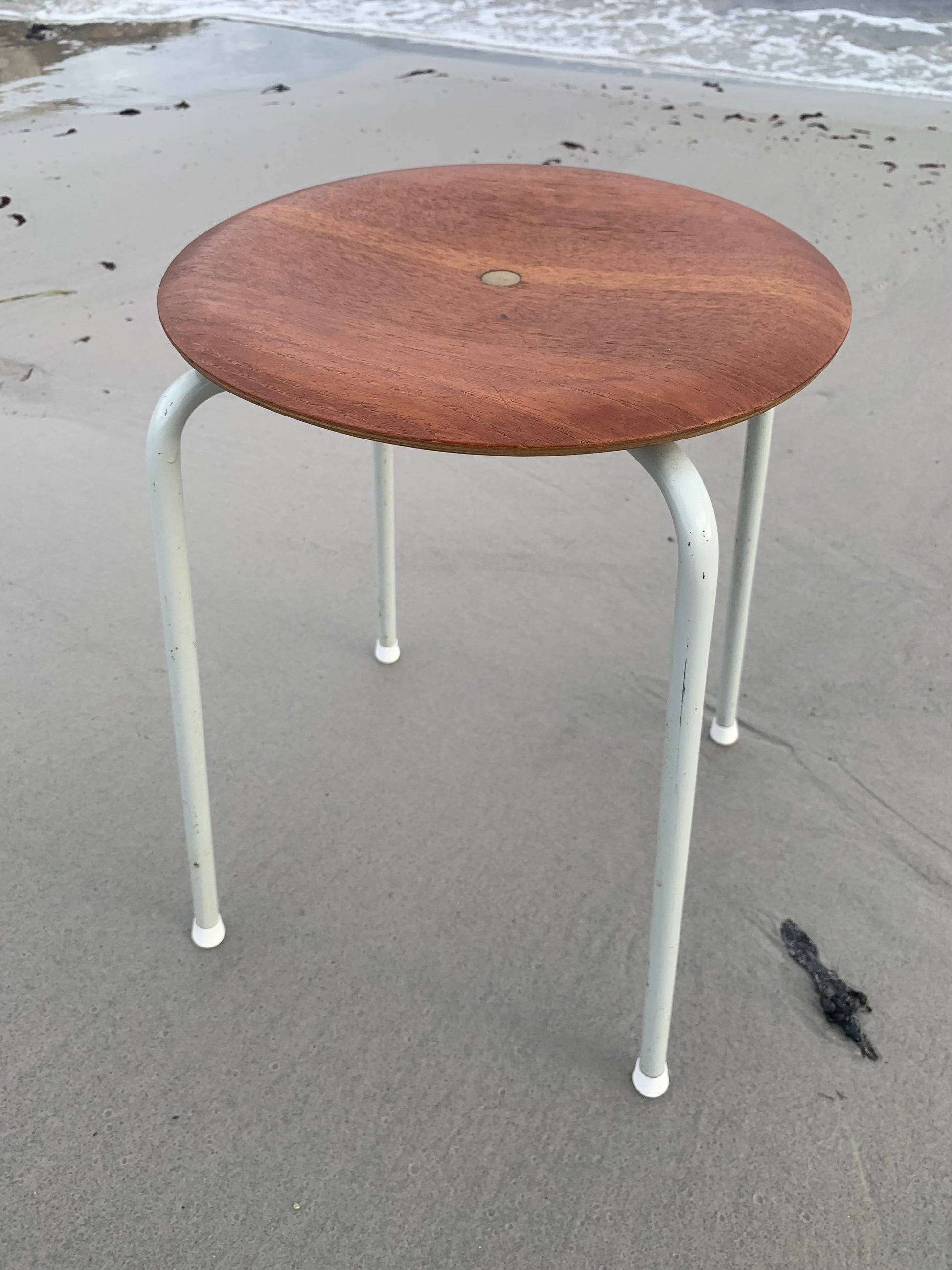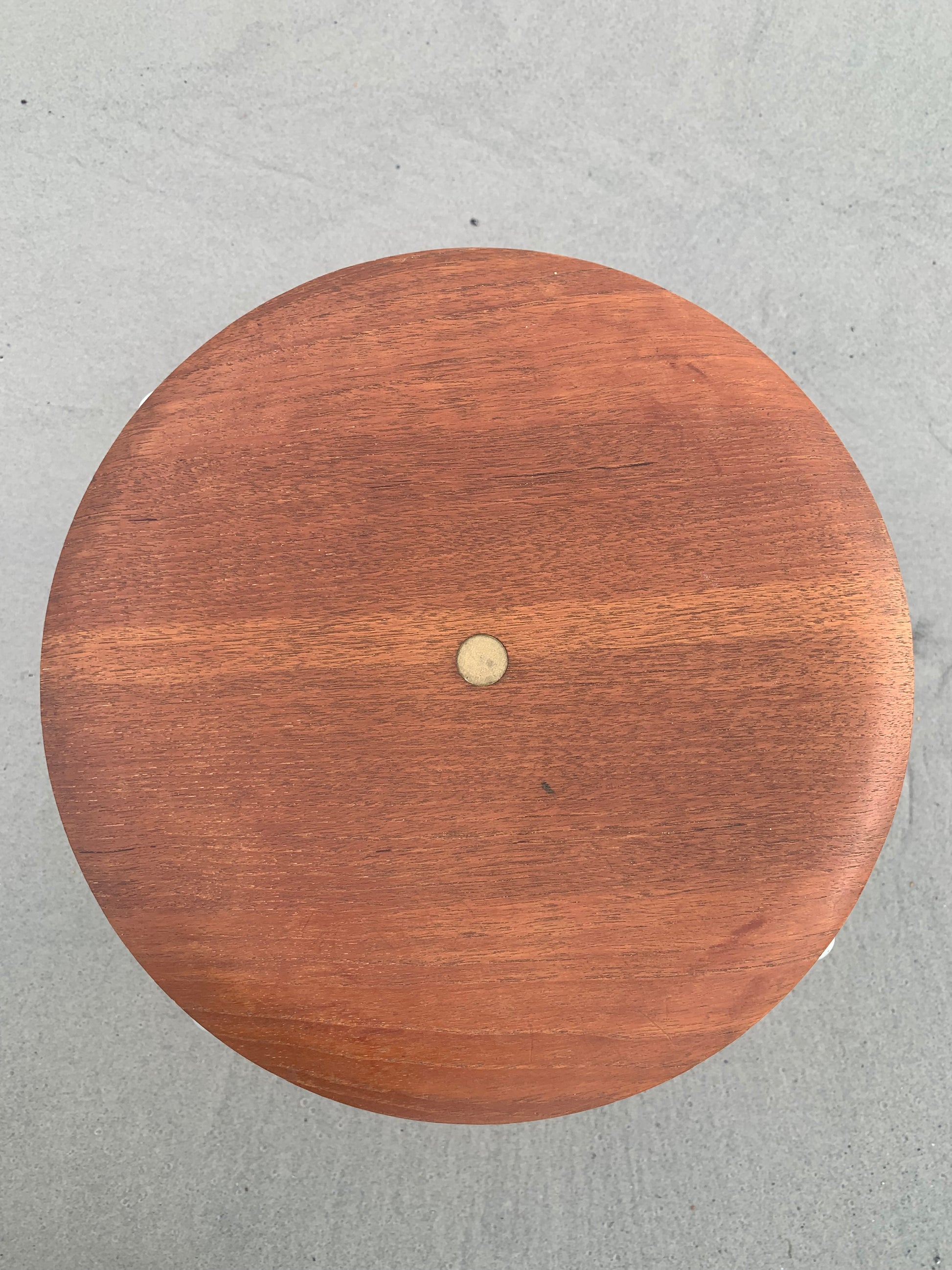 Pallen är tillverkad av trä med en sits som har en mycket fin lyster. Pallen har vissa åldersrelaterade tecken på slitage, men överlag är den i riktigt fint vintageskick.