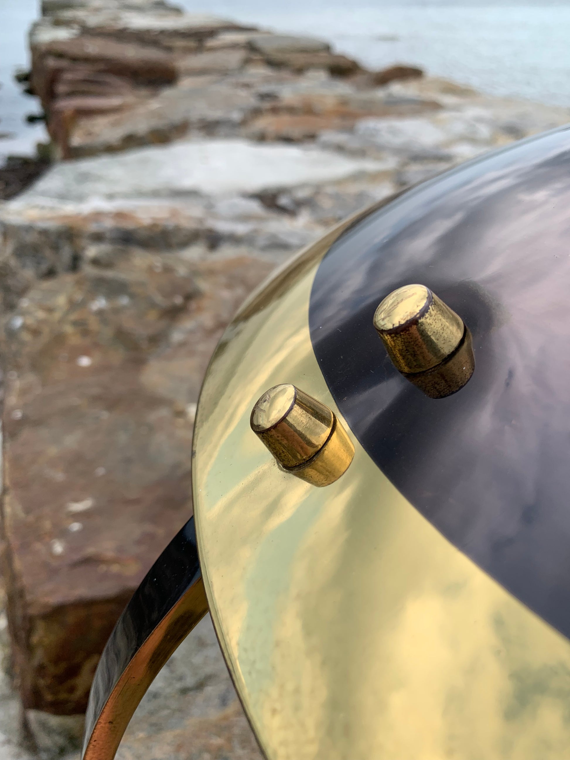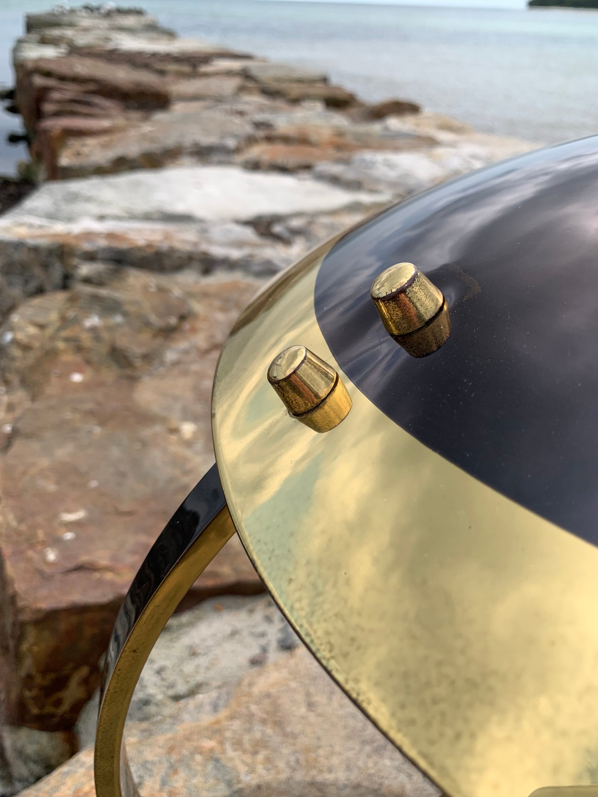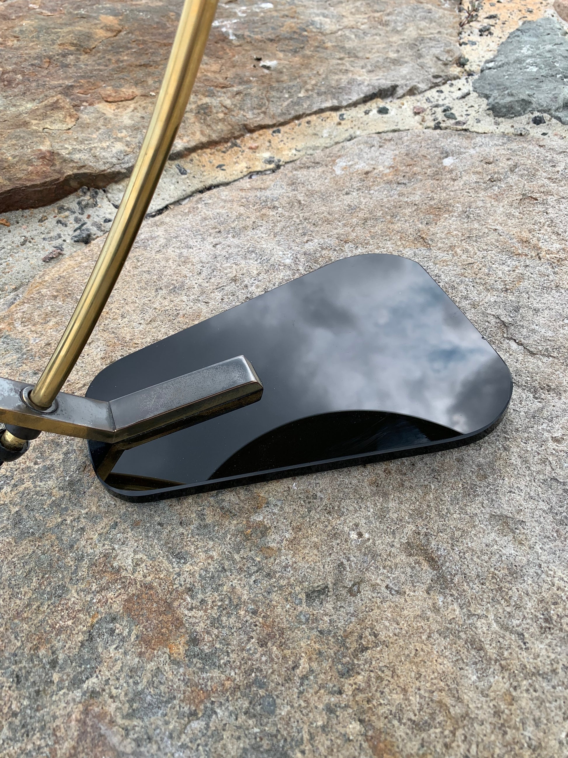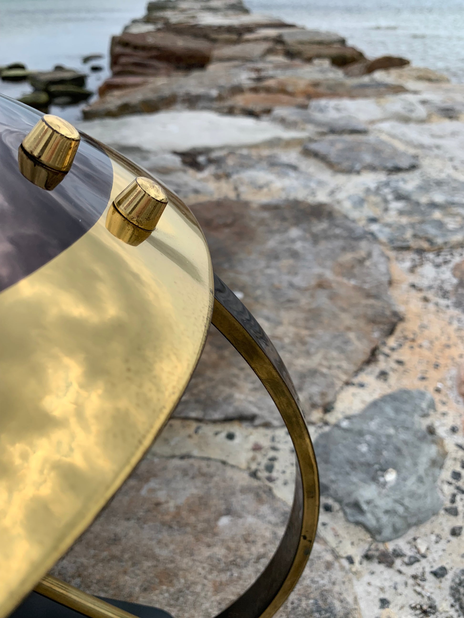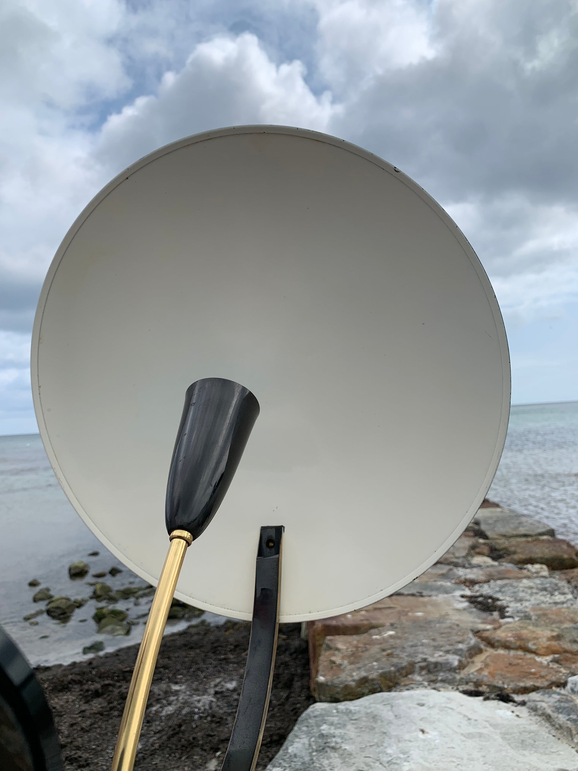 Vi har dock sett den här modellen omtalad som en Helo, vi tycker inte att den ser ut så. Säljaren vi köpte lampan av berättade att den var från Italien och från 1950-talet. Om du känner till modellen tar vi gärna emot lite synpunkter. Det är definitivt inte en lampa som många ser. Skicket är riktigt bra med tanke på åldern. Den har lite slitage, vilket en lampa i den åldern nästan borde ha, och en liten fläck på ena sidan av skärmen, men överlag är den i riktigt fint vintageskick och naturligtvis nykopplad.