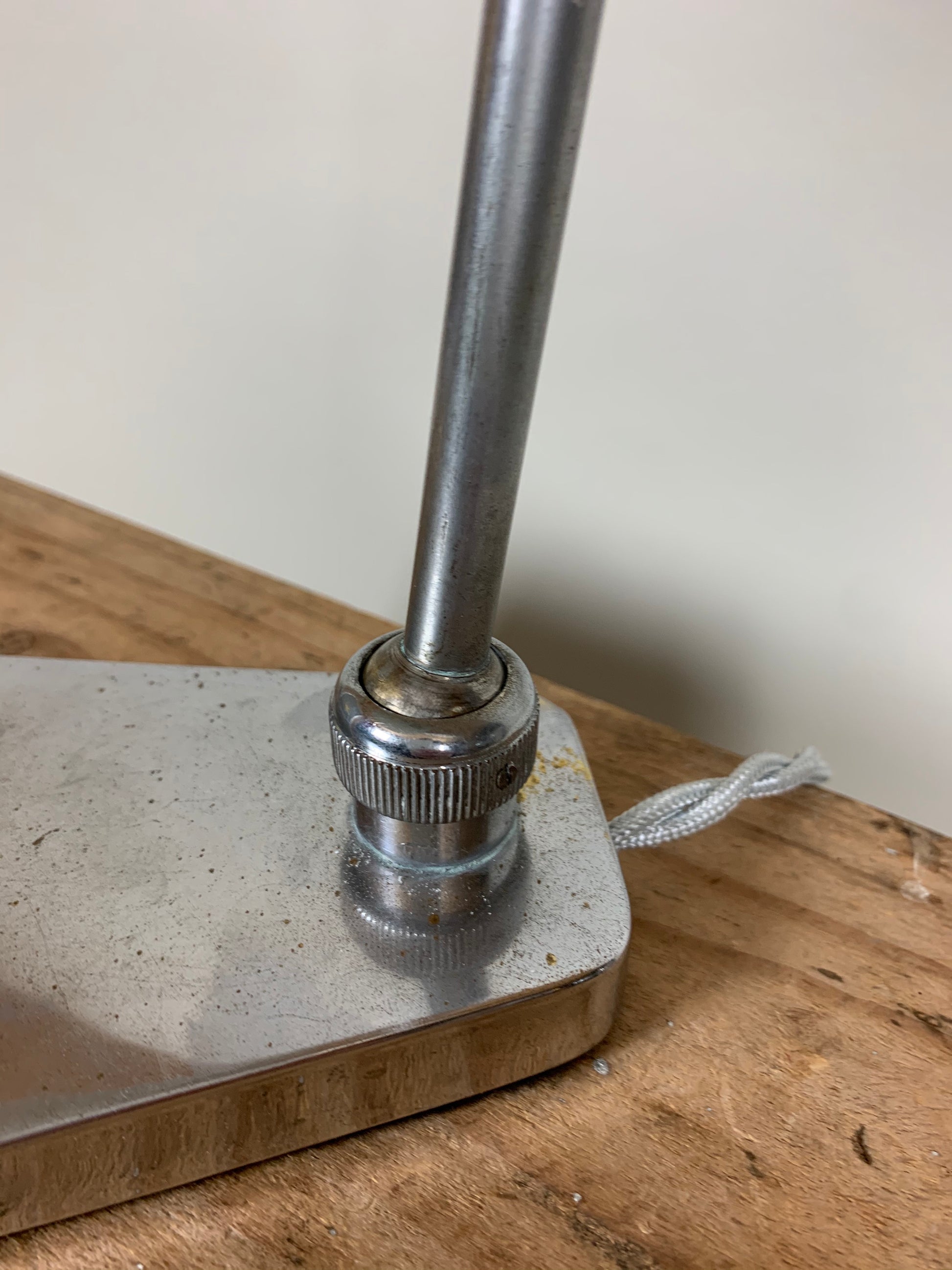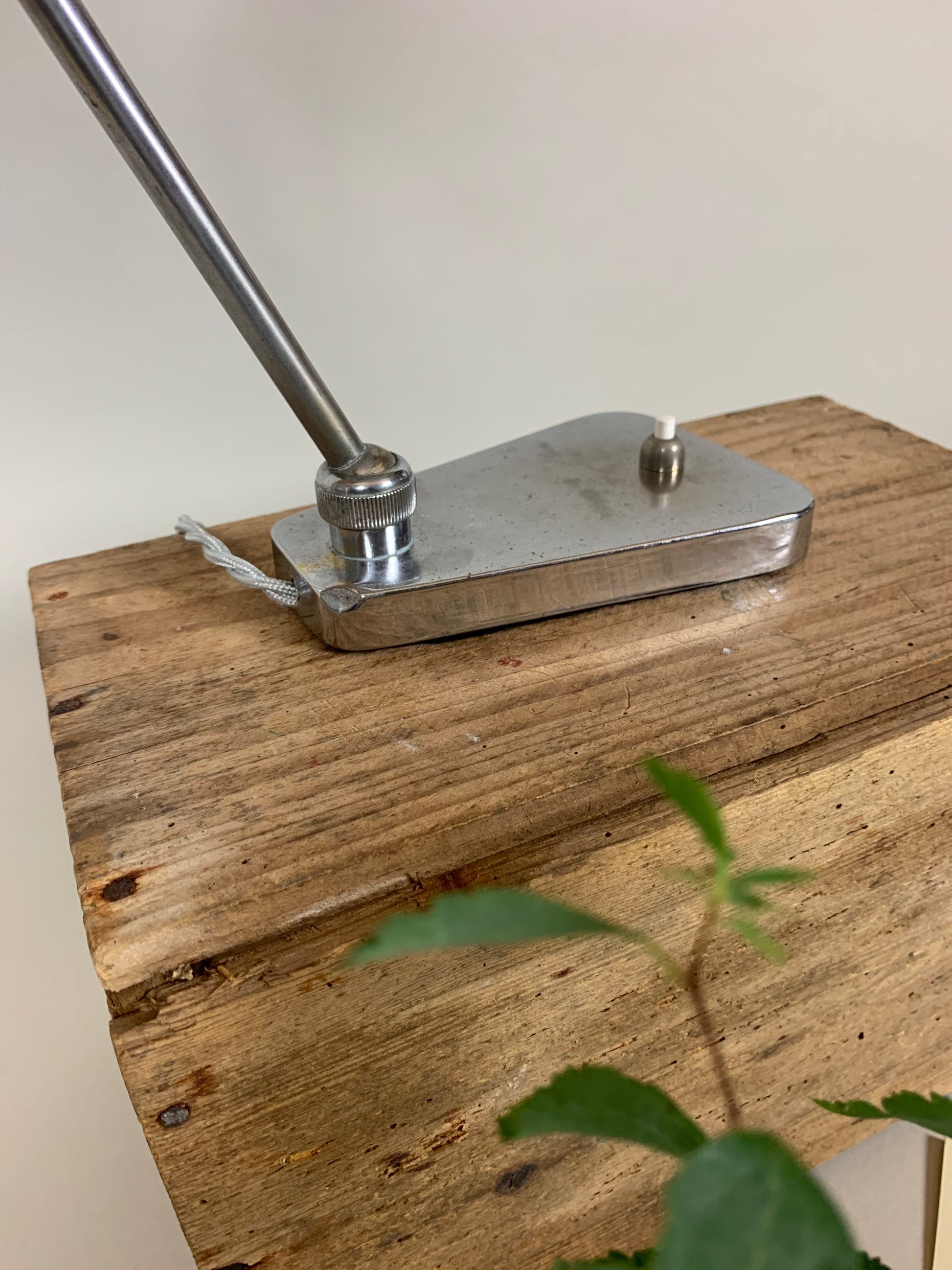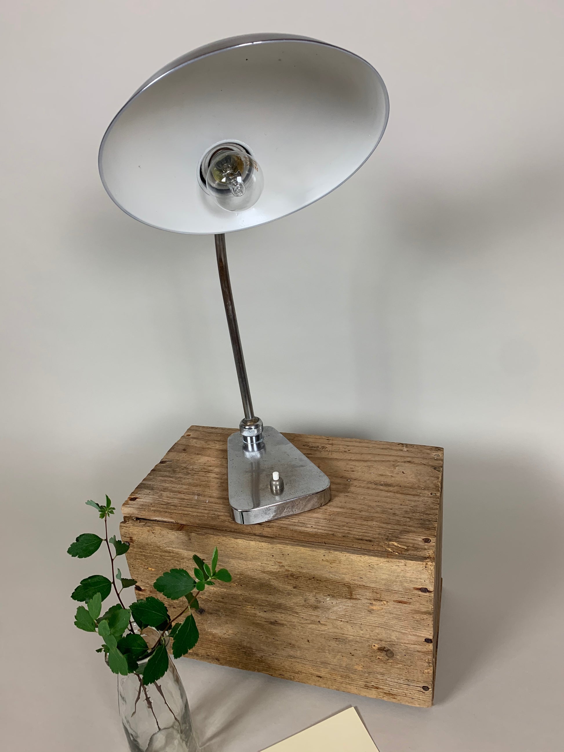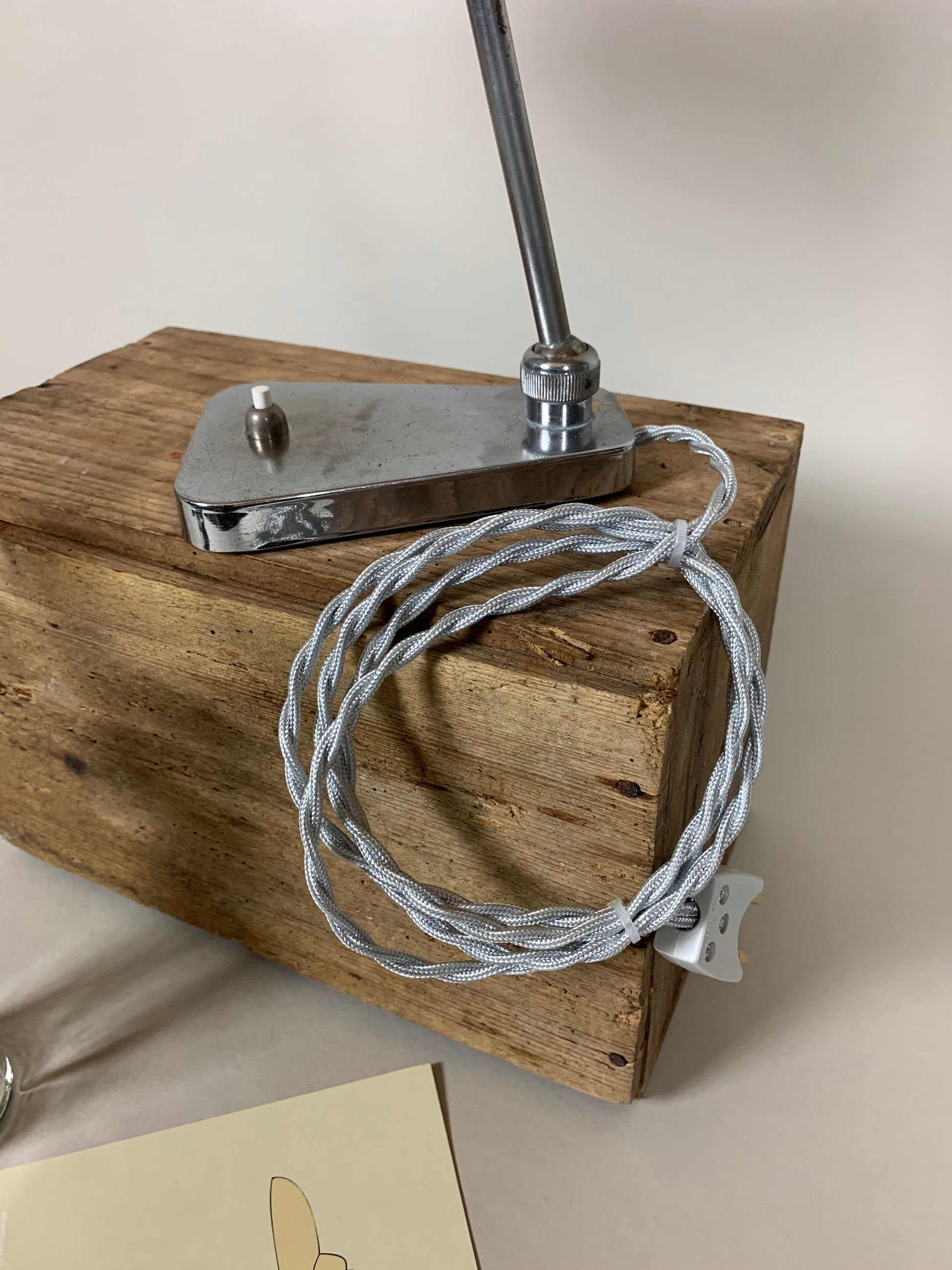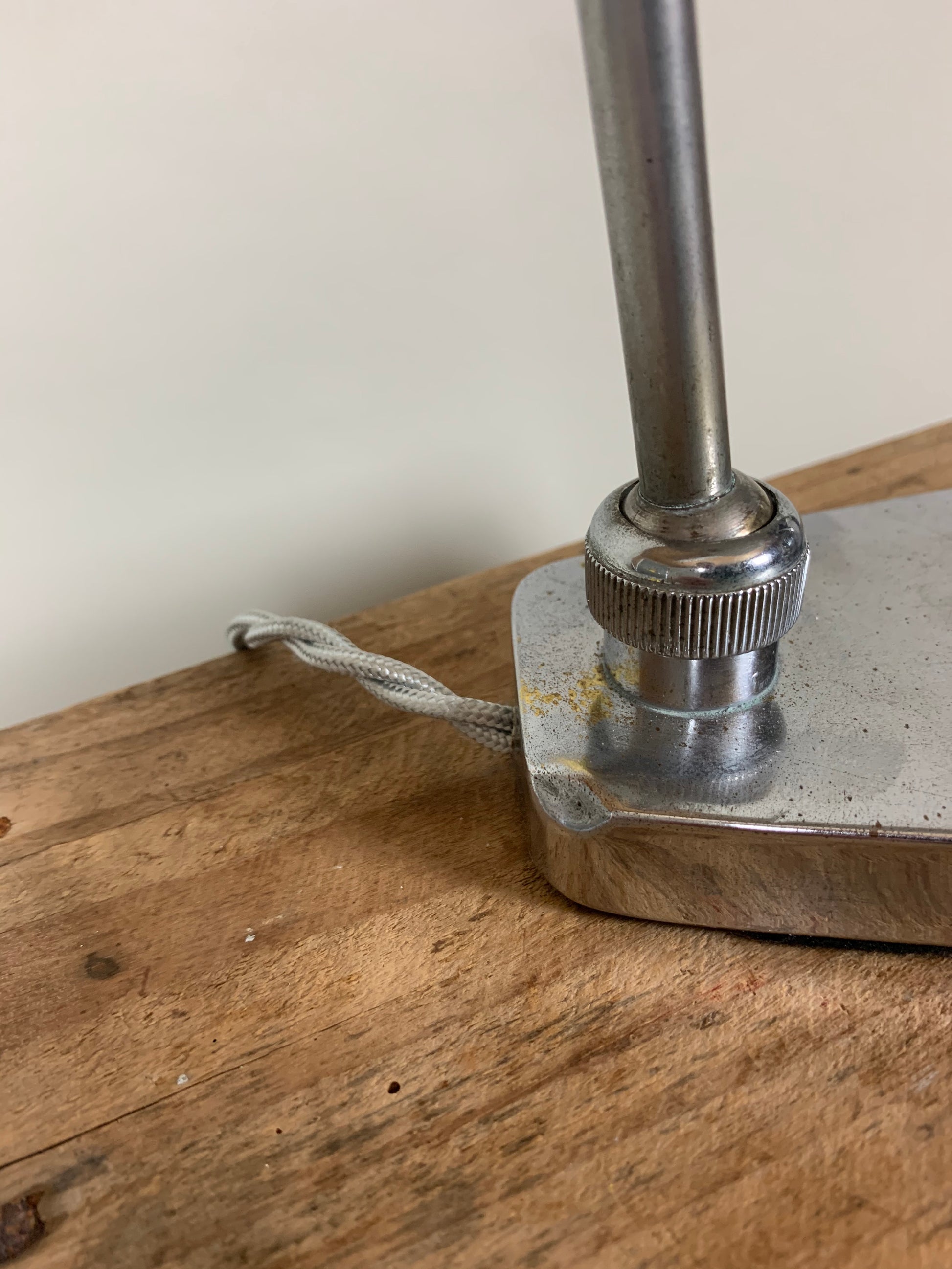 Vacker liten vintagelampa från Italien. Lampan är på den råa sidan och passar den som ser det perfekta i det imperfekta. Uttrycket på lampan ändrar karaktär beroende på hur du väljer att vinkla armen.